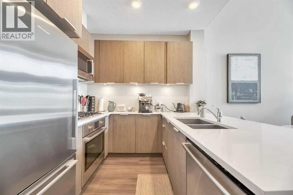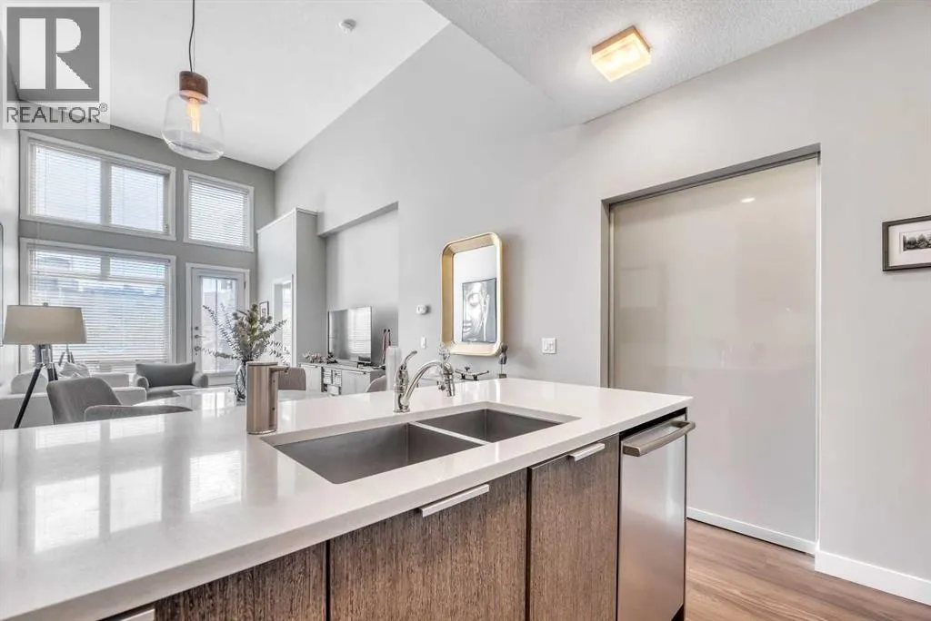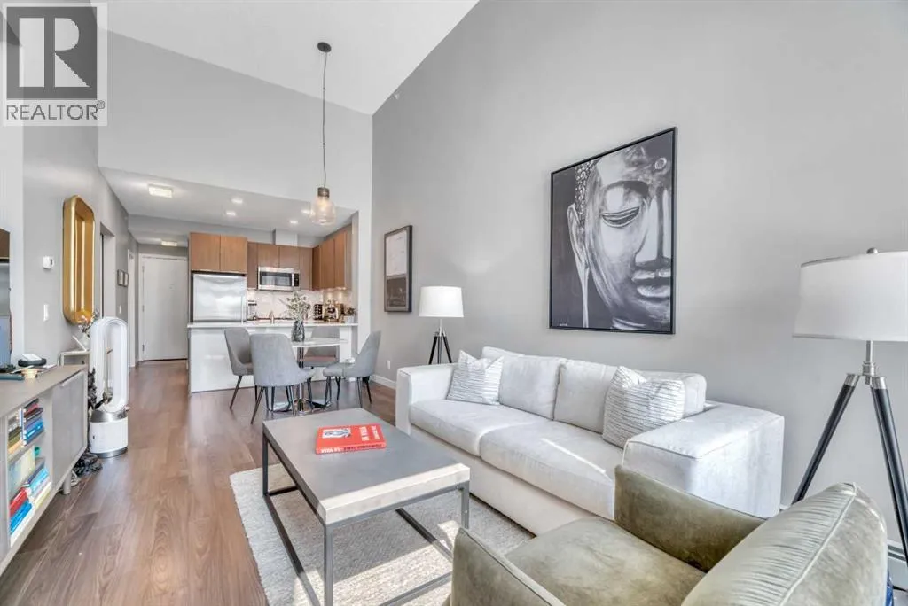 Welcome to PENTHOUSE life at The Ven, where contemporary style meets an unbeatable inner-city location in the heart of vibrant Sunnyside. This stunning sunny SE facing, top-floor condo with 14' VAULTED ceilings offers two bedrooms, two full bathrooms, and 741 square feet of beautifully designed living spaceâall framed by breathtaking, unobstructed views of Calgaryâs downtown skyline.Inside, youâll find a bright and airy open-concept layout featuring soaring 14-foot ceilings, oversized windows that flood the space with natural light, and high-end modern finishes that elevate everyday living. The kitchen is sleek and functional with quartz countertops, stainless steel appliances, and a large island that seamlessly connects to the living and dining areasâideal for entertaining or simply enjoying your morning coffee with a view.The two bedrooms are thoughtfully separated for added privacy. The spacious primary suite offers a walk-through closet and a stylish four-piece ensuite, while the second bedroom and additional full bathroom are perfect for guests, roommates, or a dedicated home office.Living in The Ven means you're just steps from Kensingtonâs trendy cafés, restaurants, and boutiques, as well as scenic river pathways, the Sunnyside LRT, and iconic destinations like Princeâs Island Park. You're also only minutes from downtown, SAIT, the University of Calgary, and Foothills Hospitalâplacing everything you need right at your doorstep.This home also includes in-suite laundry, underground titled parking, secure storage, and the peace of mind that comes with quality concrete construction. The building is pet-friendly (with board approval), and the attention to detail throughout speaks to a lifestyle of ease, elegance, and city sophistication.If youâve been searching for a rare blend of luxury, location, and lifestyle, this penthouse is the one youâve been waiting for. Opportunities like this donât last longâschedule your private viewing today. (id:27476)