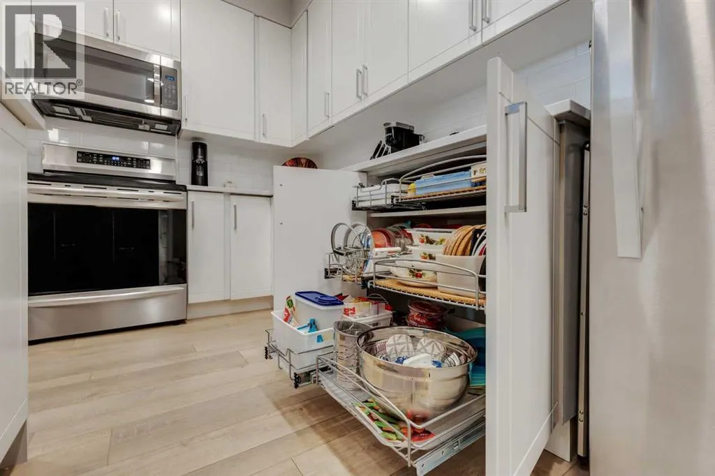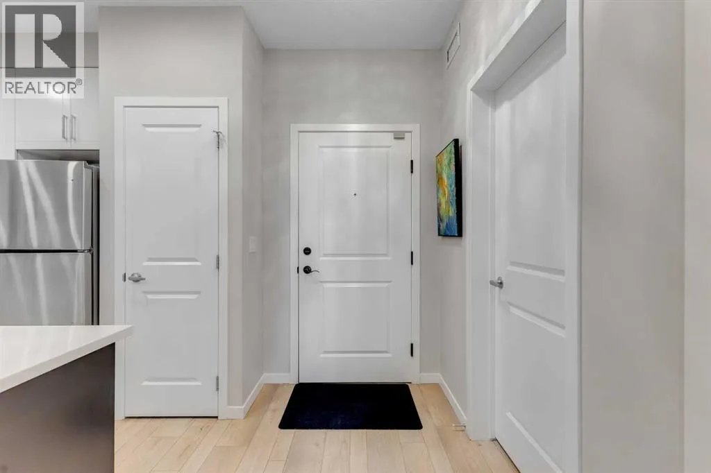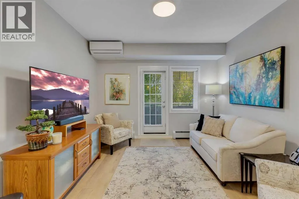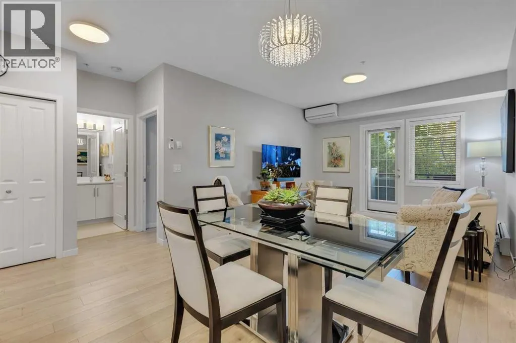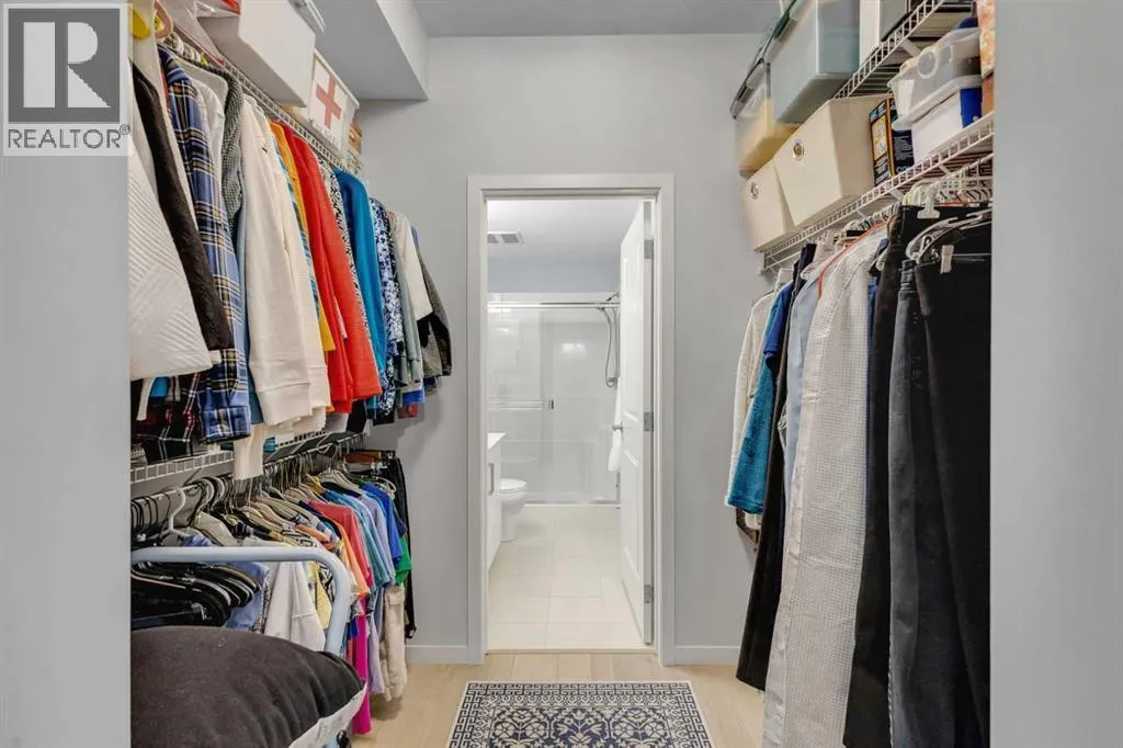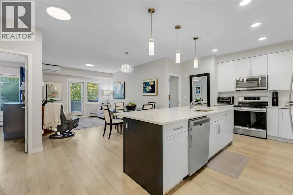 **Watch Virtual Tour** Across the street from Westman Village! Enjoy all the perks of living in this central location at an affordable price! One of the largest floorplans for a two-bedroom , two-bathroom condo. Private Patio on the quiet side with stunning trees. Inside, you'll find a spacious kitchen outfitted with sleek white raised cabinets, elegant quartz countertops, an oversized island with ample seating opportunities, stainless steel appliances including induction stove, and a garburator for added convenience. The kitchen opens into a thoughtfully laid-out living area that separates the two bedroomsâoffering privacy and flexibility whether you're hosting guests, working from home, or sharing the space. The primary bedroom features a walk-through closet that leads into a private three-piece ensuite complete with a glass shower. The second bedroom is located adjacent to a full four-piece bathroom, perfect for guests or family. Luxury vinyl plank flooring runs throughout the main living spaces, and a dedicated laundry room with built-in pantry-style storage adds to the overall functionality. For year-round comfort, the unit includes air conditioning. Step outside to a large, north-facing covered balcony surrounded by mature trees, providing natural privacy and a peaceful place to relax. The balcony is equipped with a gas line for your BBQ, and the patio door features blinds encased in glass as well as a retractable screenâcombining practicality with comfort. A titled underground parking stall is also included for added convenience. Located just a short walk from grocery stores, shops, cafes, and restaurants, this home offers unbeatable access to everyday essentials. And beyond your front door, Mahoganyâs incredible amenities awaitâincluding 22 kilometers of scenic pathways, two private beaches, expansive parks, playgrounds, off-leash areas, and beautifully maintained green spaces. As a resident of Sandgate, you'll also enjoy access to a fitness studio, a lend ing library, guest suite, and pet-friendly policiesâall in a building designed with character, quality, and livability in mind. This isnât just a homeâitâs a lifestyle. Donât miss your opportunity to own in one of Calgaryâs most desirable lake communities. (id:27476)