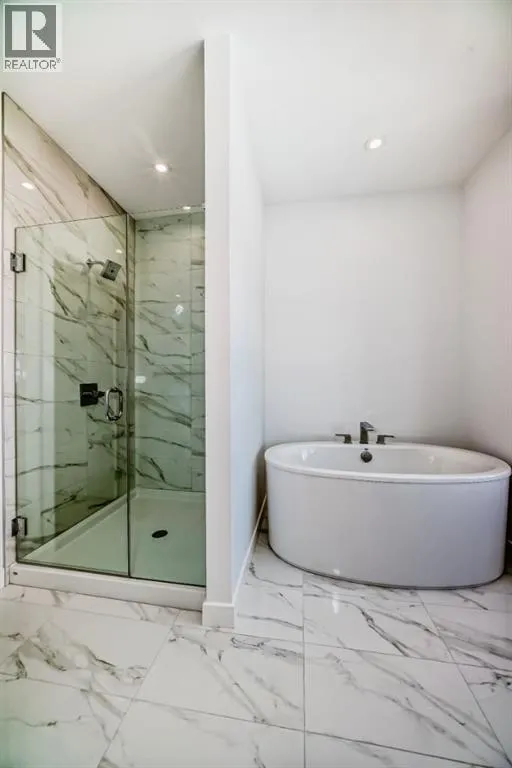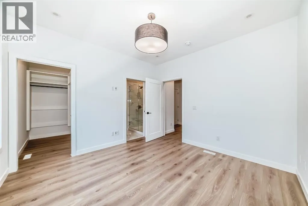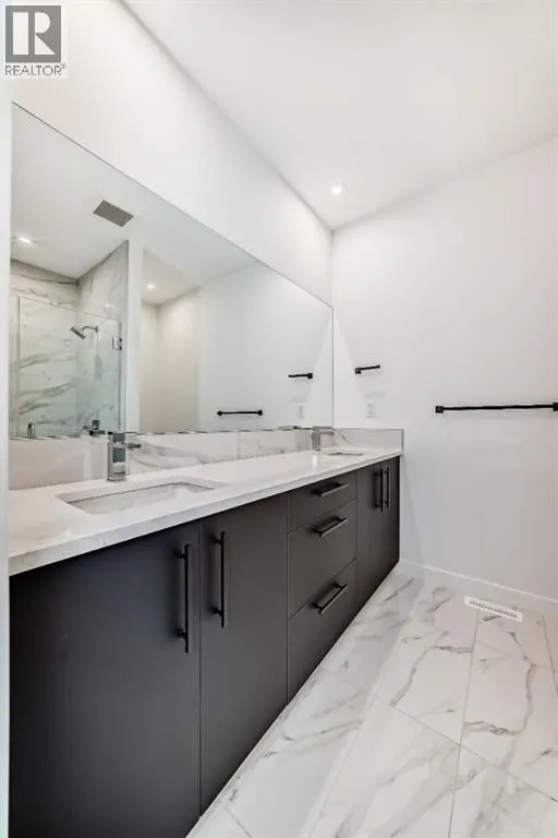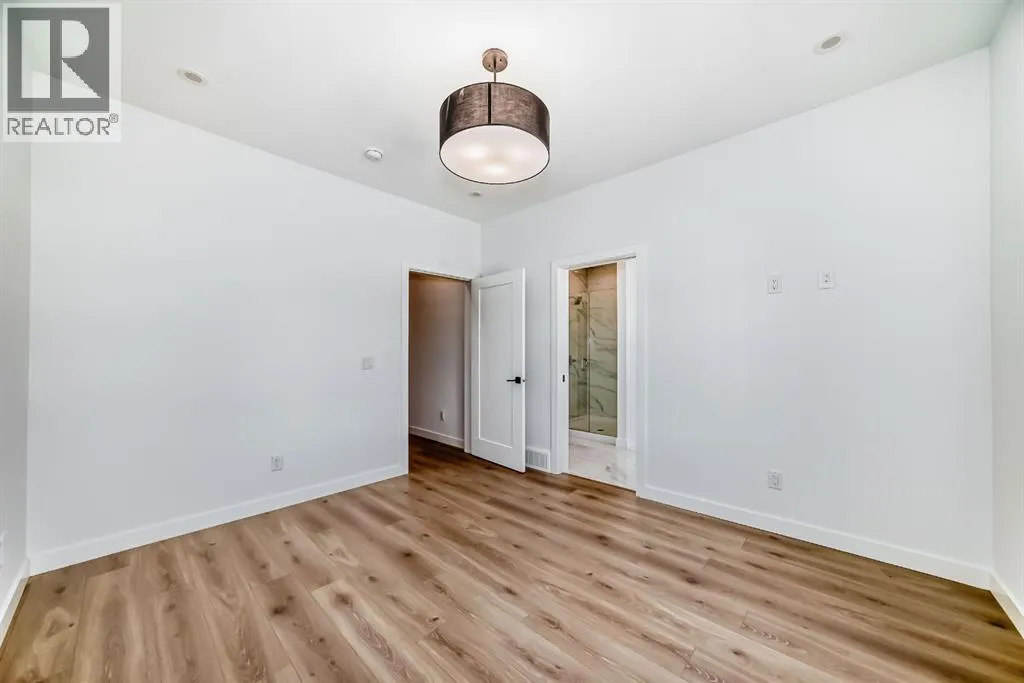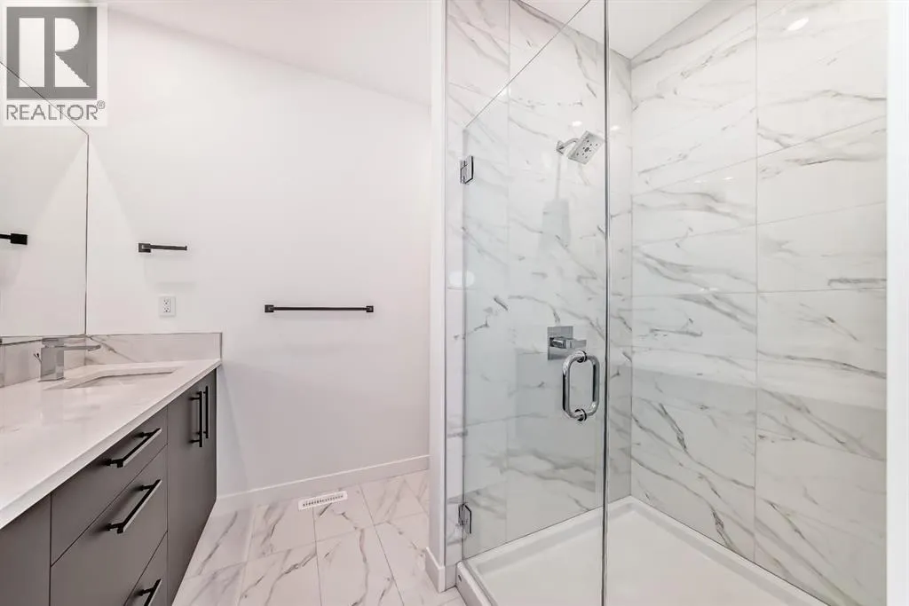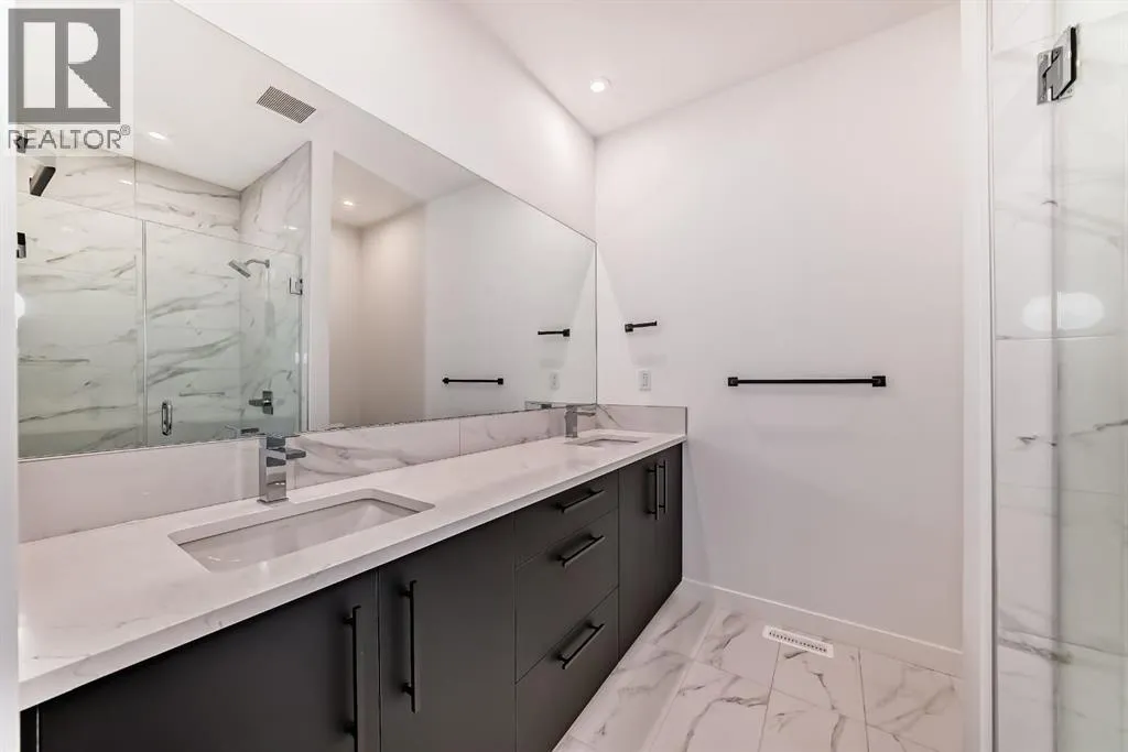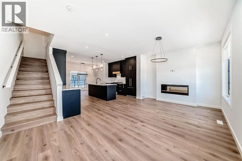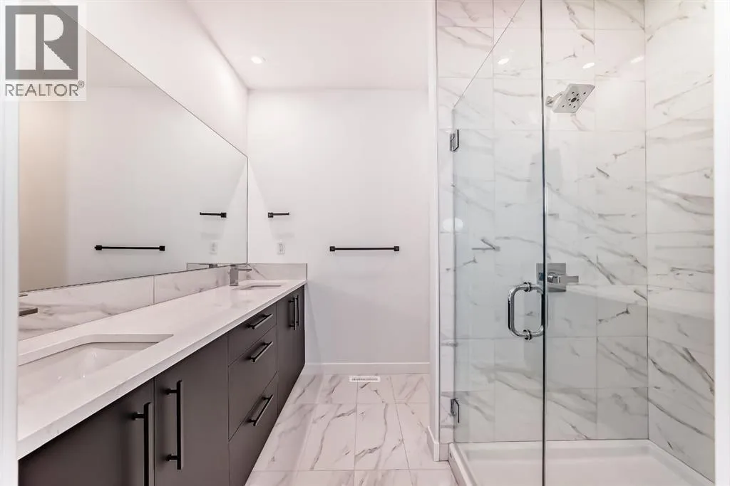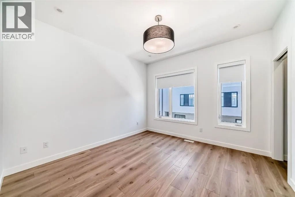 Experience the perfect blend of sophistication, style, and convenience at District Towns in Calgaryâs vibrant West District. This beautifully designed 2-bedroom, 2.5-bathroom townhome combines modern architecture with timeless interiors, all enhanced by an expansive rooftop terrace overlooking Radio Parkâa rare feature that truly sets this home apart.Thoughtfully crafted across three levels, this residence is ideal for those seeking a refined urban lifestyle. The main floor features a versatile flex room, perfect for a home office, fitness space, or creative studio, along with direct access to the attached double heated garage for ultimate convenience.The main living level is bright and inviting, with soaring ceilings, wide-plank flooring, and an open-concept layout designed for modern living. The chef-inspired kitchen is a showpiece, featuring full-height cabinetry with soft-close doors, a gas range, integrated refrigerator, built-in microwave, and a spacious pantry. A large eat-up quartz island anchors the spaceâperfect for casual dining, hosting friends, or enjoying a quiet morning coffee.Upstairs, youâll find two generously sized bedrooms, each with its own private ensuite for maximum comfort and privacy. The primary suite is a true retreat, featuring a walk-in closet and a stunning 5-piece spa ensuite complete with a freestanding soaker tub, tiled shower, dual vanities, and elegant designer finishes. The second bedroom offers its own stylish ensuite, making it ideal for guests or family. A conveniently located upper-floor laundry adds to the homeâs thoughtful design.Crowning this residence is the spectacular rooftop terrace, offering sweeping views of Radio Park and the West District skyline. This private outdoor space is perfect for summer barbecues, evening cocktails, or simply unwinding under the stars.Situated steps away from parks, pathways, boutique shops, and premium dining, District Towns deliver a connected, walkable lifestyle in one of Calgaryâs most exciting new communities. With TRUMANâs renowned craftsmanship and attention to detail, this home is more than a place to liveâitâs where you can truly Live Better (id:27476)