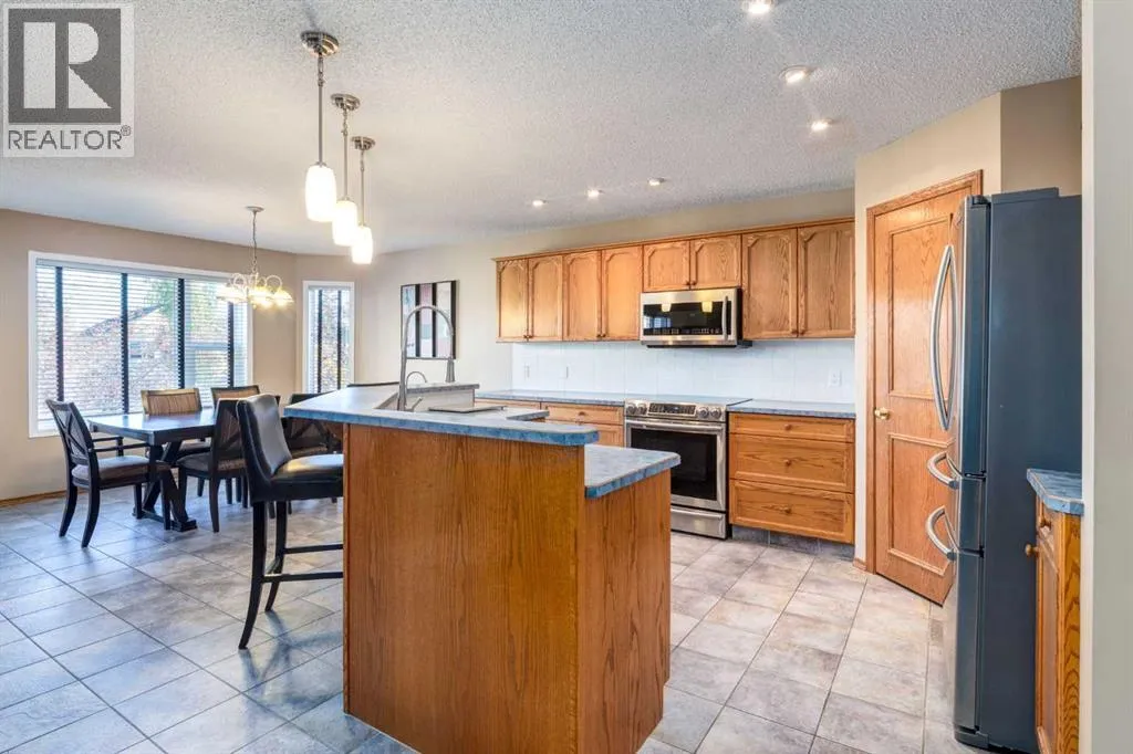 INCREDIBLE LOCATION and beautifully updated, this Somerset home is sure to impress! Step out your back door onto the walking path leading to the Somerset school and ball diamond as well as the Somerset Park with splash park, playground and tennis/basketball courts. You will love the modern curb appeal with mature landscaping and inside offers 2,828 SF of developed living space with ample room for a growing family. The main floor greets you with a large foyer leading to the bright and open main floor featuring tile and hardwood flooring, an abundance of natural light and a well-equipped kitchen with ample cabinetry, stainless steel appliances, a corner pantry and island with breakfast bar. The dining area provides access to the deck with backyard views and a 3 way fireplace is shared with the family room. A den with french door access, conveniently located laundry room and a 2-piece bathroom complete this space. Upstairs, the vaulted bonus room, with a corner gas fireplace, is a perfect space for movie night or watching the big game! The generously scaled master bedroom comes complete with a walk-in closet and spa-like 4-piece ensuite with dual sink vanity and a glass encased walk-in shower. Two additional bedrooms which share a 4 piece bathroom are also found on this level. The walk-out basement is finished with family room with wet bar, a 3-piece bathroom, ample storage and gives access to the stunning backyard with expansive patio making this an ideal space for summer gatherings. Don't overlook the central AC for those hot summer days. Nearby you will find the LRT, bus stops, public library, YMCA and an array of shopping and amenities along with easy access to Stoney Trail and other main arteries. This home is a MUST SEE! (id:27476)