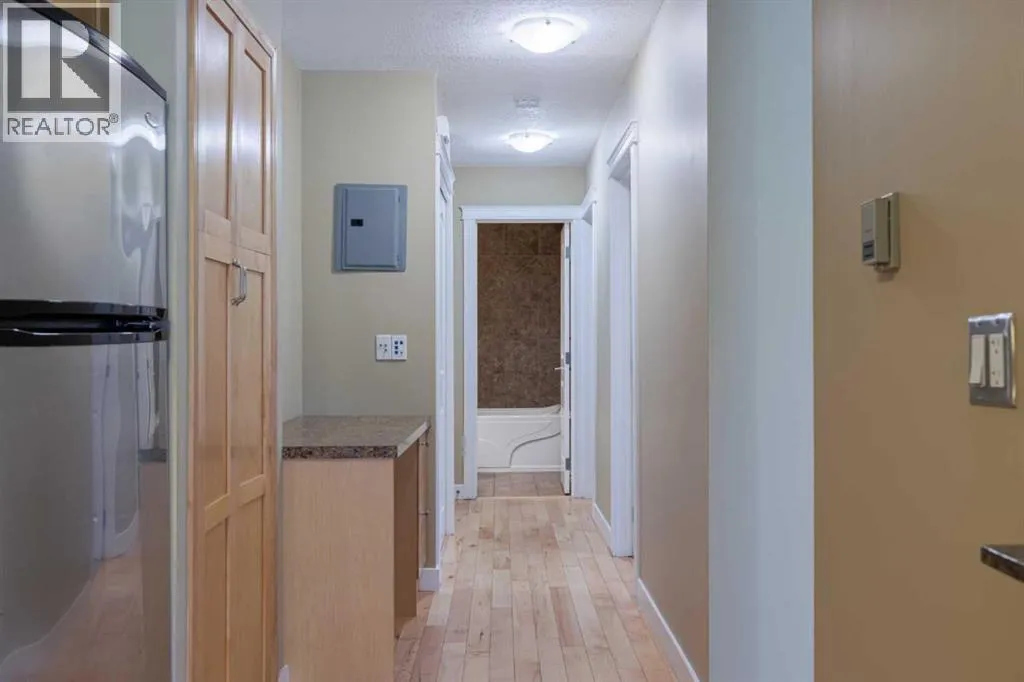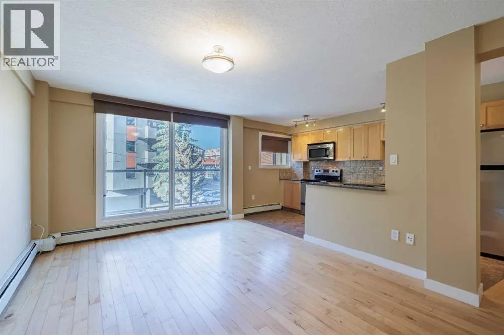 ** Sellers Want this Condo Sold ** Welcome to Lower Mount Royal! This top-floor two-bedroom unit is ideal for young couples or working professionals. Rear-facing and offering exceptional privacy, this beautifully maintained apartment condo features maple hardwood flooring, tasteful ceramic tile, and neutral carpets. The functional layout includes a glass-enclosed front balcony with black aluminum railings, ample natural light, and large windows throughout. The upgraded kitchen boasts maple cabinets, granite countertops, and stainless-steel appliances. Additionally, there is a built-in work desk in the hallway and a combination washer/dryer neatly tucked away in the kitchen cupboard. The bathroom offers a cultured marble sink with under-cabinet storage, upgraded hardware, and a deep soaker tub with tile surround. Both bedrooms are generously sized with spacious closets. Located just steps away from UPTOWN 17 Ave SW and numerous amenities including schools, public transit, shopping, cafés, and restaurants, this unit presents a wonderful opportunity to enter Calgaryâs real estate market. Book your viewing today! (id:27476)