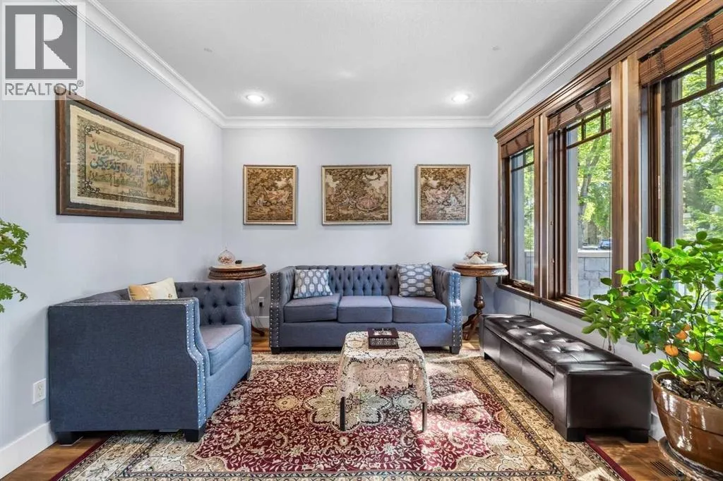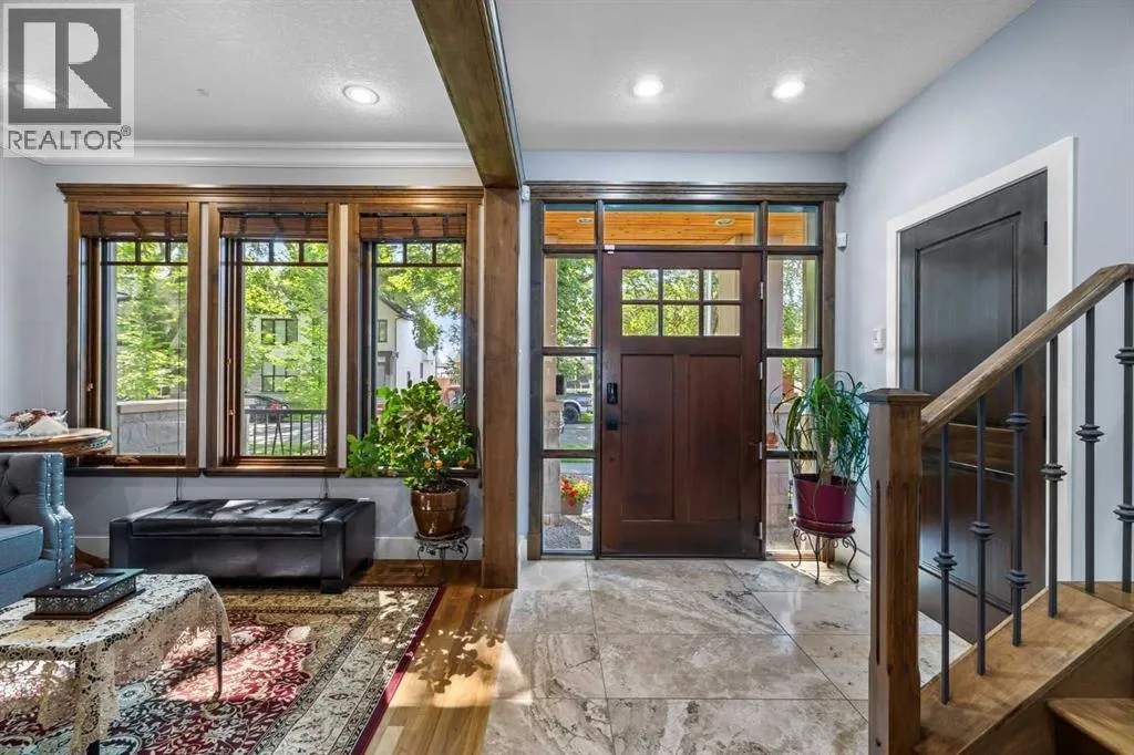 Welcome to the vibrant inner-city community of Crescent Heights! This stunning modern-style home spans nearly 3,000 square feet, seamlessly blending luxurious living with the convenience of urban amenities and nature at your doorstep. Custom-built by a renowned builder in Calgary with over 50 years of experience, this residence is a testament to meticulous craftsmanship and attention to detail. Nestled on a charming tree-lined street, the home is conveniently close to Rotary Park, Princess Island Park, and downtown. This exquisite property features high-end finishes across three levels. The main floor boasts a spacious living room and a gourmet kitchen, complete with maple cabinets, granite countertops, and elegant walnut flooring. Turkish Travertine stone flooring with in-floor heating enhances both the main and upper floors, while solid core Brazilian wood interior doors add an extra touch of sophistication. The oversized kitchen overlooks a large dining area and a cozy family room, separated by a three-way stone-facing fireplace and large Coussin windows that flood the home with natural light. Upstairs, the master suite includes a generous walk-in closet with organizers and a luxurious five-piece ensuite. This ensuite features Turkish Travertine stone flooring, in-floor heating with its own thermostat, his and her sinks, a stand-up shower with a concrete and tile base, and a jet tub. Additionally, two spacious bedrooms and a convenient laundry room are located on this level. The spacious basement offers a massive recreation room with a built-in wall unit and a wet bar, perfect for entertaining. It also features in-floor heating, an additional bedroom, and a full bath with a five-foot poured concrete and tiled shower base and surround. Designed for low maintenance, the exterior showcases attractive acrylic stucco, sandstone pillars, stamped concrete walkways and patio, and a double garage. Don't miss the opportunity to experience this incredible home â book your a ppointment today! (id:27476)