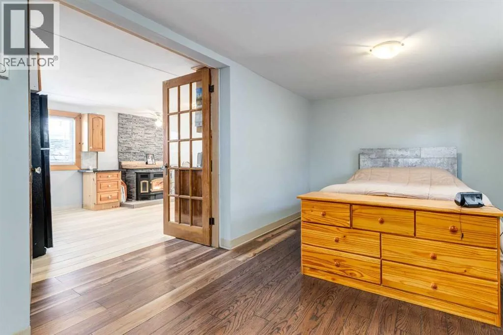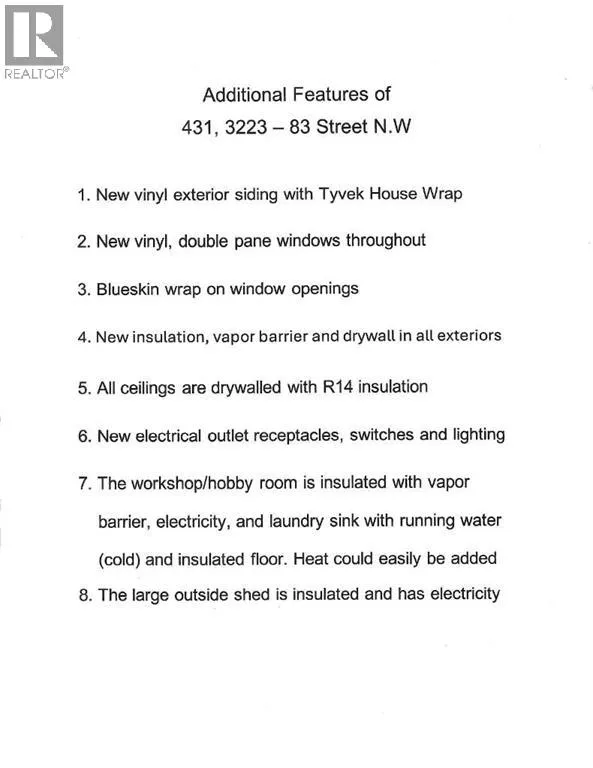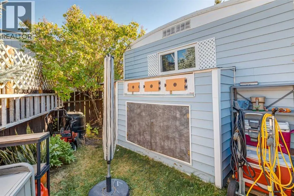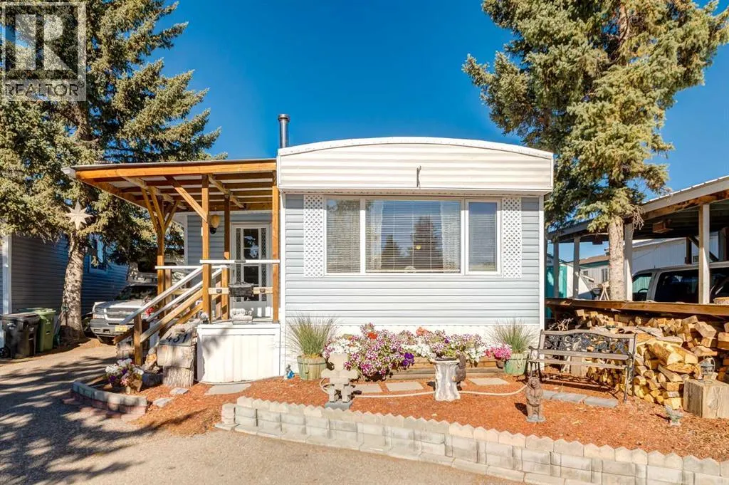 This charming home in the popular Greenwood Village community comes with numerous upgrades! It features a spacious eat-in kitchen with stunning knotty pine cabinetry, attractive laminate flooring, and two fireplaces that keep the space cozy during winter, complemented by a refurbished gas furnace rarely used by the current owner. The home offers a large living room, a great dining area in the kitchen, a generously sized primary bedroom, and a roomy second bedroom, making it a comfortable place to live. Upgrades include new exterior vinyl siding with Tyvek House Wrap, upgraded insulation, new drywall throughout, double-pane vinyl windows, new electrical outlets, switches, and lighting. There's also a fantastic workshop/hobby room with insulation, electricity, running water, and an insulated floor, easily accessible from inside the home. The large shed is also insulated and has electricity. The private backyard is perfect for BBQs, family gatherings, and gardening, with ample additional storage. Conveniently located across the alley from the new Farmer's Market, this affordable home offers easy access to the mountains and is just minutes from the ski hill at Calgary Olympic Park. (id:27476)