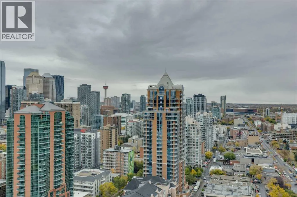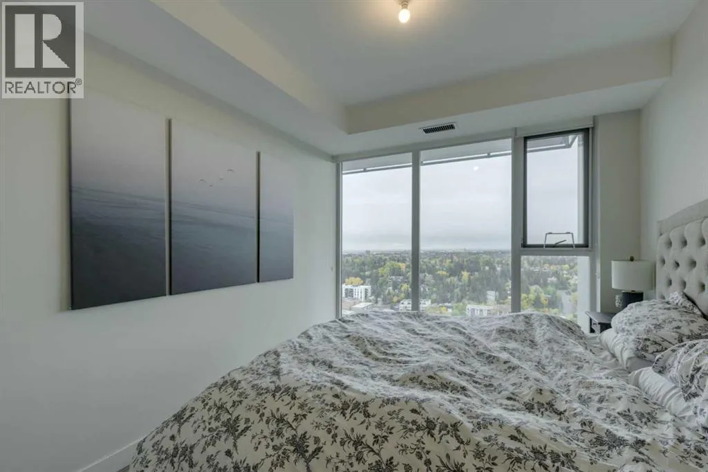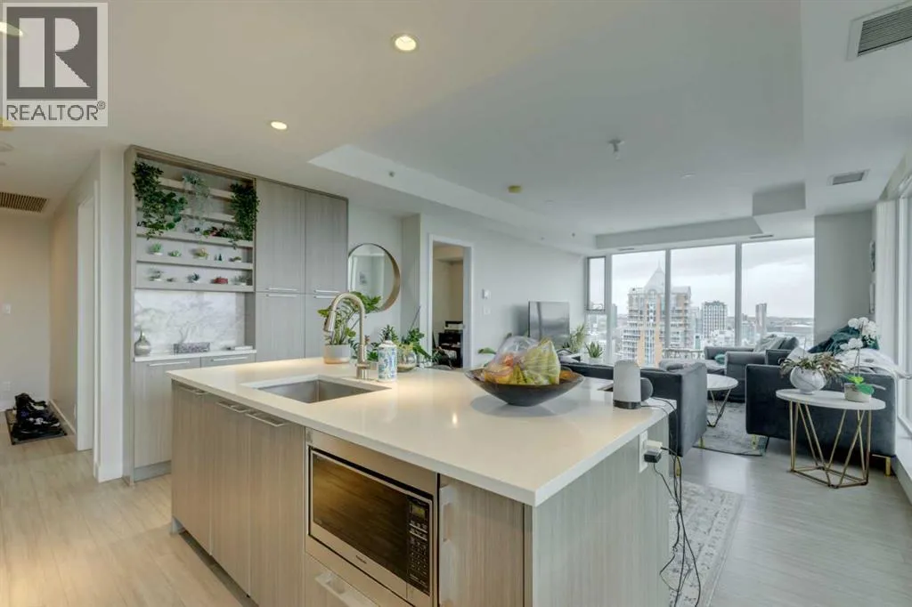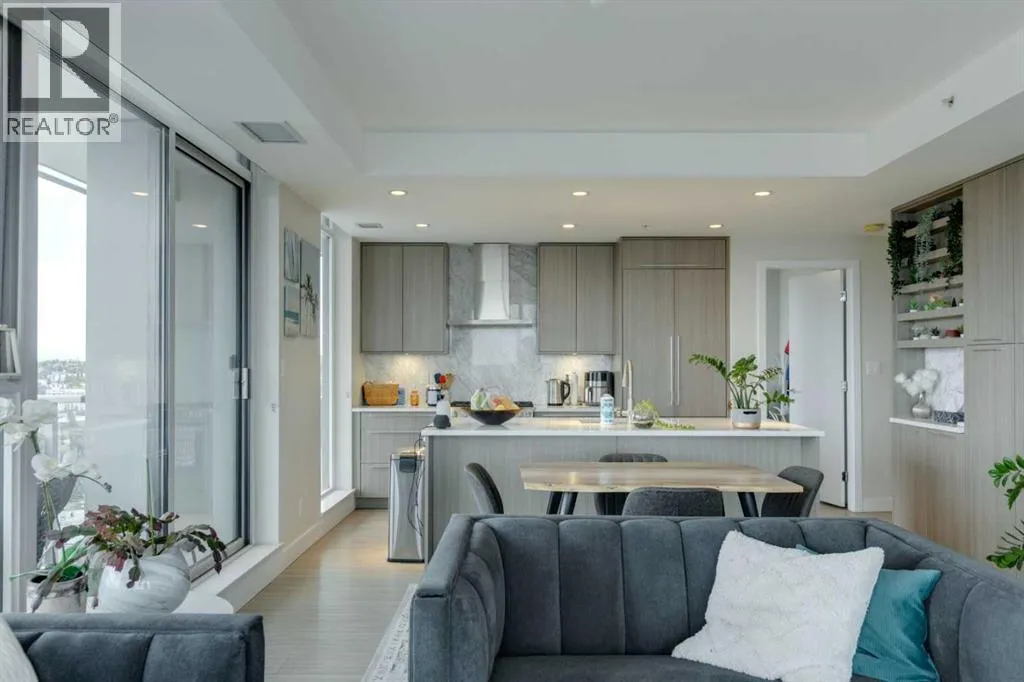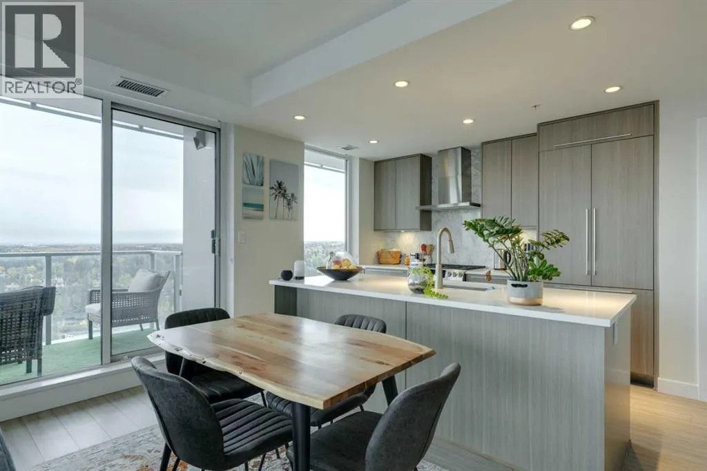 Welcome Home to The Royal! This 2 bedroom south/south east facing corner unit is perfect for anyone looking for all the perks and convenience of inner city living. Floor to ceiling windows throughout this home flood the living spaces with natural light and provide amazing downtown and city views. Opening to the living and dining areas, the well-appointed kitchen has been equipped with a gas range, integrated refrigerator, built-in shelving and an 8â quartz island with breakfast bar. The nice sized south facing balcony is the perfect place to relax and entertain. The primary bedroom has a walk-in closet and 4 pc ensuite with double vanity and walk-in shower. Adding privacy, the 2nd bedroom and 4 pc main bath are located on the opposite side of the unit. Enjoy the convenient full sized in-suite laundry and comfort of central air. The amenities at The Royal are amazing bar none â residents enjoy the 10,000 sq ft Club Royal including a fully equipped fitness centre, squash court & sauna, private dining room with gourmet kitchen & residentâs lounge, a beautiful garden terrace with barbeques, fire tables as well as 24 hr concierge service. Included is assigned heated, underground parking and an assigned storage locker. Located 1 block off lively 17th Ave SW where residents enjoy bars, restaurants and shoppes and conveniently attached to Canadian Tire and Save-On Foods. Walking distance to Downtown and all the amenities of Mount Royal Village and Mount Royal West. Enjoy easy access to transit, 17th Ave SW, 14th St, and the MNP Community & Sport Centre. (id:27476)