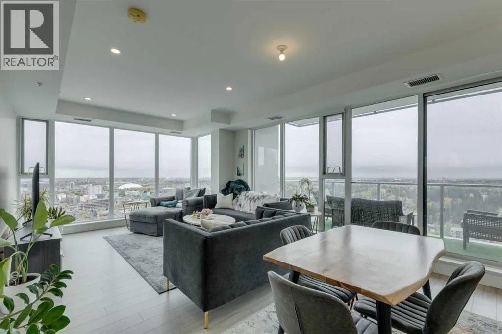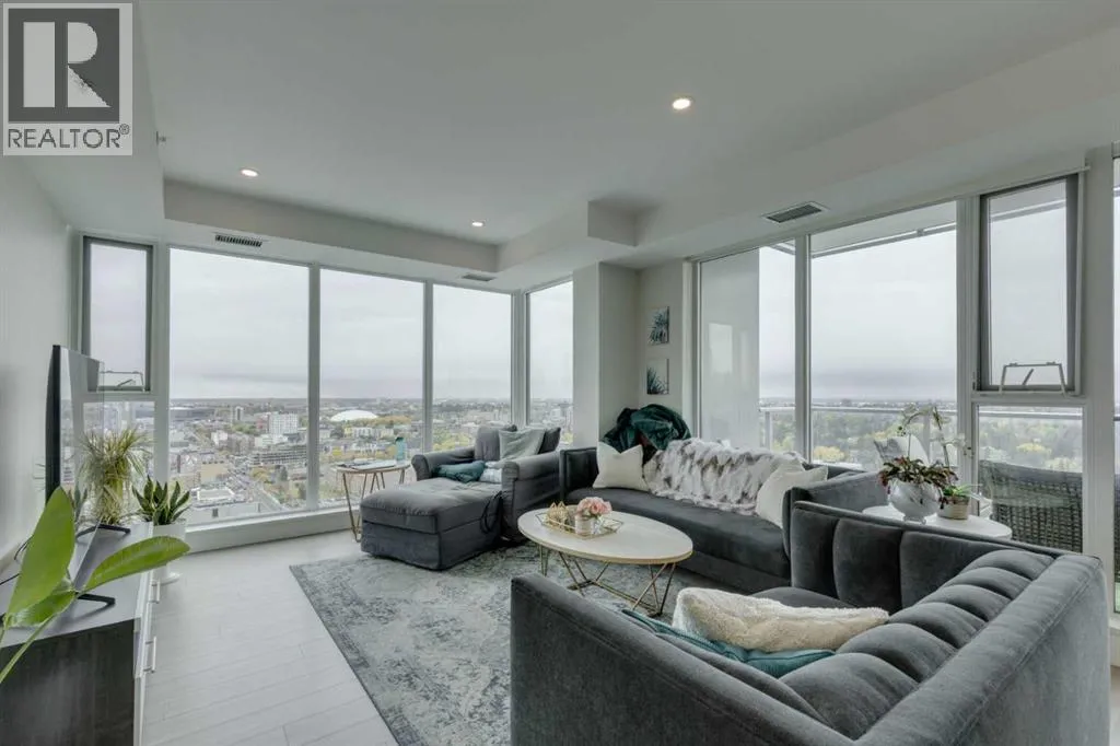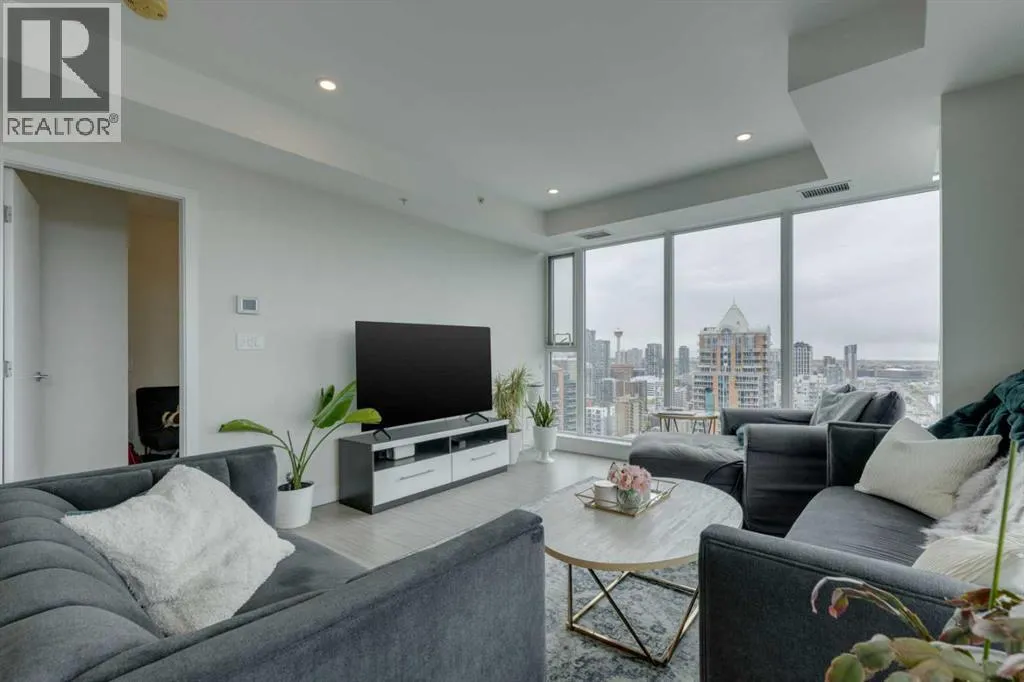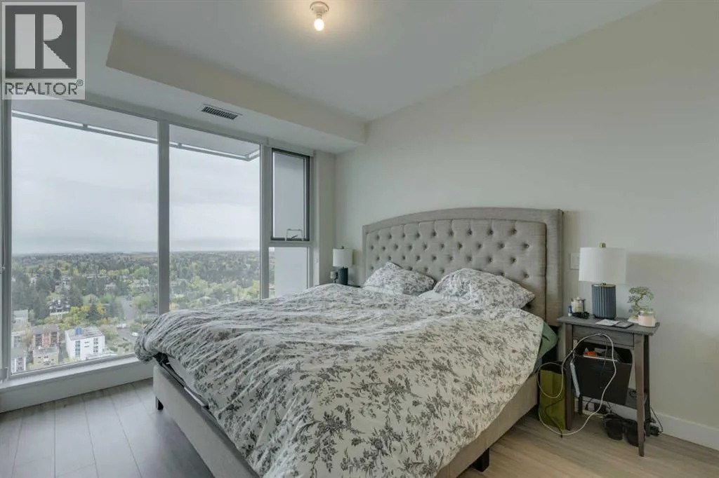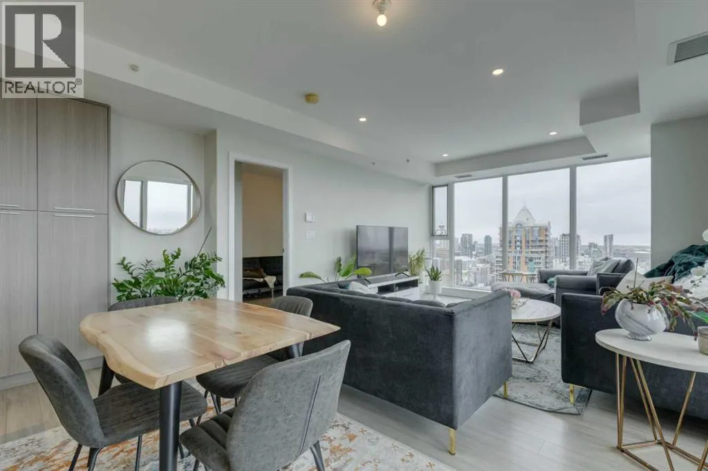 Welcome Home to The Royal! This 2 bedroom south/south east facing corner unit is perfect for anyone looking for all the perks and convenience of inner city living. Floor to ceiling windows throughout this home flood the living spaces with natural light and provide amazing downtown and city views. Opening to the living and dining areas, the well-appointed kitchen has been equipped with a gas range, integrated refrigerator, built-in shelving and an 8â quartz island with breakfast bar. The nice sized south facing balcony is the perfect place to relax and entertain. The primary bedroom has a walk-in closet and 4 pc ensuite with double vanity and walk-in shower. Adding privacy, the 2nd bedroom and 4 pc main bath are located on the opposite side of the unit. Enjoy the convenient full sized in-suite laundry and comfort of central air. The amenities at The Royal are amazing bar none â residents enjoy the 10,000 sq ft Club Royal including a fully equipped fitness centre, squash court & sauna, private dining room with gourmet kitchen & residentâs lounge, a beautiful garden terrace with barbeques, fire tables as well as 24 hr concierge service. Included is assigned heated, underground parking and an assigned storage locker. Located 1 block off lively 17th Ave SW where residents enjoy bars, restaurants and shoppes and conveniently attached to Canadian Tire and Save-On Foods. Walking distance to Downtown and all the amenities of Mount Royal Village and Mount Royal West. Enjoy easy access to transit, 17th Ave SW, 14th St, and the MNP Community & Sport Centre. (id:27476)