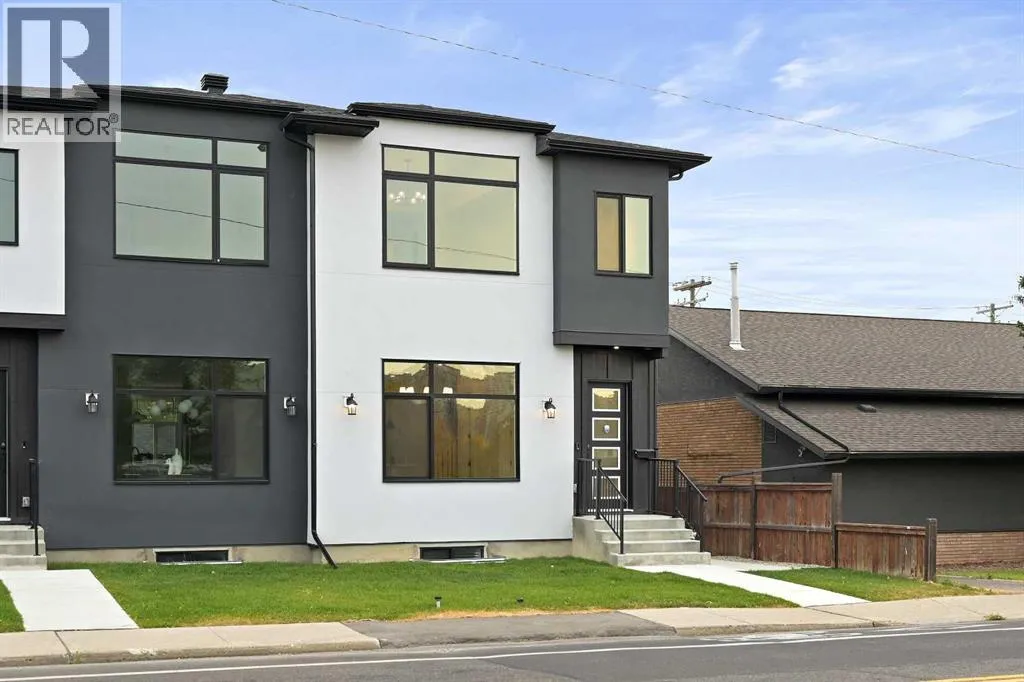 I'm excited to present this brand-new, move-in ready luxury infill with double garage and situated on an oversized 27' wide lot located on a convenient street in Bowness. This property boasts elevated design and incredible functionality, featuring a legal 2-bedroom basement suite and a sunny south exposed front with expansive valley views from the upper floor. Every detail was thoughtfully selected, from the wide-plank modern floors to the curated lighting and premium finishes throughout. Step inside to a bright, open-concept main floor with 10' ceilings, oversized windows and neutral tones that create an airy, inviting vibe. The large, well-lit dining room is perfect for bigger families and/or hosting guests and shows off a vibrant and colourful feature wall, which flows seamlessly into a designer kitchen featuring modern warm toned cabinetry, paired with beautifully coloured glass backsplash, quartz countertops, matte black hardware, a huge walk-in pantry with built-in shelving, and a perfect-sized center island with bar seating with more natural wood tones, bringing everything together beautifully. The upgraded stainless steel appliance package includes an oversized sub zero fridge with french doors, a gas cooktop with stylish hood fan, and a thoughtfully placed wall oven and microwave. The rear living room is wide and spacious featuring additional large windows plus a cozy gas fireplace with stone surround and custom mantle, and which leads you out to the large backyard, which features an oversized concrete pad, perfect for end of the day BBQ's and lounging. An enclosed mudroom with a large closet area and a sleek powder room that comes with a raised matte black sink complete the mainfloor. Upstairs contains the three large bedrooms, all with trayed ceilings, including the primary bedroom which is a true retreat that features a large walk-in closet with several custom built-ins plus a hotel like ensuite. Enjoy heated tile flooring, dual sinks, quartz countertops , matching tile surrounds, plus a free standing soaker tub and an oversized glass shower with rain shower head and roughed-in for steam. The upper laundry room comes with a sink, quartz countertops, additional wood toned cabinetry, and is situated beside the stylish full bathroom which features a tiled tub/shower combo. Downstairs features the thoughtfully designed legal 2 bedroom suite and features 9' ceilings, luxury vinyl plank flooring, wonderfully warm toned cabinetry, stainless steel appliances and lots of pot lighting. A full bathroom with elegant tile is also featured plus a dedicated laundry room, separate side entrance and storage, making this perfect for rental income or multigenerational families. Additional features include roughed in A/C, built-in speakers and each room wired for Cat5 data. This is truly exceptional value! Call your favorite agent today to view the excellent inner city new build. (id:27476)