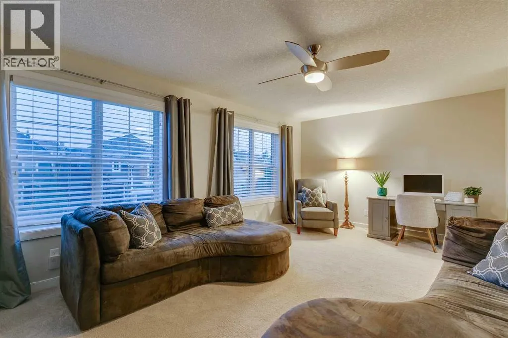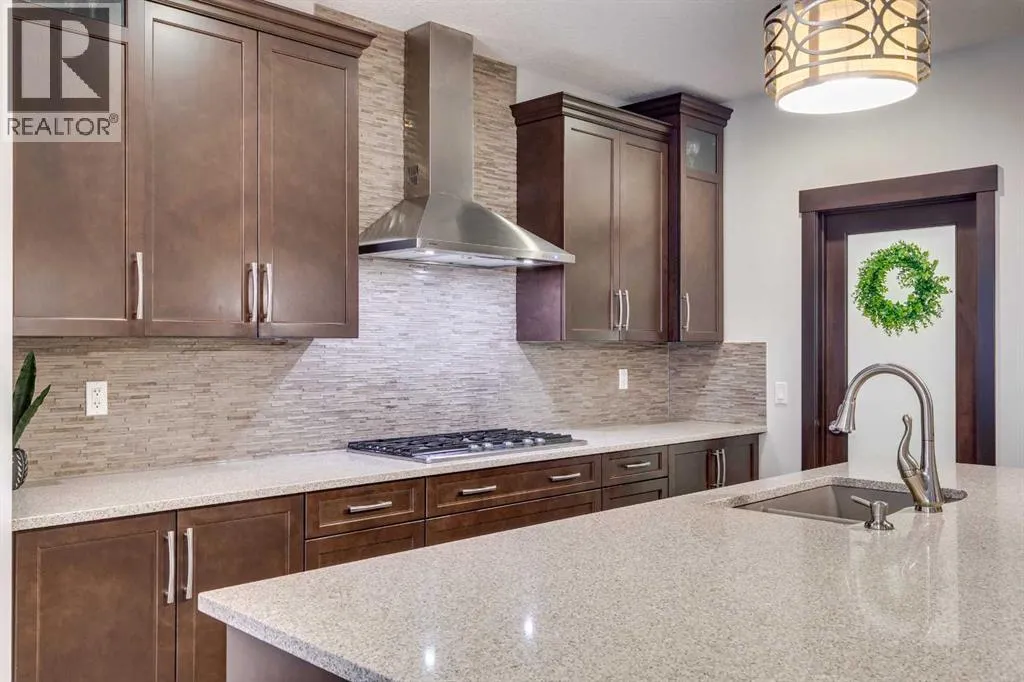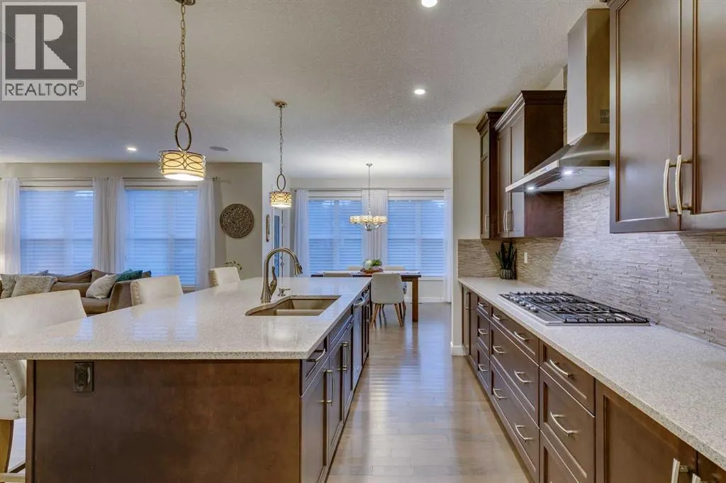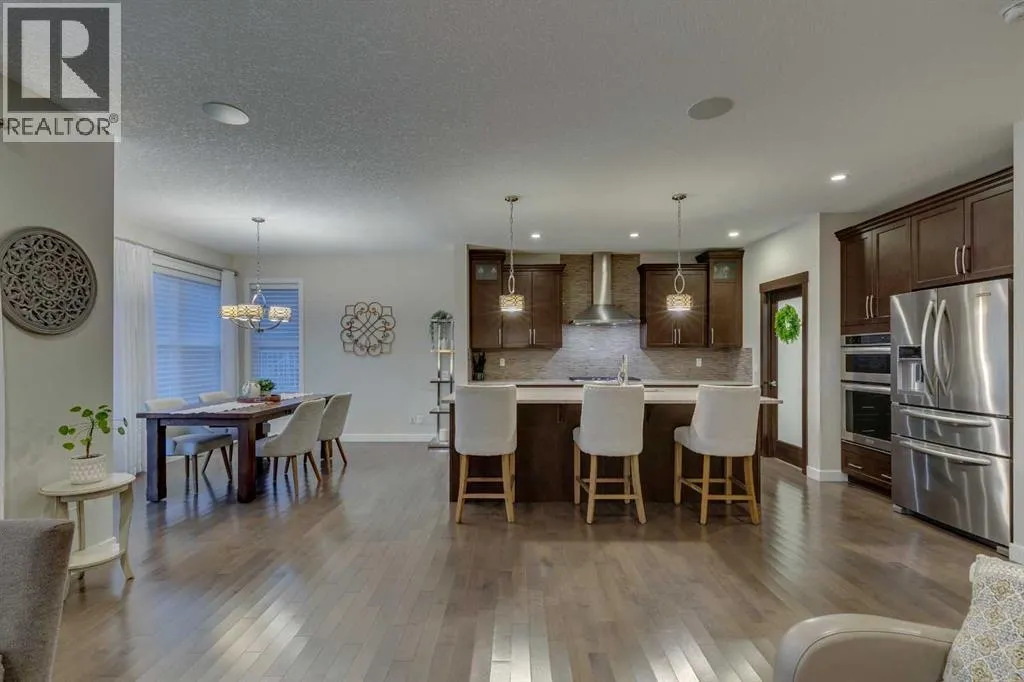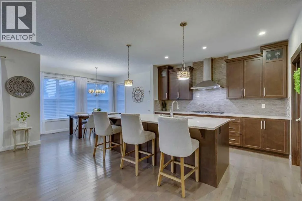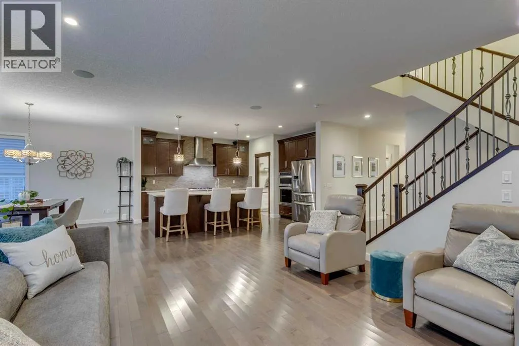 OPEN HOUSE - Sunday, November 16 3:00-5:00 - Step into this thoughtfully designed home in Mahogany and feel the space work for you from the moment you enter. A welcoming front entry leads into a dedicated officeâideal for remote work or studyâbefore opening into a spacious, light-filled main floor with 9â ceilings and rich hardwood floors. The open-concept layout is anchored by a full-height stone fireplace in the living room, complemented by in-ceiling speakers and large windows that bring in sunrise and sunset views. The kitchen is both stylish and highly functional, featuring an oversized island with quartz countertops, upgraded KitchenAid appliances, a marble backsplash, and extended cabinets with crown molding. A generous dining area leads directly to the fully fenced backyard, where a composite deck and stone patio offer low-maintenance outdoor living. The main floor wraps smartly around to a large pantry, mudroom with garage access, and a half bath for convenience.Upstairs, the primary suite offers a quiet retreat with a large ensuite that includes a 10mm glass shower enclosure, a soaker tub, and in-ceiling speakers. Two more bedrooms, an upper-floor laundry room, a full bathroom, and a bonus room (pre-wired for rear speakers) provide plenty of space for any lifestyle. The unfinished basement with 9' ceilings gives you the flexibility to create whatever you need nextâwhether thatâs a gym, home theatre, or extra bedrooms.Enjoy the added benefits of private dock access at 151 Mahogany Landing and semi-private beach access. Plus, you will be within walking distance to both Catholic and public elementary schools, and have quick access to two parks within a block of the home.Mahogany is Calgaryâs premier lake community, offering four-season activities, a private beach, stunning pathways, and a vibrant community feel. With shops, dining, and recreational amenities all nearby, youâll love the balance of city living and lakeside comfort this neighbourhood prov ides. You're not just purchasing a home, you're unlocking an entire lifestyle! (id:27476)