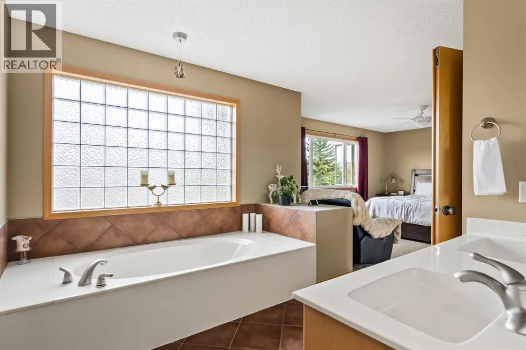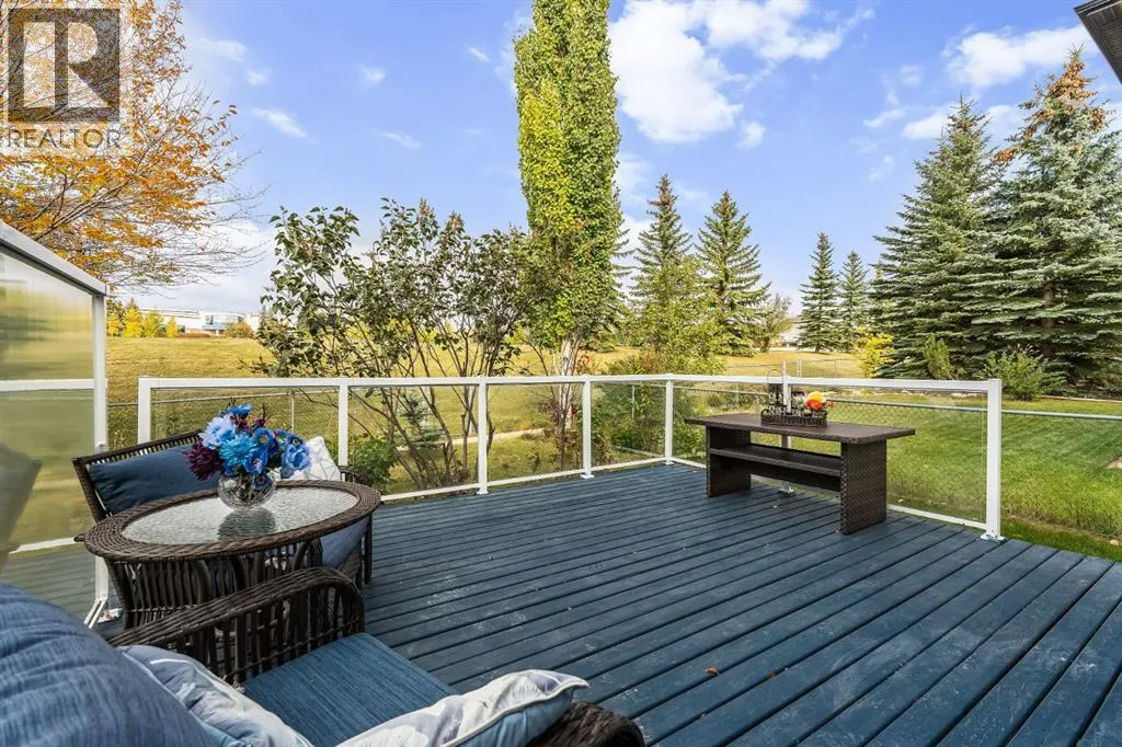 OPEN HOUSE - Sat, Nov 8 (1-3pm) LOCATION ALERT!! A quiet crescent in Signal Hill, backing the playing fields, adjacent the Westside Rec Centre, steps to the West LRT and Ernest Manning HS, a short walk to Battalion Park Schoolâ¦. A FANTASTIC LOCATION! Enjoy your evenings on the deck, with no neighbours behind, send the kids to kick a ball in the field behind, sneak out the back gate for your workout at the Westside Rec, or to see your kids off to school in the morning⦠there is a lot to LOVE about this location. This two storey home offers 2730 sq ft over three levels, a wonderful space to call home. On the main you will enjoy the Great Room in back, overlooking the playing fields â PRIVATE & QUIET! The kitchen is designed for entertaining with its center island breakfast bar, and generous dining nook, granite counters and s/s appliances including a gas stove. There is also a living room (or dining room) at the entrance, under a 17â cathedral ceiling, with a south exposure â WARM & BRIGHT! The sweeping staircase leads you upstairs where you will find the primary retreat behind French doors, overlooking the fields behind, where you will enjoy a lounge area and full 5pc en suite. There is a second bedroom up, which also features a full en suite PLUS⦠two additional beds down. The lower level is fully developed offering a large rec room, the two additional beds and a full bath, Your older kids will love to have this space to themselves. (id:27476)