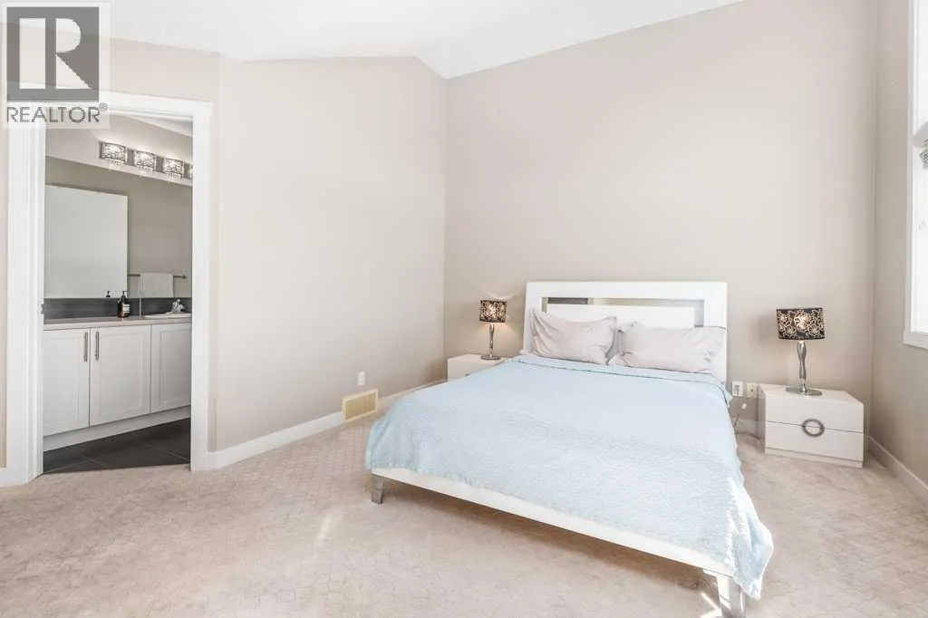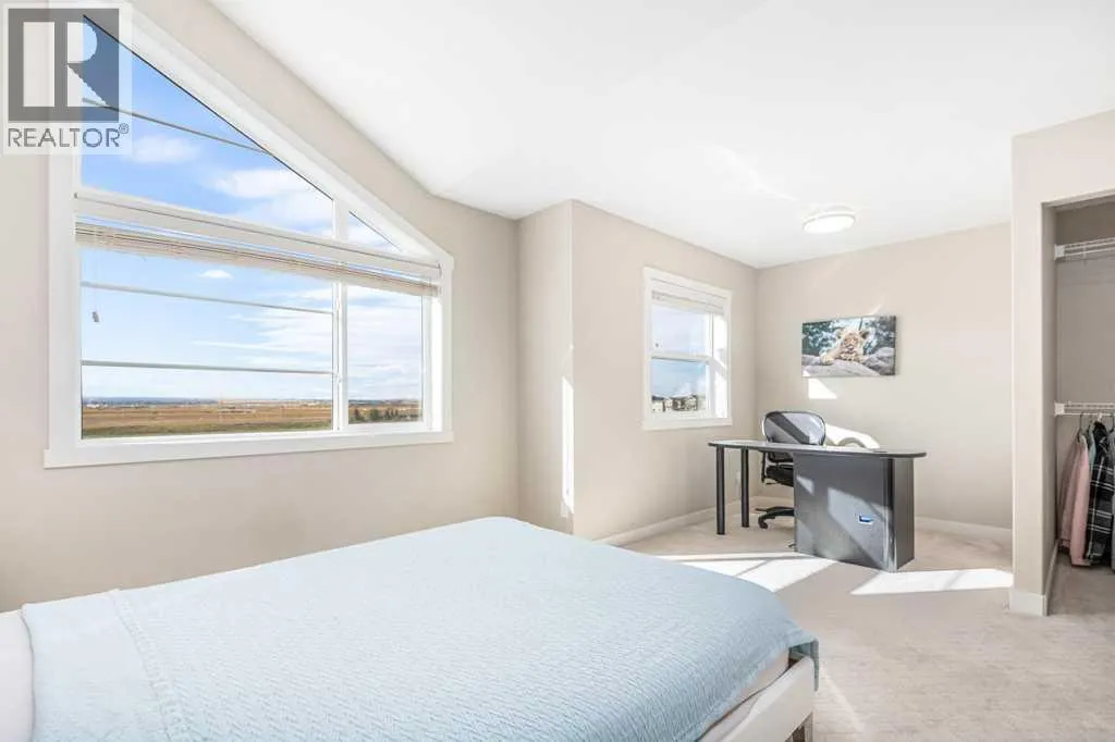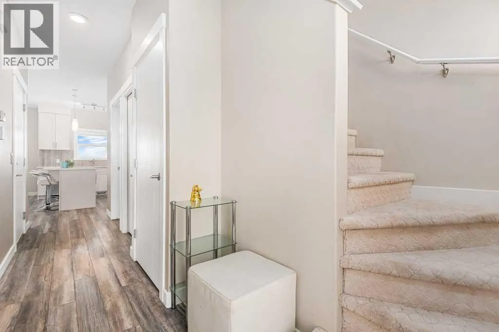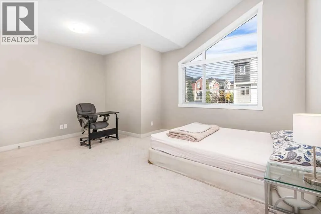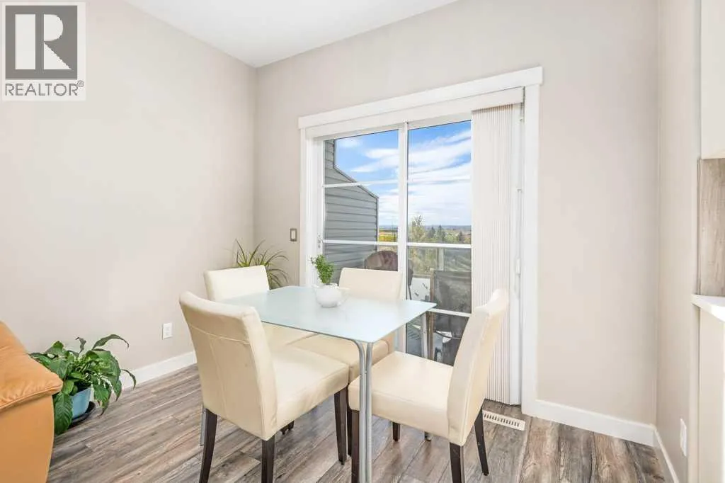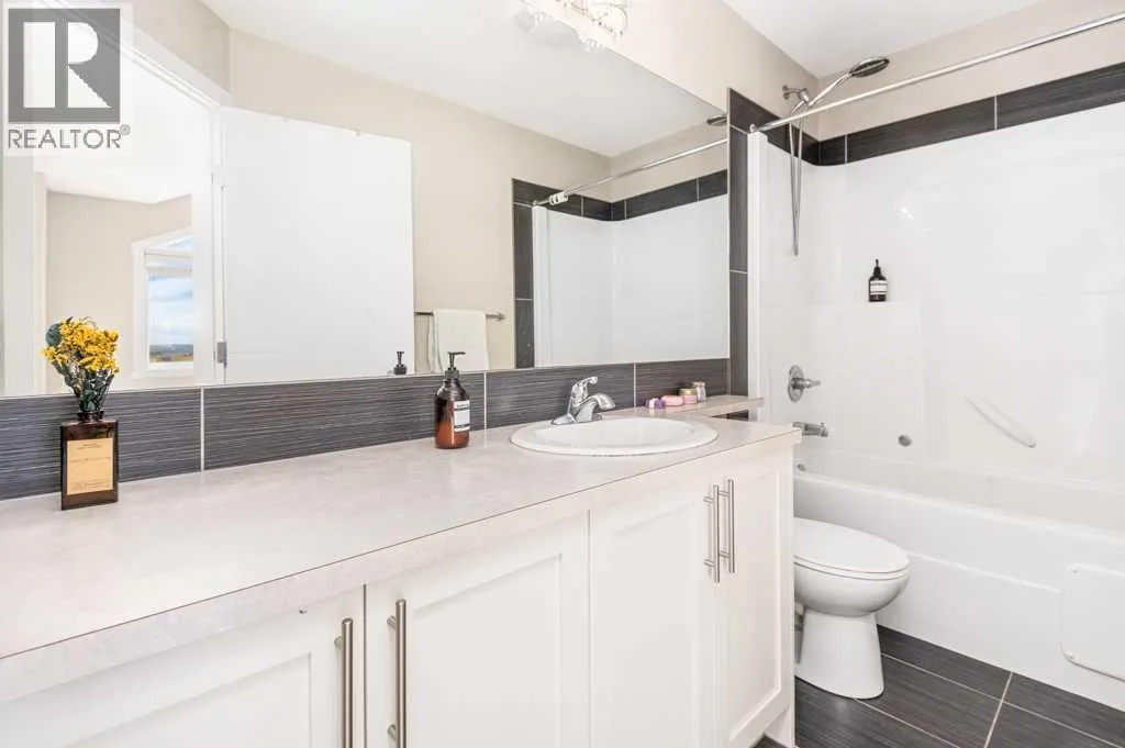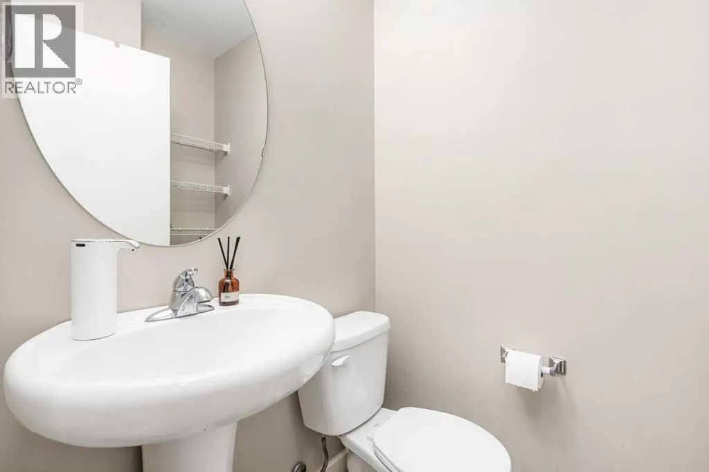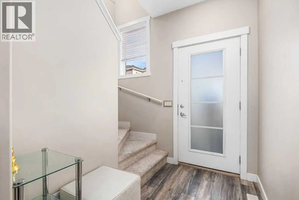 Welcome to this beautifully designed walkout townhome backing directly onto a tranquil pond and pathway system in the vibrant, amenity-rich community of Redstone. Offering low condo fees, Built Green® certification, and unobstructed mountain views, this home combines modern living with thoughtful sustainability.Step inside to discover soaring 9-foot ceilings and a bright open-concept main floor perfect for entertaining. The chef-inspired kitchen features upgraded 42â cabinetry, quartz countertops, a gas range, stainless steel appliances, and a generous islandâideal for casual dining and hosting. Step out onto your west-facing balcony, complete with gas lineâperfect for BBQs and enjoying sunset views over the pond and Rockies.Upstairs, youâll find two oversized primary suites, each with vaulted ceilings, private ensuites, and large windows framing peaceful water and mountain vistas. Upper floor laundry adds convenience to everyday living.The partially finished walkout level leads to a fenced and landscaped private patio backing onto the pondâyour own backyard oasis with immediate access to trails and greenspace. An attached single garage and additional storage complete the lower level.Perfectly located with quick access to Stoney Trail, Deerfoot Trail, the Calgary International Airport, and CrossIron Mills, this home is also just minutes from parks, playgrounds, Redstone View Lake, a future C-Train station, and a new school currently planned within walking distanceâmaking it ideal for families and future resale value.Whether youâre looking for your first home, a downsized lifestyle, or a low-maintenance investment in a growing community, this home offers mountain views, nature on your doorstep, and effortless connectivity. Your Redstone lifestyle begins here. (id:27476)