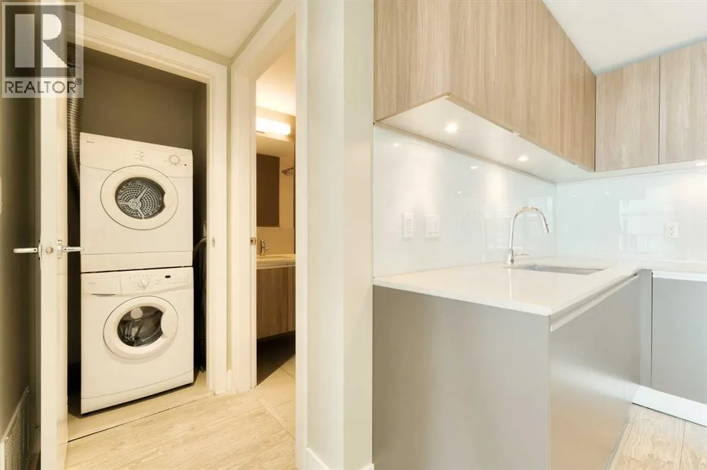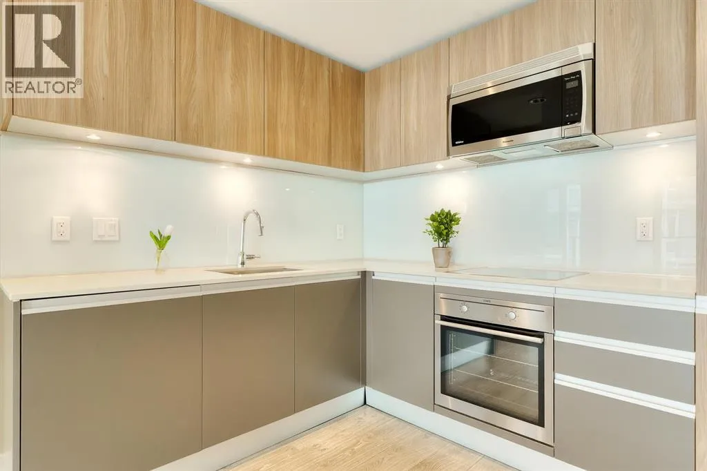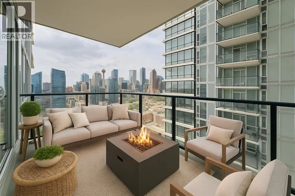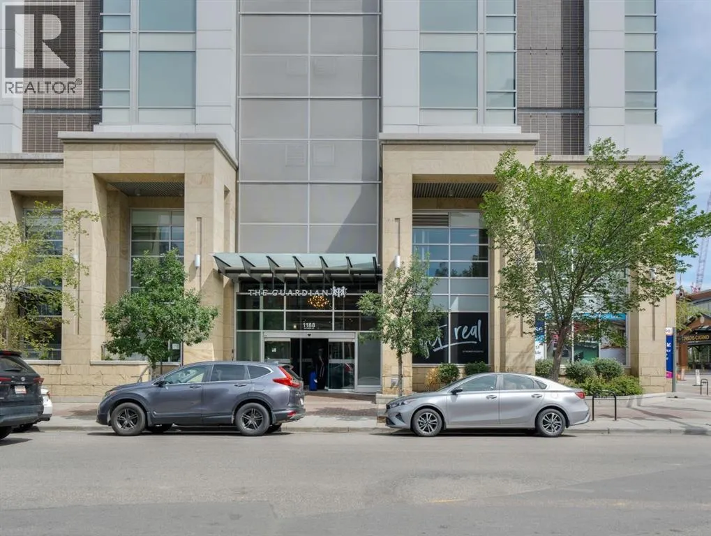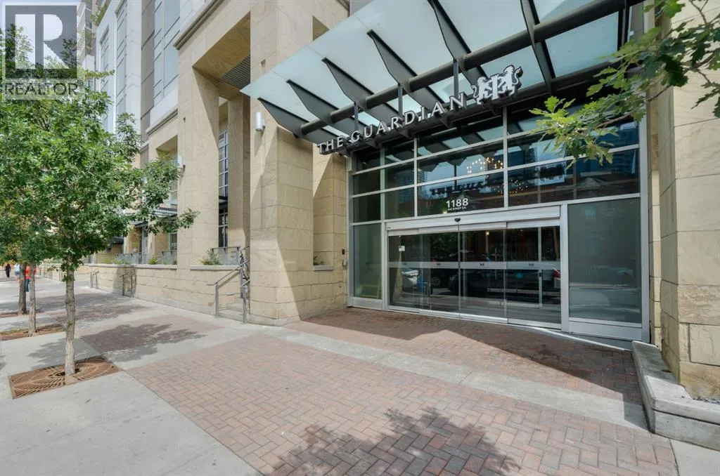 Welcome to your modern retreat in the heart of Calgaryâs vibrant Beltline! Perched on the 19th floor, this sleek 1-bedroom, 1-bath condo in The Guardian South Tower captures stunning PANORAMIC VIEWS of downtown Calgary and the Bow River through FLOOR-TO-CEILING WINDOWS all from your balcony.Designed for comfort and style, this thoughtfully laid-out home features contemporary finishes, bright open spaces, and elegant flooring throughout. The kitchen boasts integrated cabinetry, concealing the refrigerator and dishwasher for a seamless look, along with an INDUCTION COOKTOP and a BUILT-IN MICROWAVEâperfect for the modern cook. The open-concept living area flows effortlessly, creating the ideal space to relax or entertain while taking in those incredible city views.The bedroom is filled with natural light and includes a custom BUILT-IN CLOSET system with DRAWERS, offering smart storage without the need for a dresser. A stylish 4-piece bathroom sits conveniently nearby, and IN-SUITE LAUNDRY with a STACKED WASHER AND DRYER adds everyday ease.Enjoy secure, carefree living with 24-hour concierge service, resident-only floor access, and a TITLED UNDERGROUND PARKING STALL (currently leased for $50/month). Youâll also appreciate the ASSIGNED STORAGE UNIT for your extra belongings.The Guardian sets the standard for downtown amenities: a fully equipped FITNESS CENTRE with SHOWERS, an inviting ROOFTOP TERRACE with BBQs, a residentsâ LOUNGE with a kitchen and games area, and even a WORKSHOP for crafts or woodworking.Perfectly positioned near the Calgary Stampede grounds, LRT, and an array of boutiques, restaurants, and entertainment, this home offers the best of urban convenience and style. Whether you're a first-time buyer, investor, or city dweller looking to downsize, this is downtown living at its finest. (id:27476)