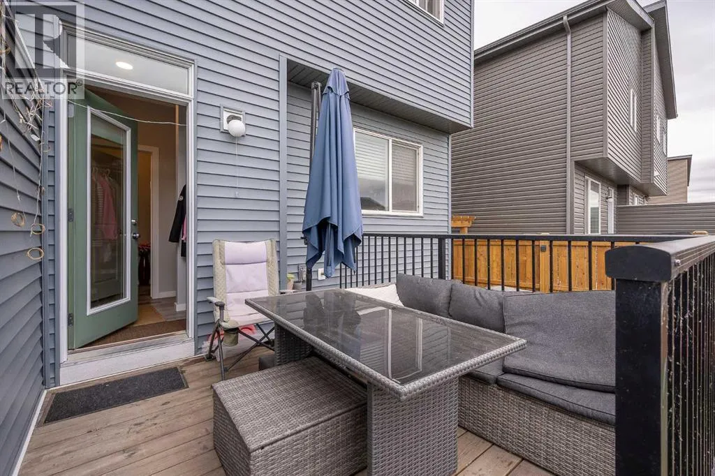 Beautiful 3-Bedroom Duplex in Belmont â Across from a Pond & Surrounded by Future GrowthWelcome to this charming 3-bedroom, 2.5-bath duplex offering 1,407 sq. ft. of bright, open living space in the heart of Belmont, SW Calgary. This home features a welcoming front porch, double detached garage, fenced yard with grass, trees, and a deck, plus a painted basement floor ready for future development. Inside, enjoy high ceilings, an open-concept layout, east-facing primary bedroom with a walk-in closet and 3-piece ensuite, and upper-level laundry. A PAX closet system is included. Any furniture from this home can also be purchased separately or as a package.Located across from a scenic pond, steps from bus stops, and near Ron Southern Elementary and Holy Child School, with another school planned. Enjoy quick access to a dog park, skate park, shopping plaza, walk-in clinic, and grocery stores â plus a new gas station and retail plaza (1-minute walk) under construction.Belmont is one of Calgaryâs fastest-growing communities, with a future C-Train stop, multi-sport recreation centre and library (2027), and a 145,000 sq. ft. retail centre coming soon, making this the perfect home and investment opportunity. (id:27476)