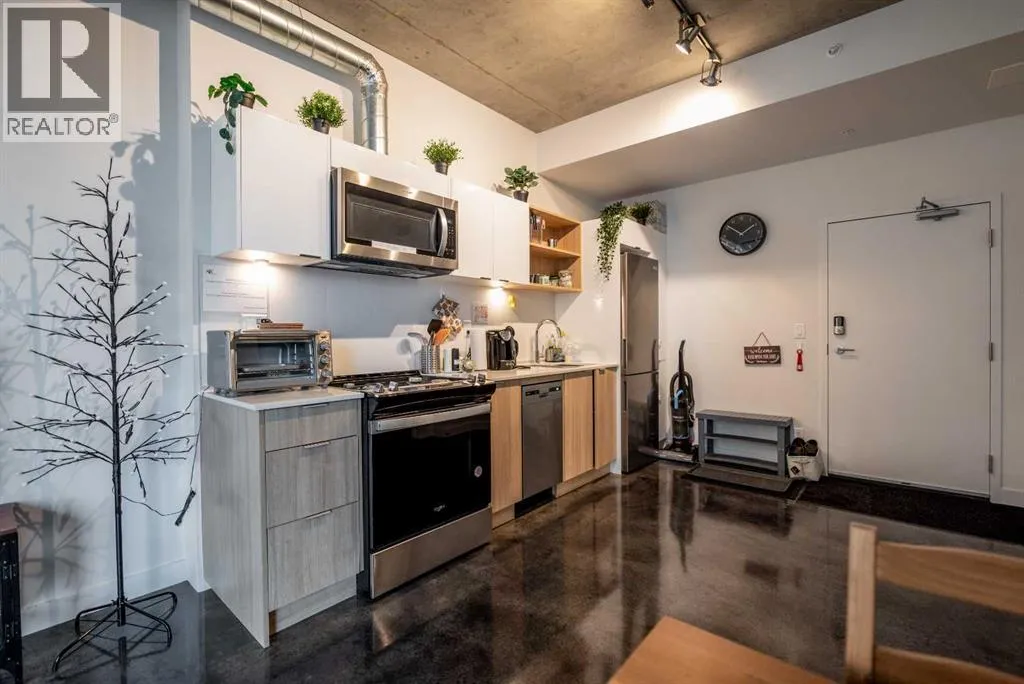 NUDE by battistella, it is simple yet functional. Experience urban living in the West Beltline communality. This 2024 newly built apartment focuses on the details of urban living â a parcel room, a bike parking garage located on the main floor , bike maintenance area, and a pet grooming station. Living your biggest, best life has never been easier. Located in a prime area just steps away from public transit allows you to reach your destination faster than ever before. Restaurants and shops on the famous 17th Avenue makes sure you are never out of options. Once stepping inside, you will notice the minimalistic and simplistic design. Concrete floors with 9.5ft ceiling and exposed ducting ensures an industrial aesthetic, while the 9ft windows offer a stunning view of the city skyline and also floods the unit with natural light. Open floor plan features custom kitchen cabinets, quartz countertops and conclude with high gloss concrete floor. Rental underground parking available. Investor: Short-term rental and Airbnb are permitted. (id:27476)