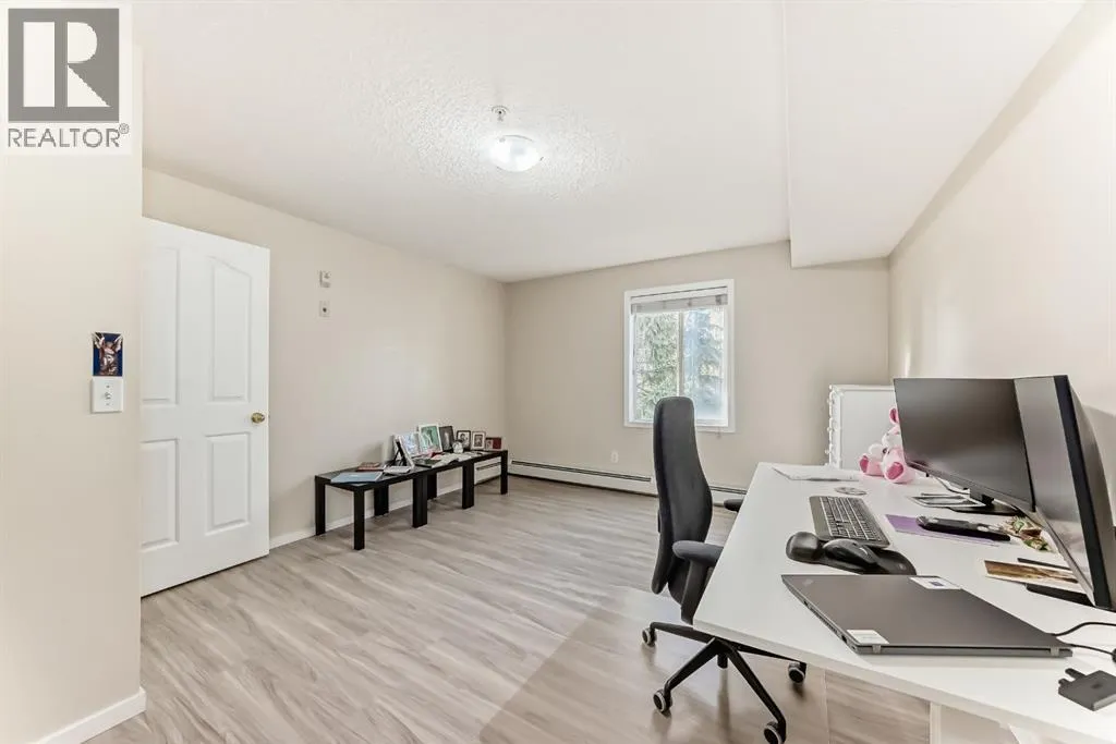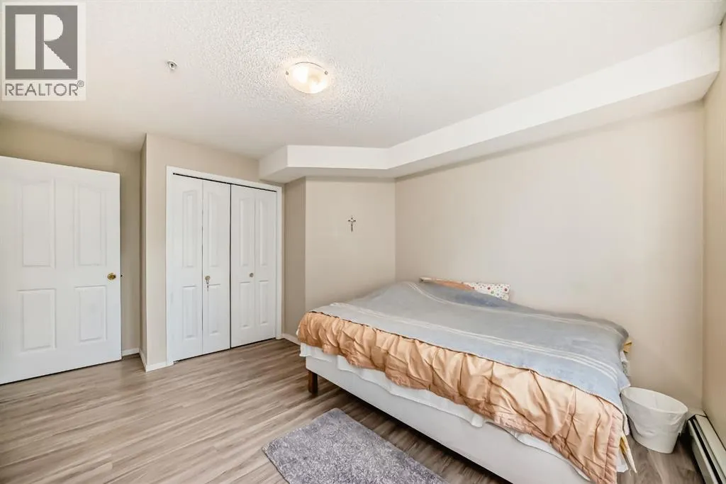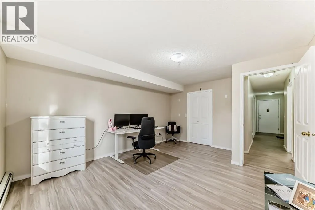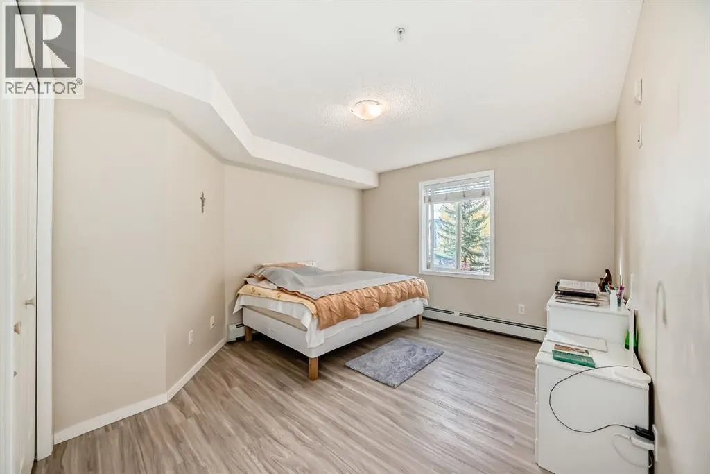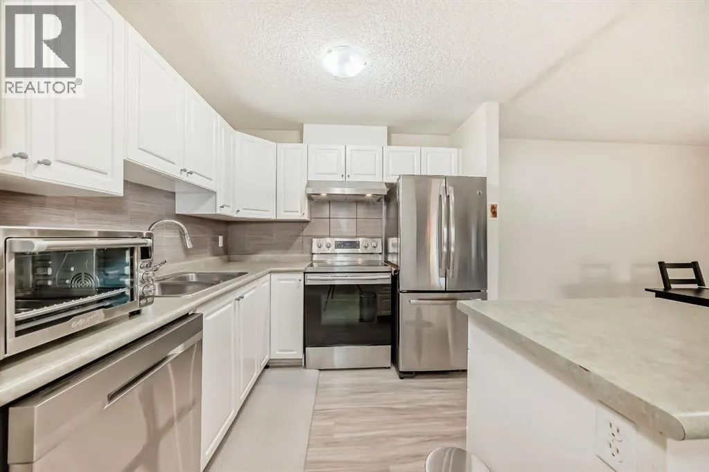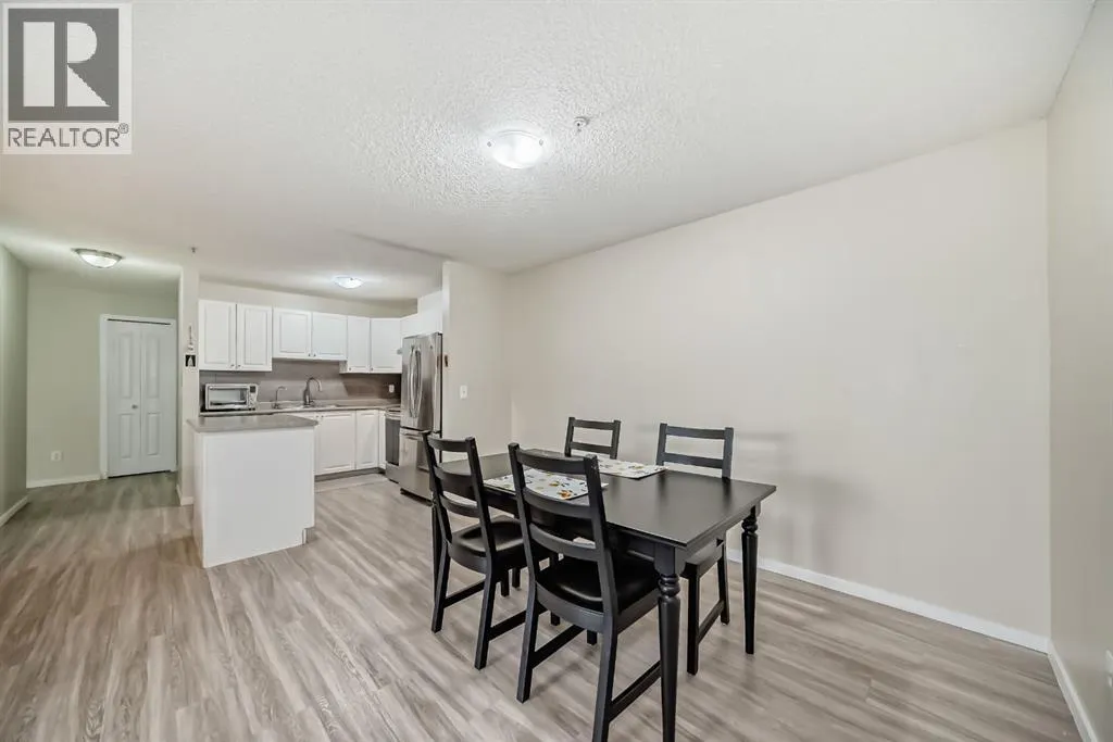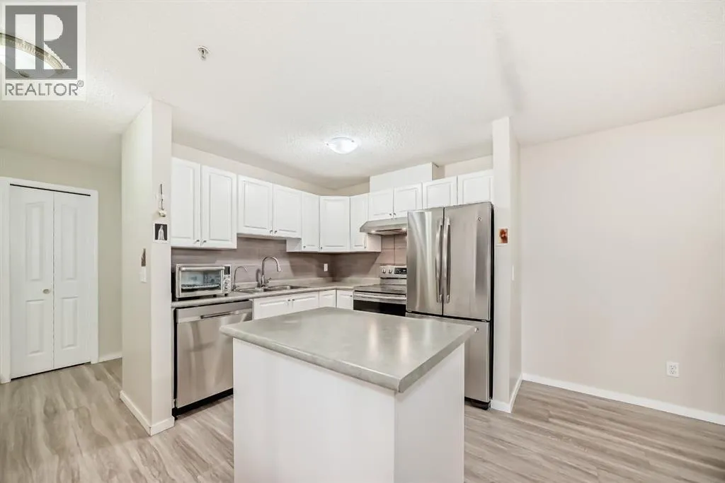Welcome to the sought-after Malibu floor plan, the largest two-bedroom, two-bathroom condo in the building â freshly painted in warm, neutral tones and move-in ready!Step inside to an expansive living room with a cozy corner fireplace and built-in surround sound wiring, opening onto a large private deck overlooking the tranquil fountain and courtyard. The bright, open kitchen flows seamlessly into a generous dining area that easily seats 6â8 people, perfect for entertaining.The primary suite offers a spacious bedroom, walk-through closet, and private 4-piece ensuite. A second oversized bedroom sits next to another full bathroom â ideal for family, guests, or a home office.Youâll love the in-unit storage and laundry room with washer & dryer included. Condo fees conveniently cover heat and electricity, adding value and peace of mind.Parking is easy with an assigned stall plus an additional pass for street parking.Unbeatable location â just steps to the C-Train, YMCA, library, shopping, restaurants, and movie theatre. (id:27476)