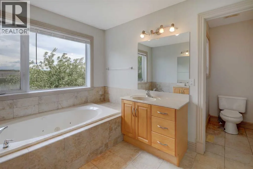 Located in a beautiful suburban neighborhood suitable for all ages. Brand New Paint and Upgraded German waterproof laminate throughout the entire house. Main Level includes High Ceilings in the foyer, a spacious Den, NEWER washer and dryer, a built-in gas Fireplace in the living room, Stainless Steel kitchen appliances, a NEWER stainless-steel fridge, Granite Counter Tops, along with a Kitchen Island, Large Pantry, and plenty of Cabinetry. The dining room looks out to a Private Fenced Backyard and a gas line for BBQ. Upper Level features include a Large Bonus room, a Primary Bedroom with a Large Walk-in Closet, an Ensuite with a Separate Shower, and a Jetted Tub; and 2 Bedrooms and a Full Bathroom. Undeveloped FULL Basement is perfect for storage or upgrades. This house is close to Bow Trail/Stoney Trail, Schools, and Amenities, as well as Easy Downtown Access. (id:27476)