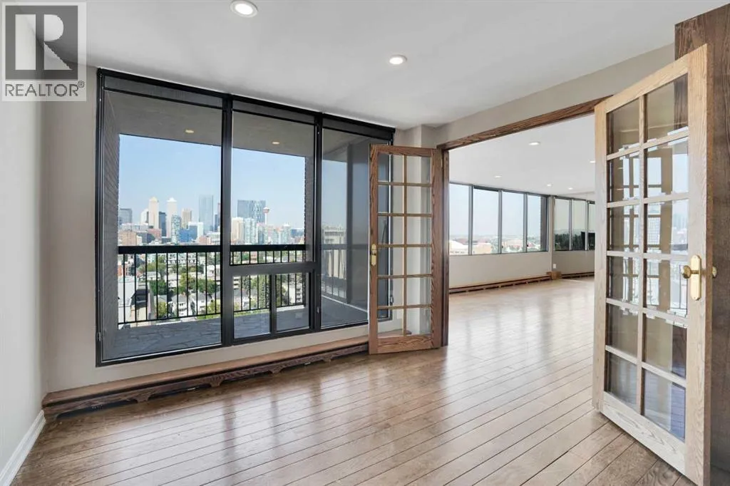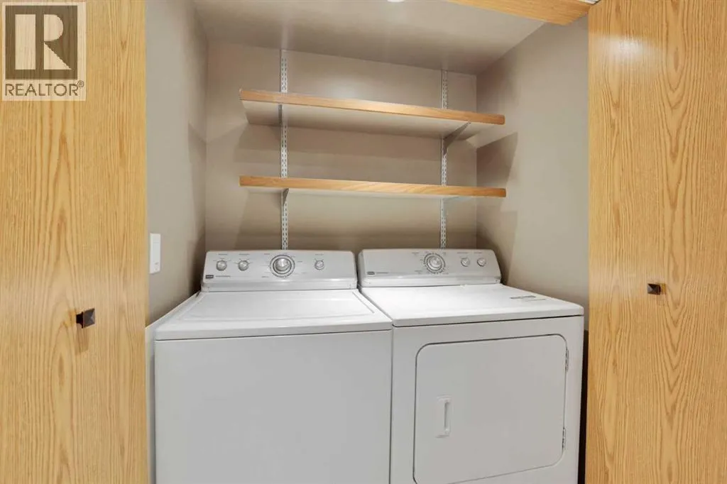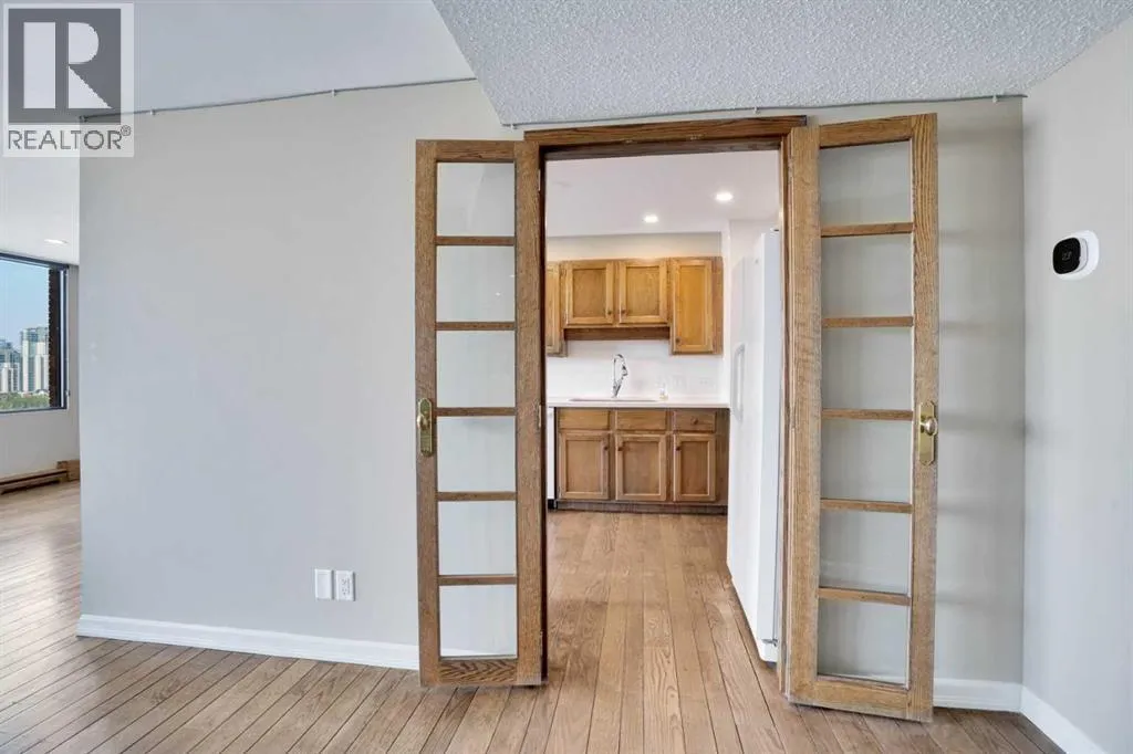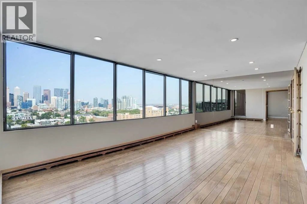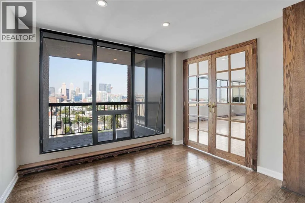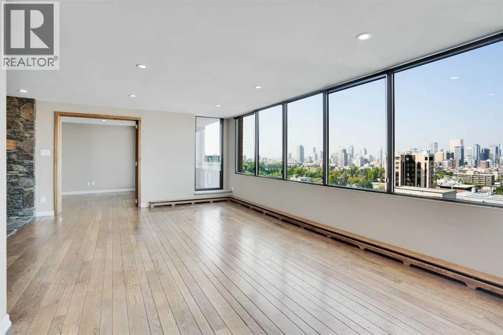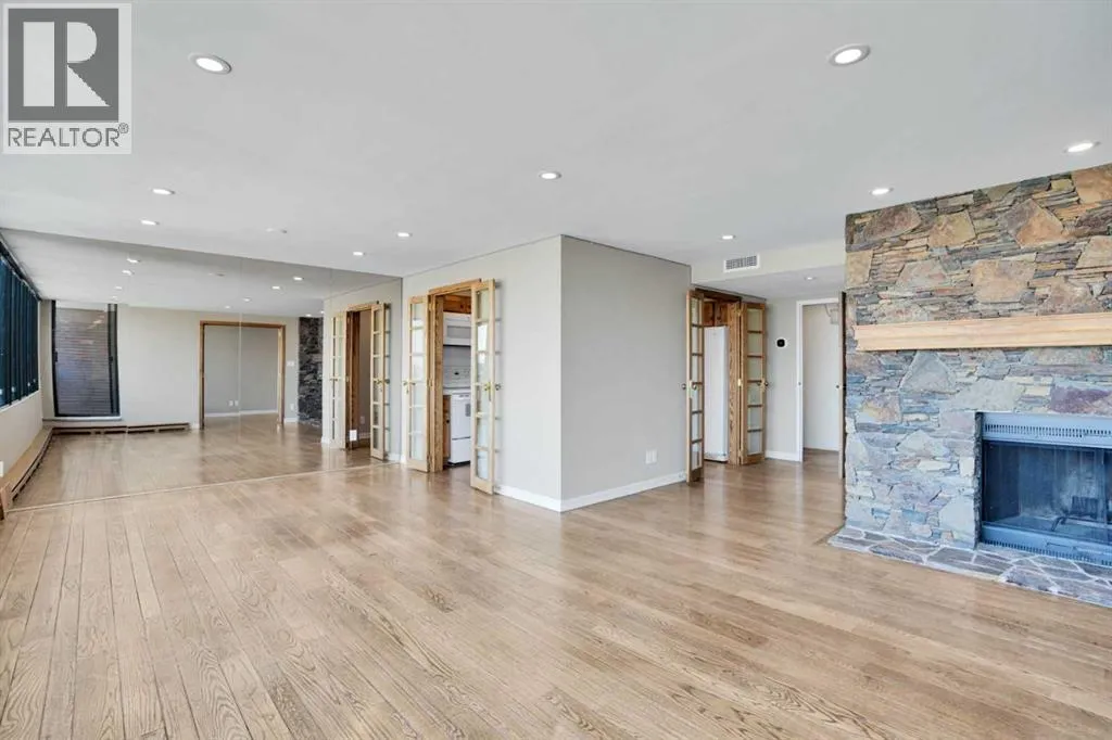 ROXBORO HOUSE sub-penthouse suite with STUNNING unobstructed city view and wood burning fireplace. Distinguished building on Elbow River and mature pathways, easy access to full complement of international restaurants and boutiques along delightfully vibrant Fourth Street. For the energetic, you can even walk downtown. Very well kept and maintained 1 bedroom plus den (den is large enough to be a second bedroom), 2 bathroom condo. The kitchen has been updated and is equipped with newer appliances and countertops. The living room boasts an incredibly beautiful stone fireplace and sides onto the dining area. Yes, it's wood-burning, a feature that will be VERY cozy as the winter rolls in. The covered balcony can be accessed from the living room and offers jaw-dropping downtown views. Fireworks from the Calgary Stampede can be enjoyed from this vantage without the crowds! It's like your own personal light show. The large primary bedroom can easily accommodate a king size bed and additional furniture, and offers custom built-in closets with abundant shelving as well as a 4 piece ensuite. The den is currently being used as an office, but is spacious enough to be set up as a second bedroom. The second bathroom just down the hall has a convenient laundry area with full size washer and dryer. A large storage room has built-in shelving, and is in addition to the storage locker that is located in the basement level. Telus fibreoptics are accessed, out of the way, in the upper corner of the storage room. Oak hardwood flooring throughout this incredible condominium...just take a look at the pictures. The building amenities have recently been updated including the indoor pool, gym, and 4th floor sun deck. Roxboro House has a concierge, security, care taker and offers other great amenities such as a workshop, social room and GUEST SUITE on main floor. There is even a special room to lock up your bicycle. Underground assigned indoor parking stall round out the value in this fabulous condo. The lifestyle fees include electricity, heat, water, sewer, garbage/recycling, professional management, insurance, Realtors, please see agent remarks. (id:27476)