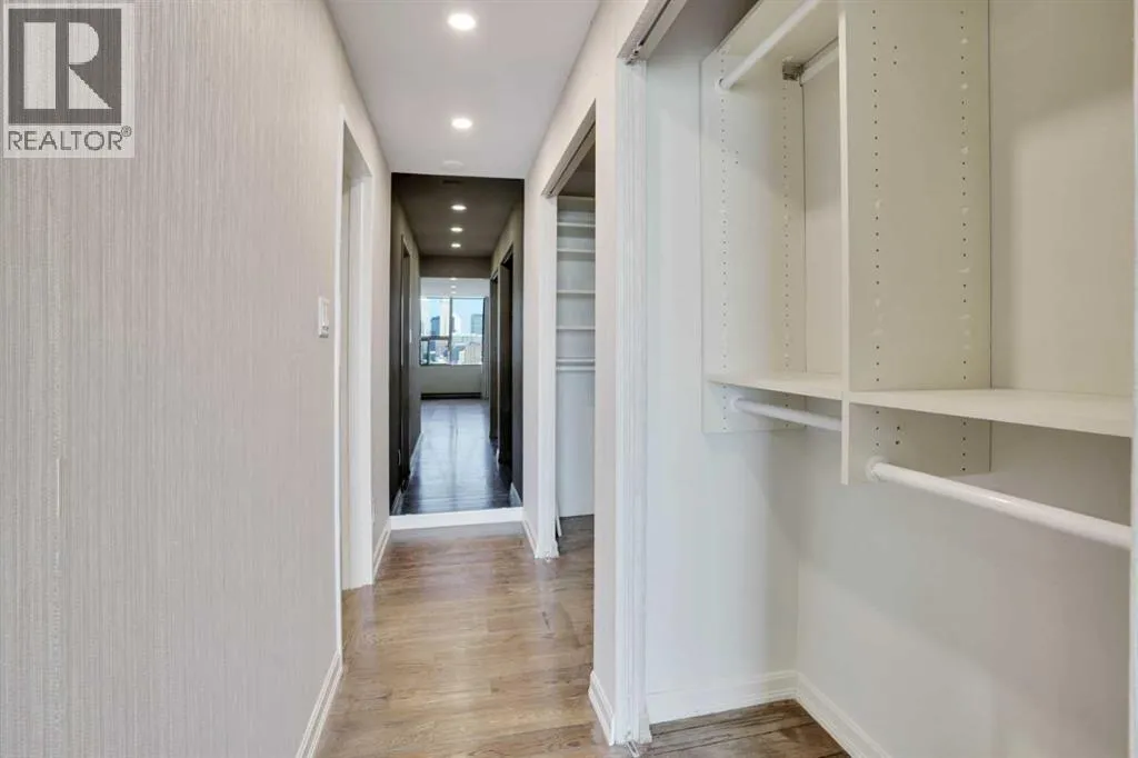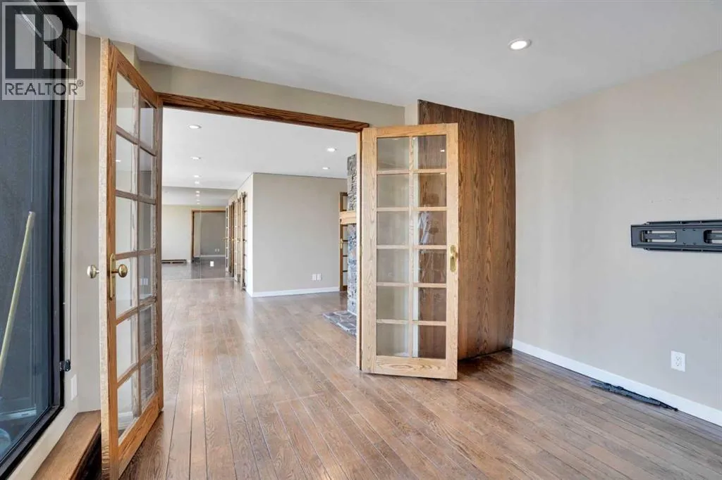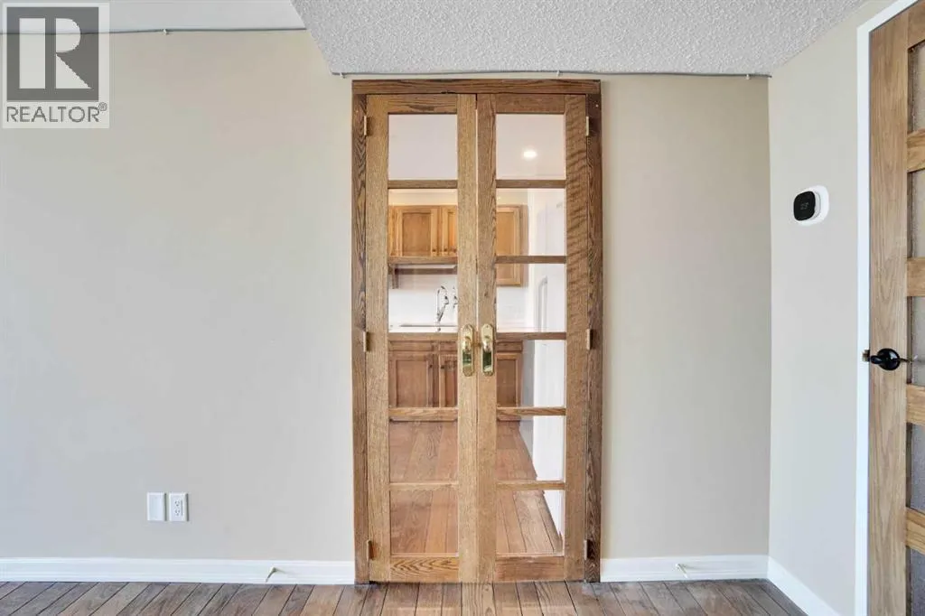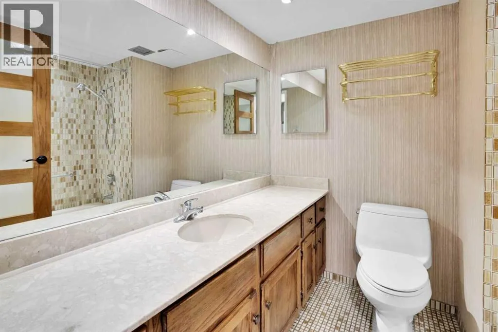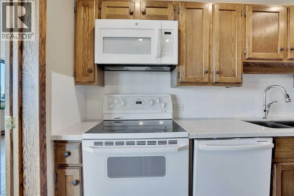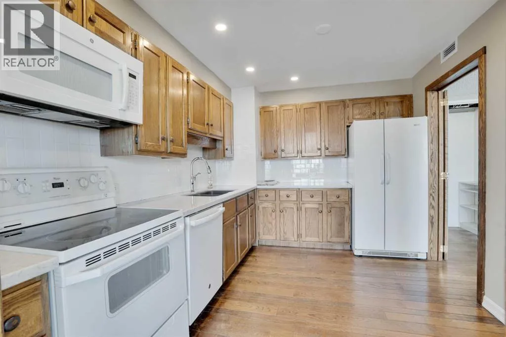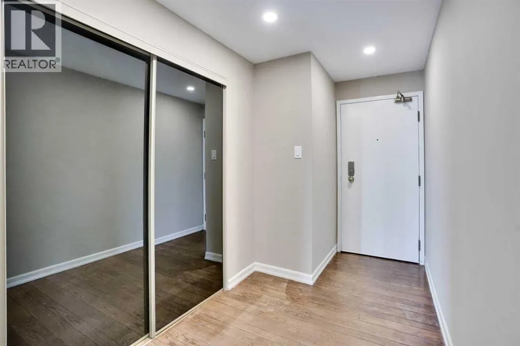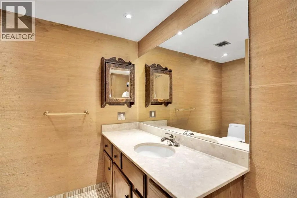 ROXBORO HOUSE sub-penthouse suite with STUNNING unobstructed city view and wood burning fireplace. Distinguished building on Elbow River and mature pathways, easy access to full complement of international restaurants and boutiques along delightfully vibrant Fourth Street. For the energetic, you can even walk downtown. Very well kept and maintained 1 bedroom plus den (den is large enough to be a second bedroom), 2 bathroom condo. The kitchen has been updated and is equipped with newer appliances and countertops. The living room boasts an incredibly beautiful stone fireplace and sides onto the dining area. Yes, it's wood-burning, a feature that will be VERY cozy as the winter rolls in. The covered balcony can be accessed from the living room and offers jaw-dropping downtown views. Fireworks from the Calgary Stampede can be enjoyed from this vantage without the crowds! It's like your own personal light show. The large primary bedroom can easily accommodate a king size bed and additional furniture, and offers custom built-in closets with abundant shelving as well as a 4 piece ensuite. The den is currently being used as an office, but is spacious enough to be set up as a second bedroom. The second bathroom just down the hall has a convenient laundry area with full size washer and dryer. A large storage room has built-in shelving, and is in addition to the storage locker that is located in the basement level. Telus fibreoptics are accessed, out of the way, in the upper corner of the storage room. Oak hardwood flooring throughout this incredible condominium...just take a look at the pictures. The building amenities have recently been updated including the indoor pool, gym, and 4th floor sun deck. Roxboro House has a concierge, security, care taker and offers other great amenities such as a workshop, social room and GUEST SUITE on main floor. There is even a special room to lock up your bicycle. Underground assigned indoor parking stall round out the value in this fabulous condo. The lifestyle fees include electricity, heat, water, sewer, garbage/recycling, professional management, insurance, Realtors, please see agent remarks. (id:27476)