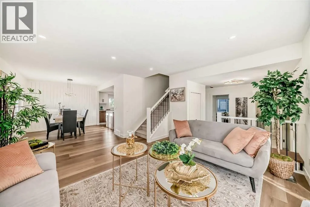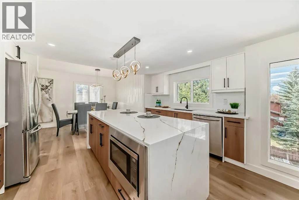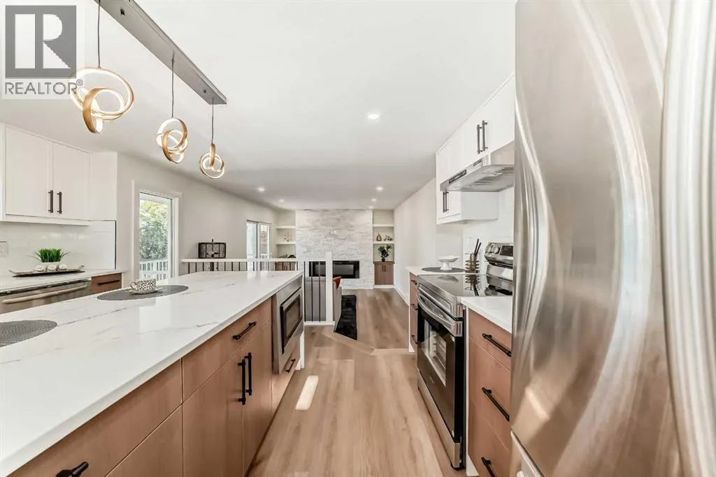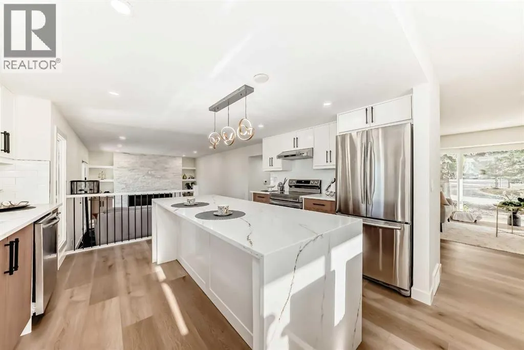 ** Open House: Tuesday, November 11th 3-5pm and Sunday, November 16th 1-3pm ** Welcome to 19 Ranch Estates â a newly renovated home in a charming, established neighbourhood that truly offers the best of both worlds. Enjoy quiet, tree-lined streets within walking distance to parks and corner stores, with easy access to main roads for a quick commute while still tucked away from the traffic.Inside, a complete renovation combines modern style with classic warmth. The main floor features a spacious kitchen with a large island and brand-new appliances, a cozy living room with a fireplace and balcony access, plus a bedroom, half bath, and a double attached garage.Upstairs, youâll find three bright bedrooms, including a generous primary suite with a private balcony, and beautifully updated ensuite. The two secondary bedrooms share a connecting balcony and a renovated full bathroom, making it a perfect setup for families.The fully finished walkout basement includes a separate entrance, an additional bedroom, a wet bar with bar fridge, and plenty of storage. Outside, enjoy mountain views, an apple tree, and a spacious backyard ideal for gardening or entertaining. (id:27476)
