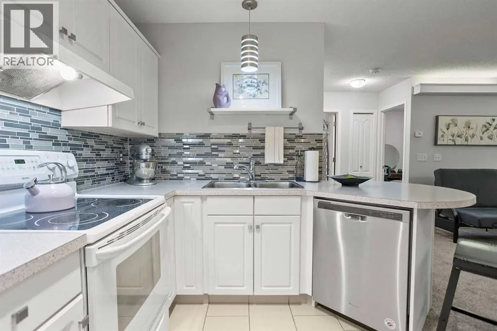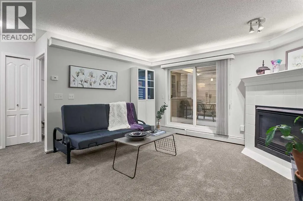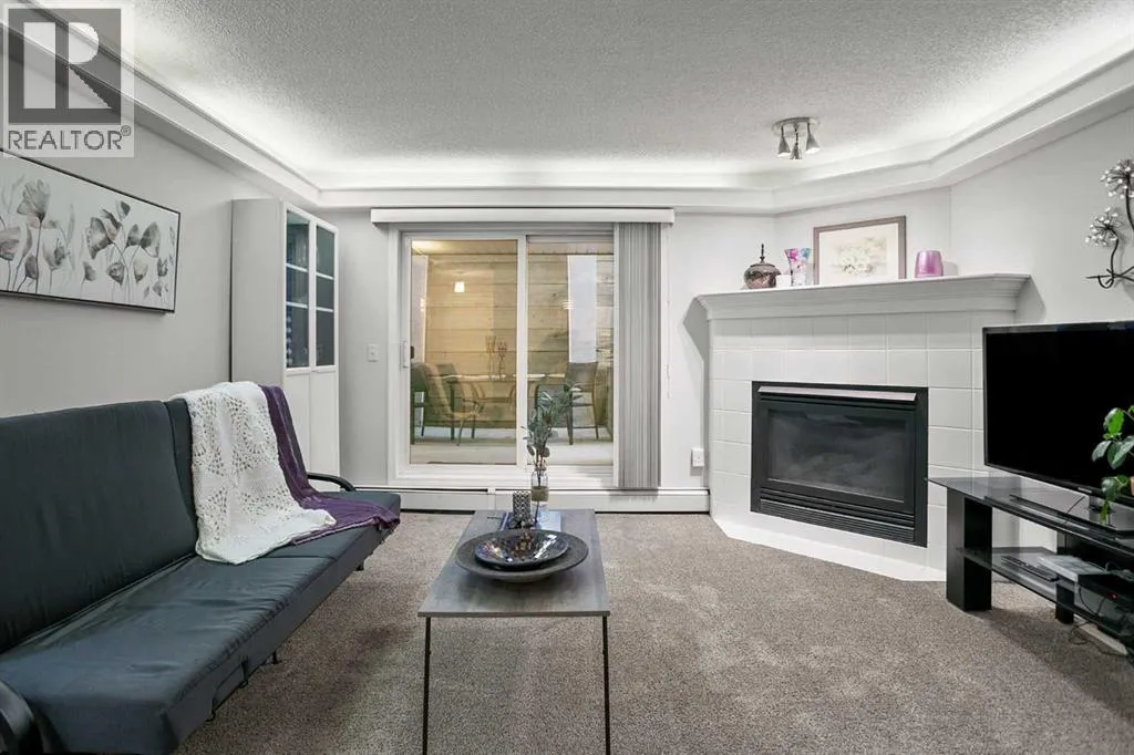 Price improvement! This inviting 2-bedroom, 2-bathroom main floor condo offers the perfect blend of comfort, functionality, and style. The thoughtful layout provides ideal separation between bedrooms, making it an excellent setup for roommates or guests. The spacious primary suite includes a walk-in closet and private ensuite, while the second bedroom is just steps from a full 3-piece bath. The bright white kitchen features a breakfast bar and plenty of storage, opening to a cozy living area with a corner gas fireplace that creates a warm and welcoming atmosphere. Step outside to your partially covered patio, which offers exceptional privacy, and an additional storage area. Youâll appreciate the convenience of in-suite laundry, a BBQ gas line, and a titled underground parking stall with visitor parking close by. Safety and ease are at the heart of this home, with a secure building, clean common areas, and quick access to the elevator. Beyond your door, youâll find everything you need for an active and connected lifestyle. Great schools, parks, sports fields, and pathways surround the area. You are within walking distance to Westhills and Signal Hill shopping and dining, and just moments from transit routes, the library, and major roadways for easy commuting. This is condo living at its best, offering comfort, connection, and peace of mind in one beautiful package. (id:27476)