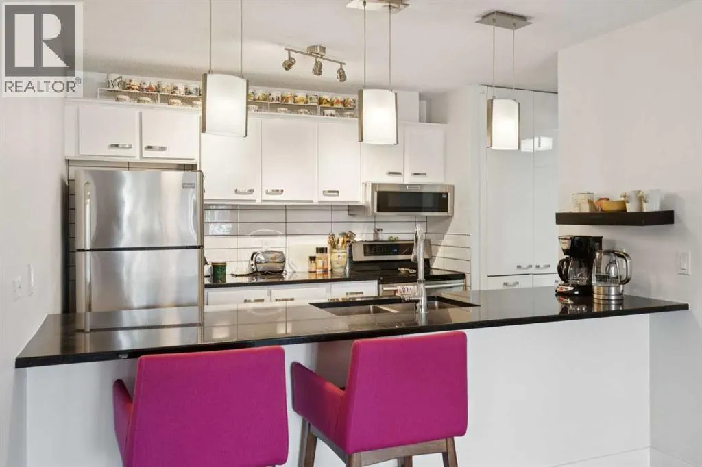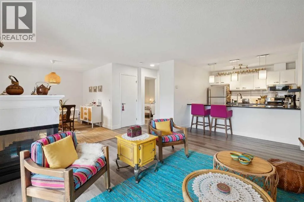Welcome to this bright, expansive two bedroom condo in the heart of Marda Loop. Outside your door, the neighborhood delivers coffee shops, local restaurants, fitness studios, boutique shopping, and everyday conveniences along 33 and 34 Avenue SW. Enjoy quick access to River Park and Sandy Beach with off leash paths and bike routes, plus easy transit and a short drive to downtown and Mount Royal University. Inside, the home has been thoughtfully updated in recent years with light fixtures, luxury vinyl plank flooring, fresh paint and stainless steel appliances. Generous living and dining rooms are ideal for entertaining and are separated by a triple sided gas fireplace. The kitchen opens to the living area and features high gloss white cabinetry, granite counters, and a built in pantry. Enjoy a private south facing balcony off the living room, plus a second south facing balcony off the primary bedroom. The spacious primary offers a full wall of built in shelving and an updated 3 piece ensuite. The second bedroom includes a large walk in closet with custom organizers and is served by a 4 piece bath. All closets include upgraded built ins for maximum storage. Prefer a flex space instead of two bedrooms? The layout easily accommodates a home office, library, or lounge. A large in suite laundry room with full size stacked machines adds everyday convenience. This boutique 7 unit, self managed building offers peace of mind. This is the only residence on the main level and it enjoys both front and back entrances for easy access and privacy. One assigned parking stall and a separate storage unit are included. Please note: 18+ building. Do not miss this opportunity. Book your viewing today. (id:27476)