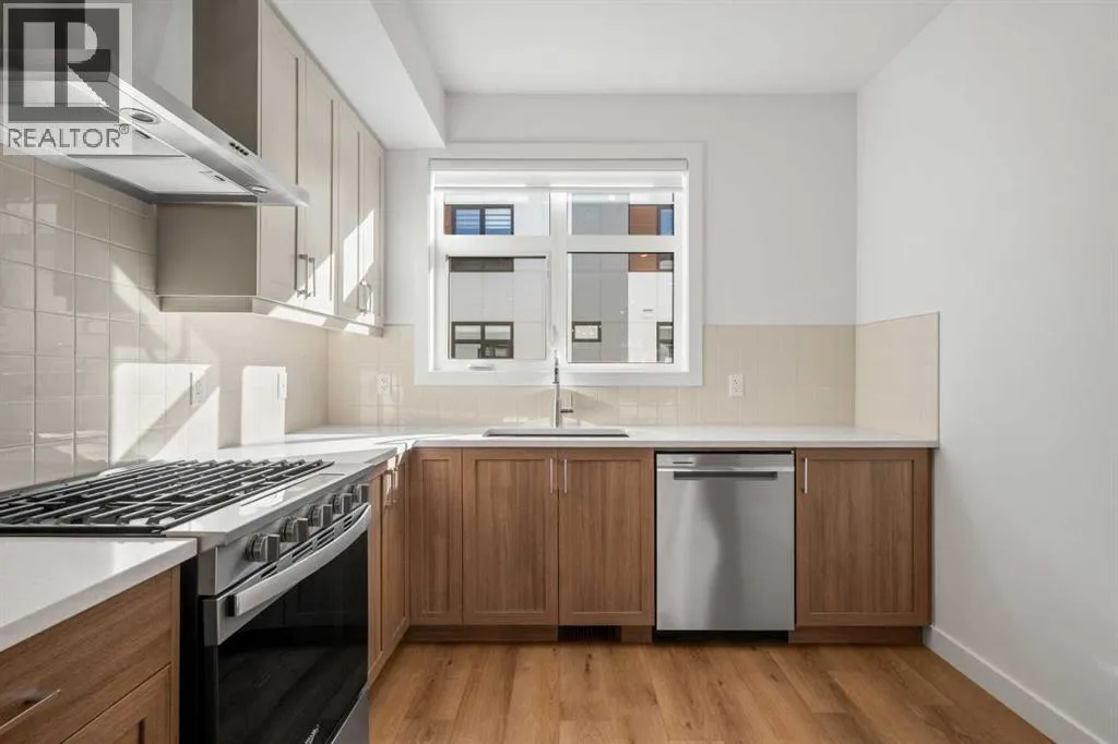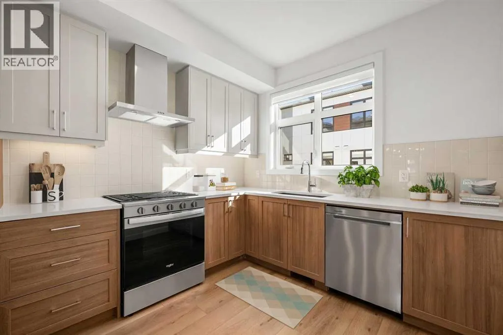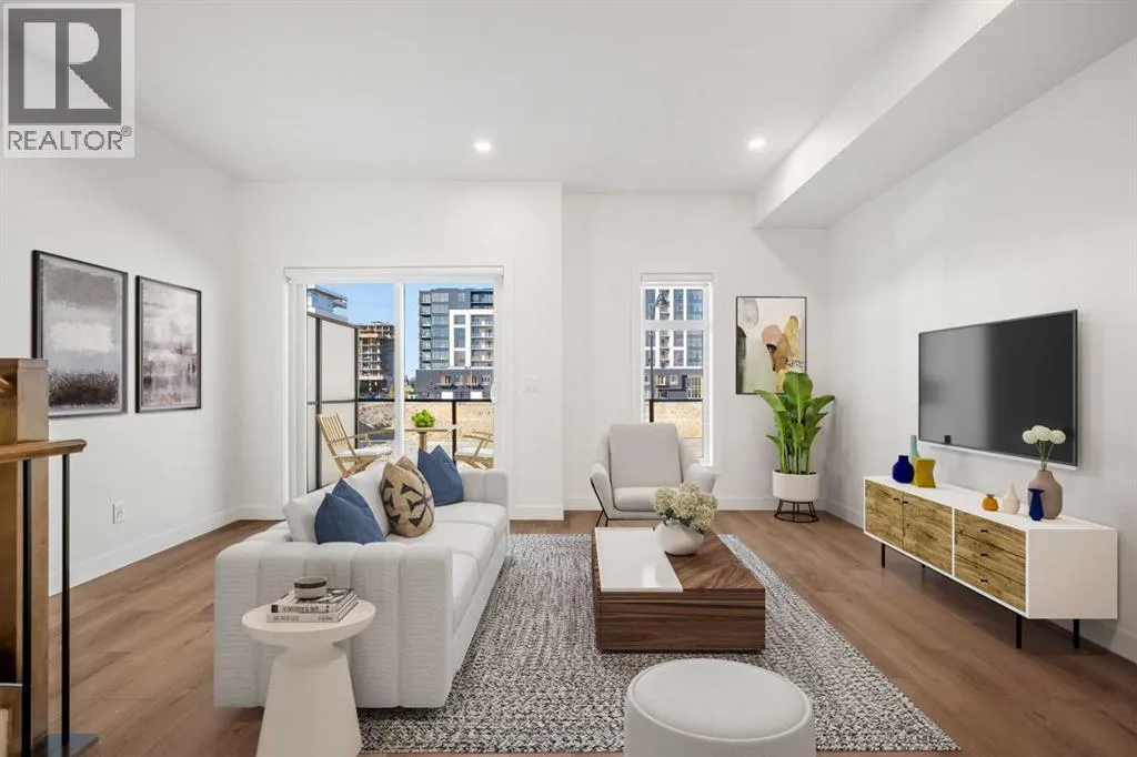***Open House Saturday from 12:30pm to 4:30pm*** Welcome to 8331 8 Avenue SW, an exceptional Granville model townhome offering over 1,360 sq ft of contemporary living in the highly sought-after West 83 community. Designed with a perfect balance of comfort, sophistication, and functionality, this residence showcases a modern Spanish Modern colour palette and an open, light-filled layout ideal for todayâs lifestyle.The entry level features a closed flex roomâa versatile space perfect for a private home office, workout room, or cozy media lounge. Upstairs, the bright and airy main floor welcomes you with an expansive open-concept layout, elevated by upgraded cabinetry, sleek quartz countertops, and a gas line to the deck, ideal for outdoor grilling and entertaining. The kitchenâs contemporary design blends clean lines and premium finishes, complemented by upgraded four flush-mounted LED lights in the great room that create a warm, inviting ambiance.Both the kitchen and bathrooms feature enhanced cabinetry for a refined touch, while zebra blinds throughout add modern style and practical light control. A/C rough-ins provide easy future installation for year-round comfort. The thoughtful floor plan maximizes functionality and flow, offering space for both relaxing and entertaining in equal measure.Upstairs, the home offers two well-appointed bedrooms, each with access to their own full bathrooms for optimal privacy and convenience. The primary suite features a three-piece ensuite and dual walk-in closets, combining luxury and practicality.Ideally located just steps from Sobeys, Radio Park, restaurants, and boutique shops, West 83 provides a walkable, connected lifestyle. Youâre also only 15 minutes to downtown Calgary and about 45 minutes to the Rocky Mountains, making this the perfect home for those who crave both urban convenience and outdoor adventure.With its premium finishes, smart design, and unbeatable location, 8331 8 Avenue SW delivers a low-maintenance life style without compromiseâperfect for professionals, couples, or anyone seeking modern west-side living at its finest. Includes Alberta New Home Warranty. (id:27476)