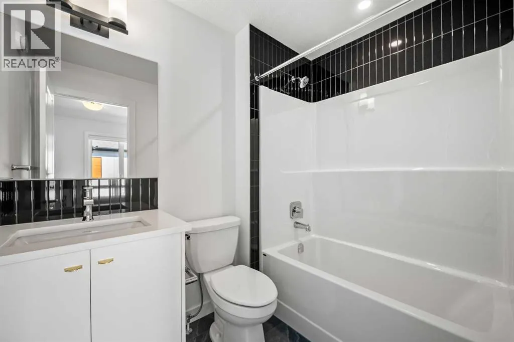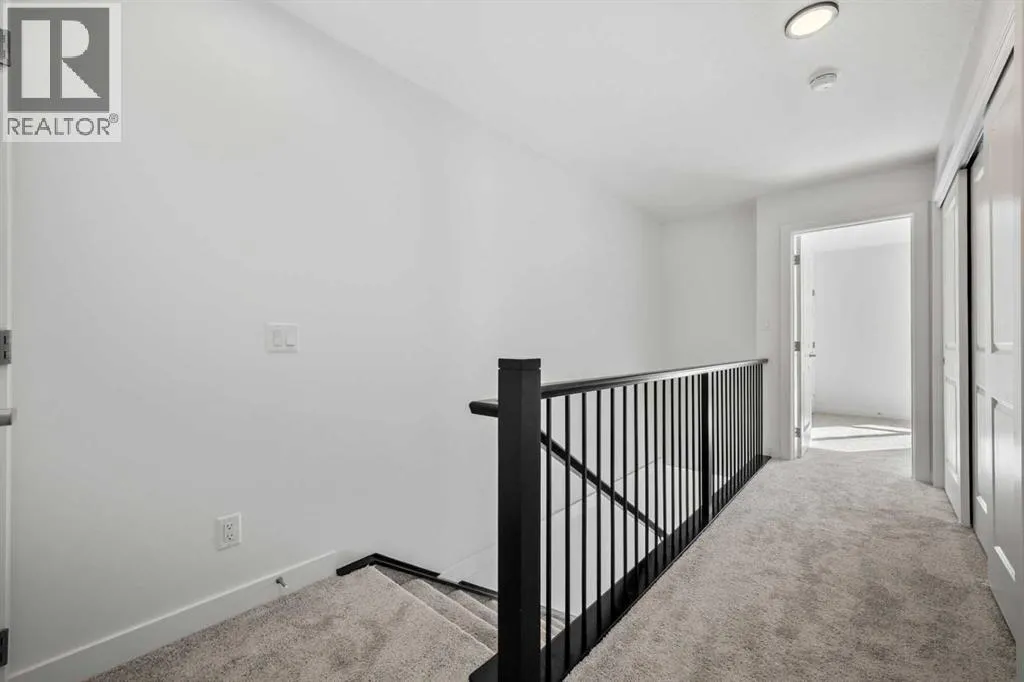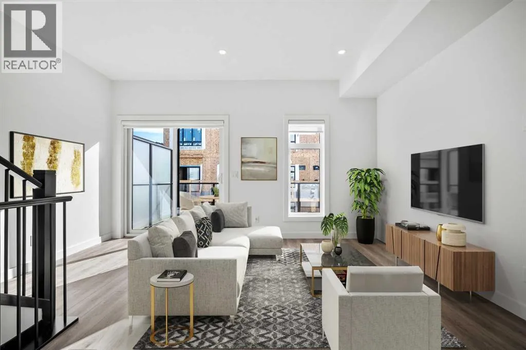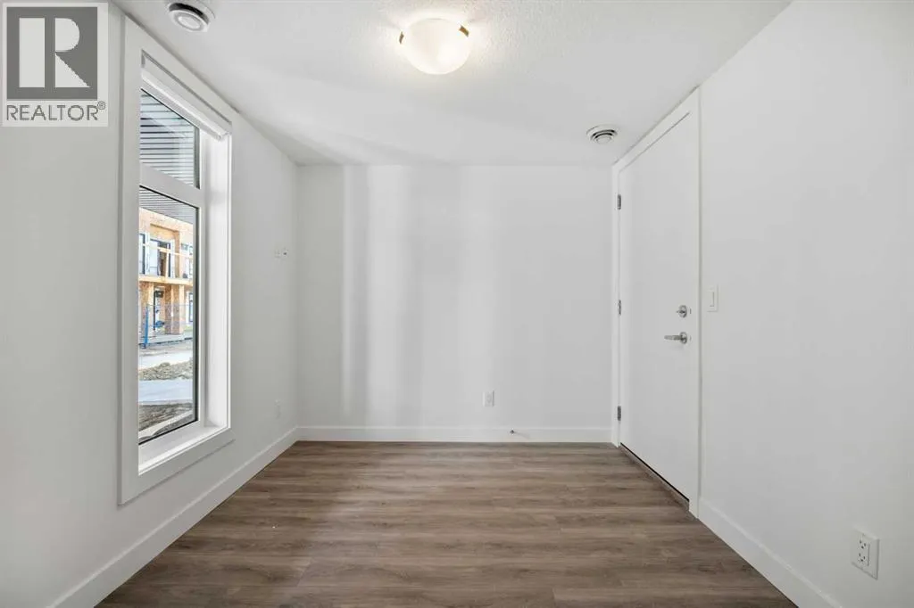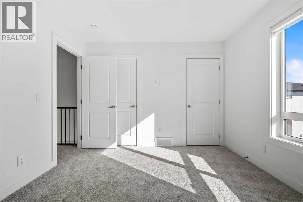 ***Open House from 12:30pm to 4:30pm, Stop by Showhome for Access*** Welcome to The Emerson at West 83, a beautifully designed townhome offering the perfect blend of modern comfort, elegant design, and unbeatable location. With over 1,400 sq ft of thoughtfully crafted living space, this home delivers both style and function in one of Calgaryâs most sought-after west-side communities. Ideally situated near parks, schools, dining, shopping, and transit, and just 15 minutes to downtown and 45 minutes to the Rocky Mountains, this property offers an exceptional lifestyle for professionals, couples, or small families.The bright, open-concept main floor welcomes you with an abundance of natural light and upgraded finishes throughout. The modern two-tone kitchen cabinetry creates a striking contrast, complemented by a gas range stove and quartz countertops. The adjoining great room features four upgraded flush-mounted LED lights for enhanced brightness and ambiance, while the 16-foot wide deck extends your living space outdoorsâideal for morning coffee or evening barbecues.The entry level offers a dedicated office space, perfectly suited for remote work or a quiet study area. On the upper floor, youâll find a dual ensuite bedroom layoutâeach bedroom complete with its own bathroom for optimal comfort and privacy. The primary suite showcases a three-piece ensuite and dual walk-in closets, providing both luxury and practicality. Additional features include zebra blinds for stylish light control, A/C rough-ins for year-round comfort, and contemporary finishes that elevate the homeâs modern aesthetic.The Emersonâs intelligent floor plan maximizes every inch of space, with thoughtful touches that make daily living easy and enjoyable. From its bright interiors and functional layout to its proximity to west Calgaryâs best amenities, this home captures the essence of convenient, connected living. Enjoy nearby pathways and parks, trendy local cafes, top-rated schools, and effortle ss access to major routes, making both city life and mountain getaways within easy reach.Whether youâre a first-time buyer, young professional, or investor seeking a low-maintenance home in a vibrant community, 116 â 8235 8 Avenue SW offers an incredible opportunity to own in West Springsâ West 83 developmentâwhere modern design meets everyday livability. Includes Alberta New Home Warranty. (id:27476)
