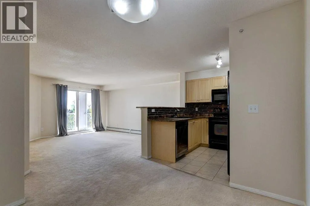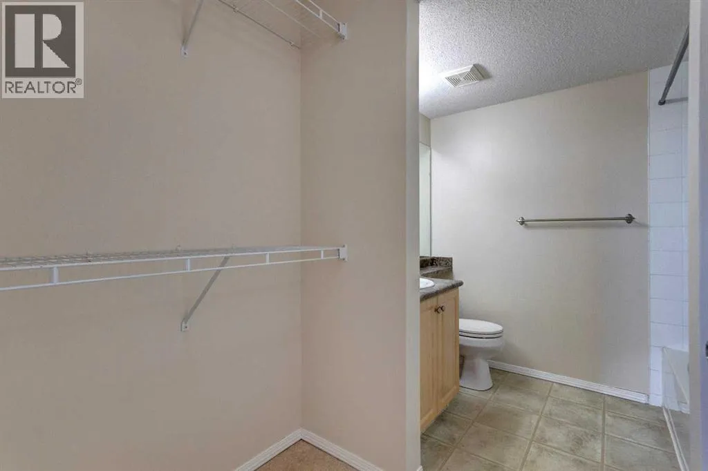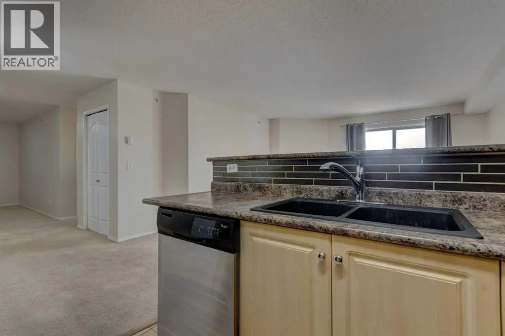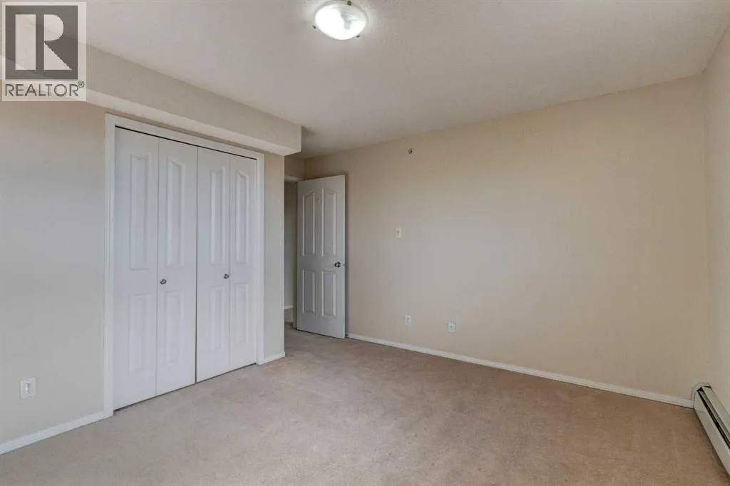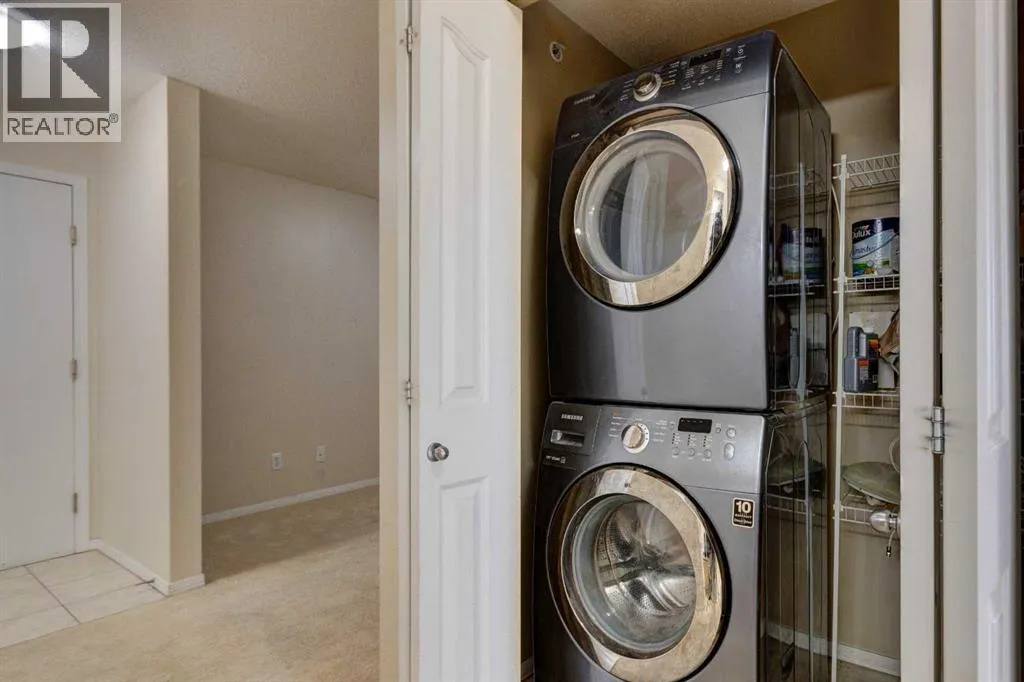 This top floor (nobody upstairs from you is a true bonus) 2 bedroom, 2 bathroom unit features an additional room that could be used for a home office, child's play area, man cave, home gym, library or whatever you wish, At over 1050 sq ft, itâs the largest floorplan in the complex. Both bedrooms are a good size so a guest room, roommate or childâs room are all possibilities. The in suite laundry is full size front loaders! Youâll love the balcony, overlooking the community below and thereâs even a mountain view to enjoy while sipping your morning coffee, a glass of wine before dinner, or a Saturday afternoon beer with a friend. A titled underground parking space is so welcome in winter and summer, for comfort and security, and the long term leased spot above ground is near the entrance and is very handy for a large vehicle and especially handy for a second vehicle. Easy access to Stoney or Deerfoot for commuting purposes and lots of shopping, restaurants and amenities are so close! The entire unit is Freshly painted and your Condo fees include all utilities for easy budgeting. This unit is move- in ready or easy to rent out as an income property if you prefer. Cats are welcome in the building (id:27476)