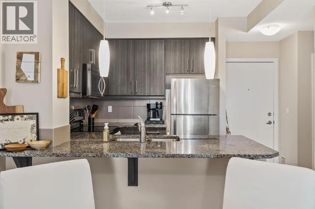 Step into this beautifully designed 2-bedroom, 1-bathroom condo, perfectly situated in one of Calgaryâs most sought-after lake communities â Mahogany. Offering a seamless blend of modern comfort and inviting charm, this home is the perfect backdrop for first-time buyers, down sizers, or savvy investors. As you enter, youâre greeted by an open-concept layout, with large sliding patio doors framing serene views of the lush community surroundings. The contemporary kitchen features sleek granite countertops, stainless steel appliances, and a generous breakfast bar â ideal for morning coffees, casual meals, or hosting intimate gatherings. The living area flows effortlessly onto a private balcony, where you can unwind with a glass of wine or take in the evening sunset. Both bedrooms are thoughtfully positioned for privacy, with the primary bedroom offering ample closet space, with a walkthrough closet that opens up to the 4-piece bathroom that is elegantly appointed with modern fixtures and tub, perfect for relaxing after a long day. Additional conveniences include in-suite laundry, titled underground parking and access to building amenities including a fitness centre, designed for comfort and community.But the real magic lies just outside your door â Mahoganyâs iconic 63-acre freshwater lake, private beaches, and an extensive network of walking paths and parks are only steps away. Indulge in summer paddle boarding, winter skating, or year-round strolls through beautifully landscaped green spaces. Enjoy quick access to Mahoganyâs vibrant Urban Village with local shops, restaurants, cafés, and all your day-to-day essentials. Whether youâre embracing lakeside living for the first time or looking for a fresh start in one of Calgaryâs most vibrant communities, this is the place to call home. Come discover where modern comfort meets effortless lifestyle. (id:27476)