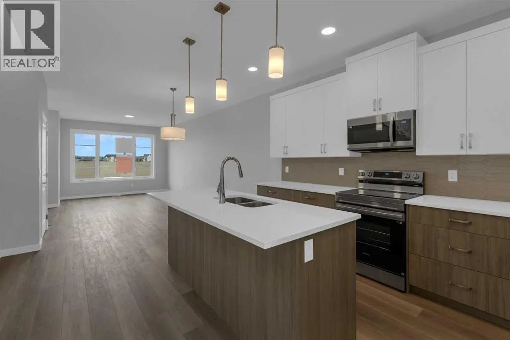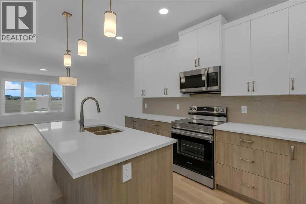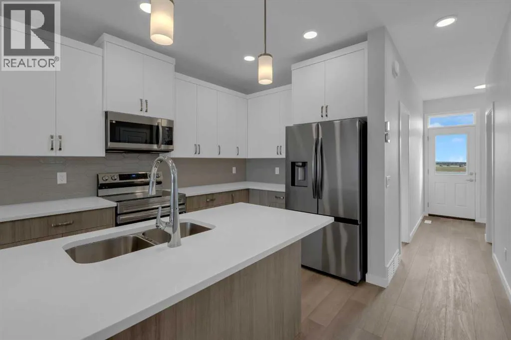 4 BEDROOMS ABOVE GRADE, WALK OUT BASEMENT that is roughed in for LEGAL 2 BEDROOM SUITE ( w/city permits and approvals). Introducing the COHEN: an amazing, BRAND NEW attached home by EXCEL HOMES offering 1735 SF above grade of upgraded luxury! Nestled in the vibrant Northwest community of Carrington. Step into a life of luxury and convenience with this stunning residence, where every detail has been meticulously crafted for comfort and style. Enjoy the benefits of living in an established neighborhood that brings a plethora of amenities right to your doorstep, along with swift access to major highways. Enjoy the local pathways, environmental reserve - central pergola & seating areas and mixed level playground w/basketball court, skate park & more.! The COHEN offers a sprawling 1735 square feet of thoughtfully designed living space, perfect for both families and entertaining. The open floor plan, complemented by neutral designer tones, creates a welcoming atmosphere that is both elegant and comfortable. The chef-quality kitchen stands as the heart of the home, equipped with an abundance of cabinets, pot/pan drawers, and upgraded stainless steel appliances. The expansive engineered stone countertops, a large island with seating, and a convenient pantry make it a dream kitchen for those who love to cook and entertain. The main floor also features versatile luxury vinyl plank flooring. Uniquely ON THE MAIN FLOOR, you'll find a BEDROOM & FULL 4 PCE BATHROOM. Ascend to the second level where leisure meets luxury in the large central bonus room with vaulted ceilings â ideal for movie nights and family gatherings. The primary bedroom is a true retreat, boasting a walk-in closet and a spa-like ensuite with stone vanity tops. Additionally, two more generously sized bedrooms provide ample space and easy access to the main bathroom. The convenience continues with a laundry room (w/folding counter), strategically located on the same floor. The possibilities extend into the undeve loped WALKOUT basement that has separate ENTRY & ROUGH IN'S FOR 2 BEDROOM LEGAL SUITE (with city permits & approvals)... the utilities are tucked away for easy development. You'll find a pressure treated deck w/aluminum railings accessible from your kitchen! This home includes a 20 x 20 gravel parking pad and sod to the front & backyard. Don't miss the chance to own this never-lived-in gem with quick possession available. Experience the blend of luxury, comfort, and convenience in Livingstonâwelcome to your new dream home at the COHEN. (id:27476)