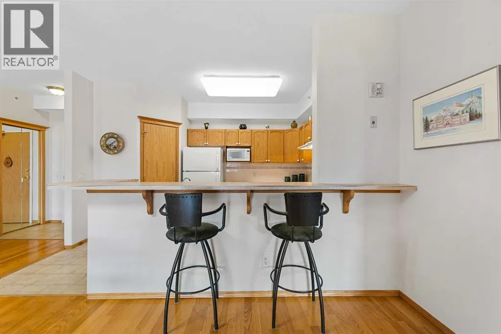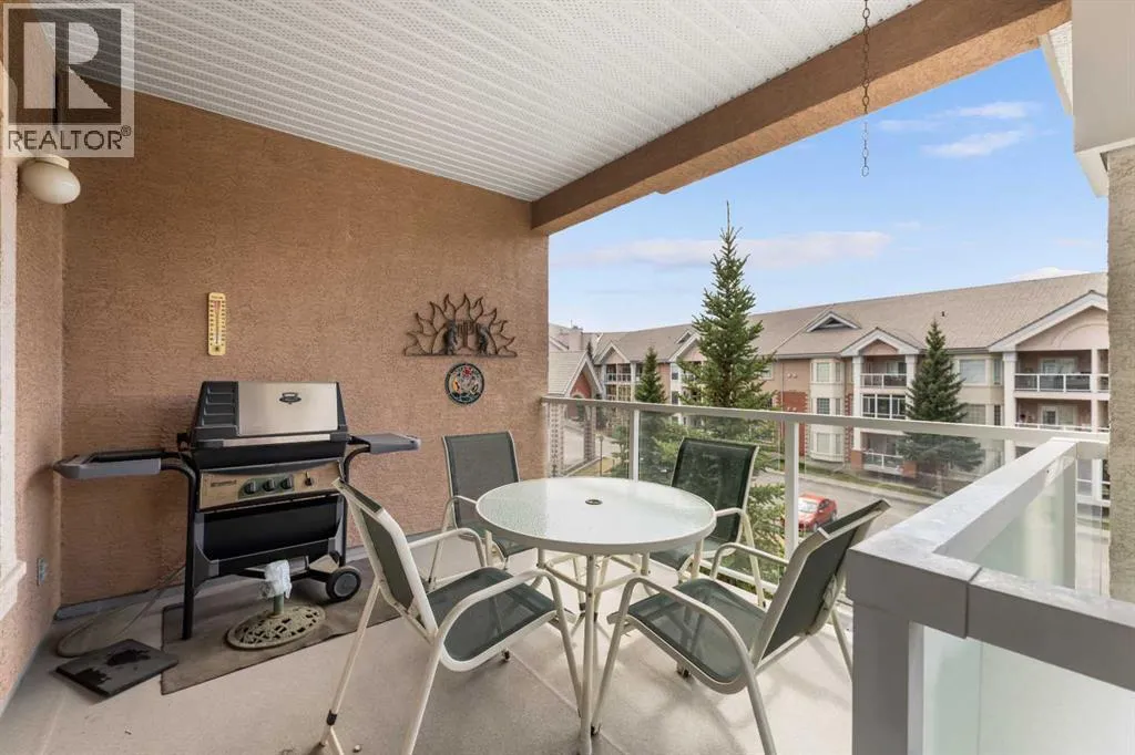 Welcome to The Sierraâs Of TuscanyThis prestigious complex, designed for active 40+ adults offers resort style amenities and a vibrant social calendar!This top floor, beautifully maintained, spacious unit boasts an open-concept main living area with large windows, a gas fireplace and beautiful hardwood floors. The primary retreat offers a walk in closet and comfortable ensuite while French doors opening into a nice sized secondary bedroom or flex space. In suite laundry, a full second bathroom and extra storage in the unit add to the comfort and functionality of this home. Step outside onto your private balcony, which has been upgraded with a sprinkler system to expedite enclosure installation, should you wish to pursue a three season sunroom in the future. With underground, heated and secure parking with even more additional storage for your seasonal items helps ensure your lifestyle here is simplified and stress free. The desirable complex is situated in close proximity to the Tuscany LRT station and boasts an abundance of amenities on site including an indoor salt water pool, bowling alley, movie theatre, billiards, an arts & crafts room, a woodworking studio, car wash, ballThis functional layout has been lovingly maintained by original owners and offers a sizeable primary bedroom. Beyond the private ensuite is a large walk in closet.Through the French doors off the living room, a generous secondary bedroom may serve as a creative home office workspace. Youâll appreciate the in-suite laundry room large enough to offer extra storage space as well as an additional 3 piece main bathroom.Beyond the living room, the outdoor patio space has been proactively outfitted with a sprinkler system. This upgrade allows a future development possibility of glass enclosure conversion to a three season sun room. The entire unit is build for comfort in a complex designed to cater to mature, active adults.Secure underground, heated parking will keep your vehicle safe and warm through the colder months and is equipped with a convenient car wash bay, while a storage unit keeps all your seasonal goods securely tucked away while still being easily accessible. The Sierra's of Tuscany is a phenomenal 40+ adult living community featuring an abundance of resort-style amenities including an indoor pool, hot tub, billiards room, a library, gym, movie theatre, bowling alley, woodworking and arts and crafts room. The Panorama Room and ballroom can facilitate large social events while guest suites are available to rent to accommodate your out of town visitors. With a robust social and events calendar, this complex fosters a strong adult community and although you wonât want to leave; for moments when you must, transport is a breeze with quick access to Crowchild and Stoney Trail & the Tuscany LRT Station located just across the road.These generously-sized 2 bedroom units are seldom offered in this amazing complex so call your favourite realtor to book a showing today! (id:27476)