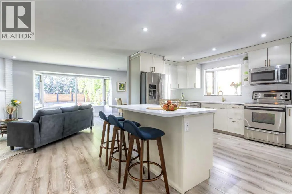 Step into this beautifully updated, oversized walkout bungalow, where natural light fills every corner of the open concept main floor. The spacious, sun-drenched living and dining areas flow seamlessly into a modern white kitchen featuring stainless steel appliances, a generous island perfect for entertaining, and plenty of storage. Whether youâre hosting dinner parties or enjoying quiet family mornings, this bright and inviting space makes every moment feel special. The cozy living room offers a charming wood-burning fireplace and a large bay window overlooking the mature front yard, the perfect spot to unwind. Downstairs, the fully finished completely renovated walkout basement is a true bonus, complete with a separate entrance, a large bedroom with double closets and an egress window, a full bathroom, and a welcoming family room with a gas fireplace and built-in wall unit. Youâll also find a dedicated laundry room, huge storage area, and direct access to the garage. Outside, the private, low-maintenance backyard is designed for easy enjoyment, featuring a firepit, shed, mature landscaping and private courtyard. Perfectly located just steps from a park, playground and pathways, this turnkey home offers comfort, flexibility, and lasting value, ideal for families, investors, or anyone looking for a beautifully updated home on a quiet tree-lined street in a the well-established community of Cedarbrae. (id:27476)