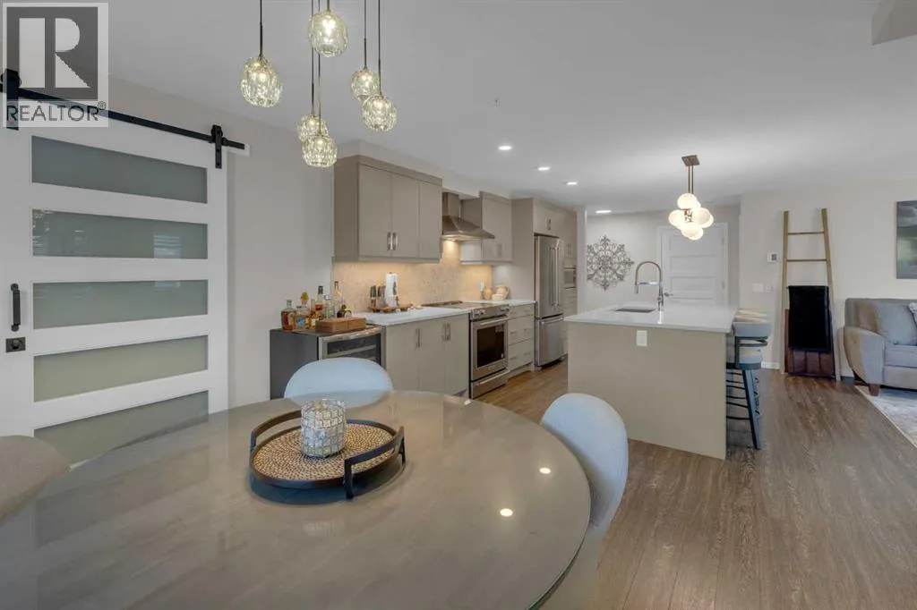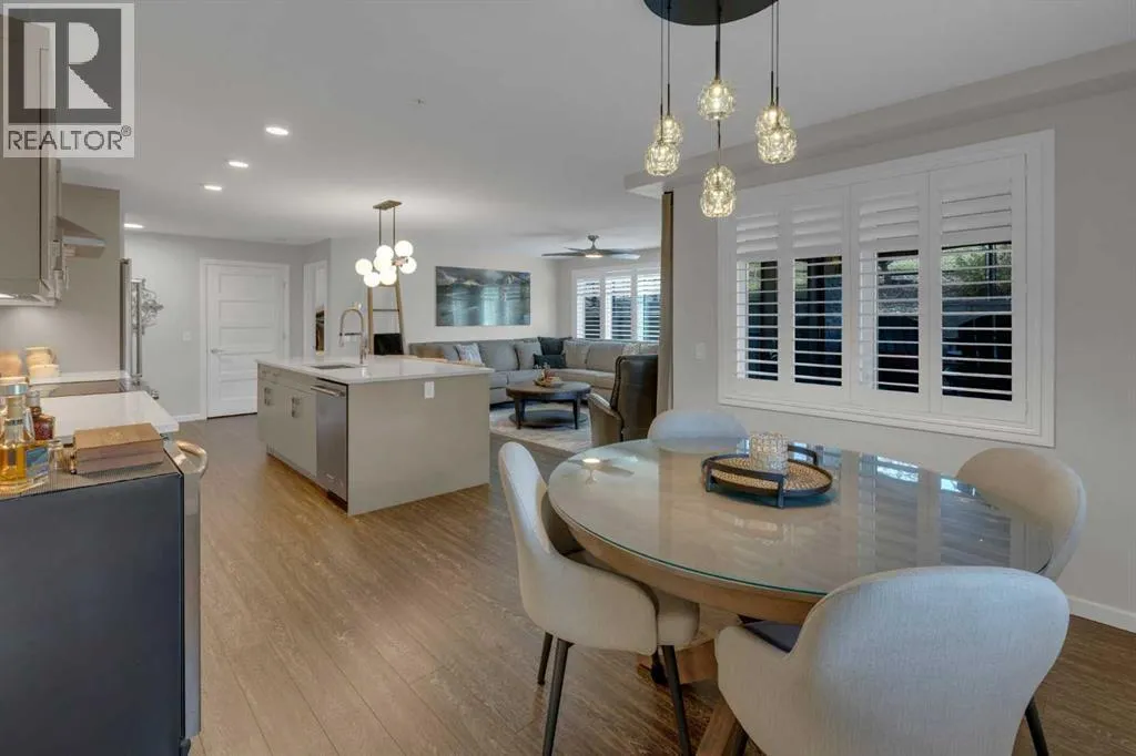 Welcome to The Pinnacle at Kincora â a boutique, meticulously crafted condo complex by Cove Properties, one of Calgaryâs most trusted and award-winning multifamily developers celebrated for their commitment to quality and design excellence.Tucked away in one of Kincoraâs most peaceful pockets, this elegant 2-bedroom plus den (or office), 2-bath residence offers the perfect blend of comfort, style, and functionality â all within walking distance to scenic parks, pathways, and convenient shopping.Boasting 1,156 sq. ft. of single-level living, this spacious and beautifully upgraded home features quartz countertops, designer tile, LVP flooring, and elegant fixtures and finishes throughout. The high-end KitchenAid stainless-steel appliances remain under extended warranty and are complemented by a chef-style hood fan and a bright, modern aesthetic highlighted by brand-new upgraded lighting from Cartwright ($2500).Enjoy year-round comfort with a portable A/C unit, and unwind in style with new custom shutters and drapes ($10,000) framing every window for added privacy and sophistication.Unlike many condos, this home includes two titled underground heated parking stalls ($25,000 each) plus bike storage, offering convenience and flexibility for owners. Step outside to your private covered patio with a gate to walk outside ($800)â the perfect spot to relax after a long day and enjoy your own quiet outdoor retreat with a gas line for your bar-b-q.Unit 3109, a former show suite until just three years ago, has been meticulously maintained and lightly lived in. It showcases painted warm beige cabinetry and a bright, inviting atmosphere throughout. Situated in a secure, maintenance-free, 18+ building, The Pinnacle at Kincora delivers a rare combination of luxury, peace of mind, and effortless living. Pets are allowed upon board approval.Donât miss your opportunity to make this remarkable home yours â contact your Realtor today to book a private viewing! (id:27476)