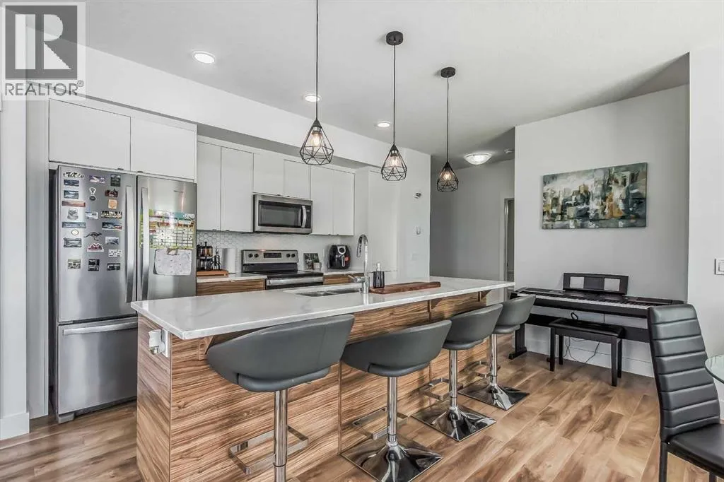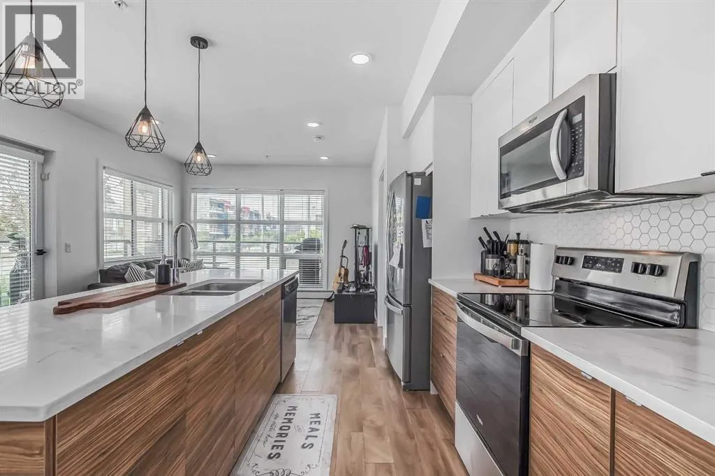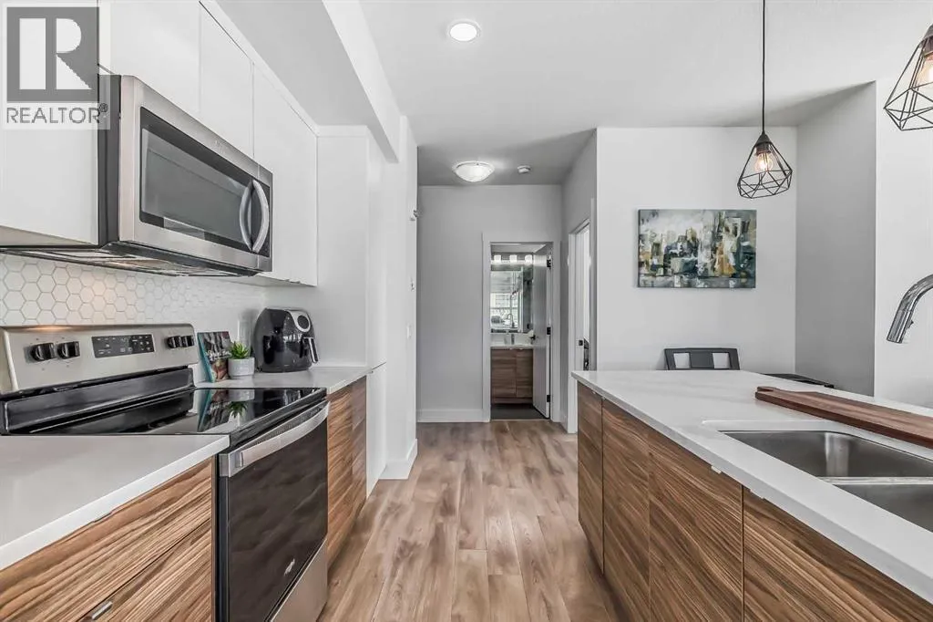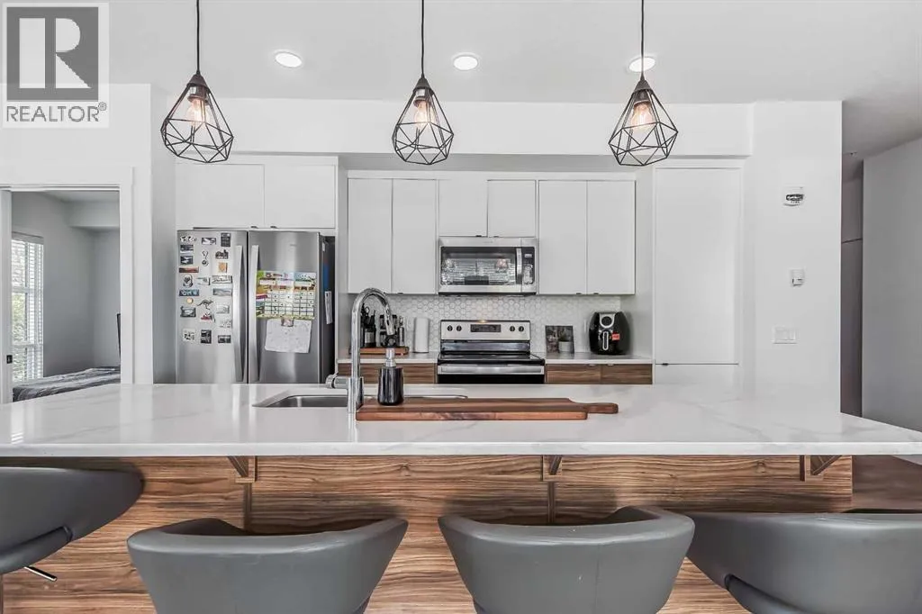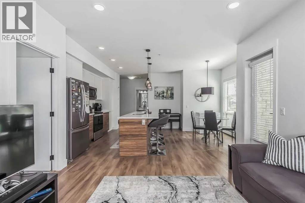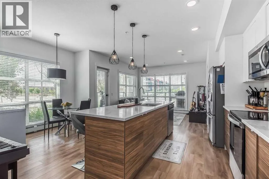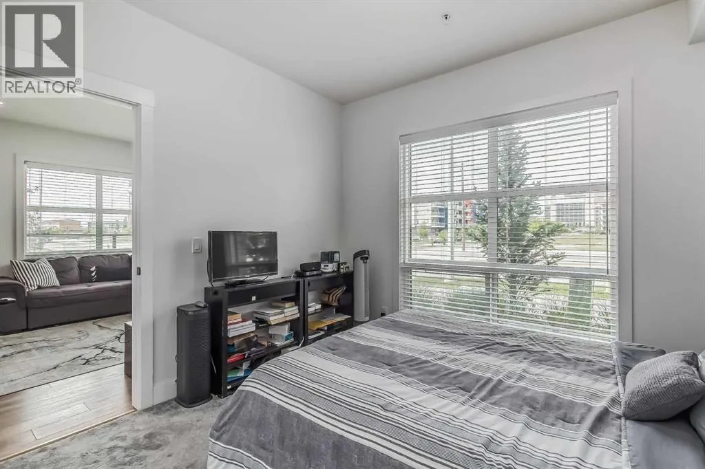 Welcome to this stunning end-unit ground floor apartment featuring 9-foot ceilings in the vibrant community of Seton. Perfectly situated in a premium location, this home offers breathtaking mountain views to the West and peaceful park views to the North.Inside, youâll find wall-to-wall windows that fill the space with natural light, creating an inviting and airy atmosphere. The open and functional floor plan showcases a modern kitchen with a large peninsula breakfast bar island, quartz countertops, stainless steel appliances, and full-height cabinetry. The spacious living room and generous dining area are ideal for entertaining friends and family. The primary suite features a large window, a walk-in closet, and a luxurious ensuite complete with dual vanities, a soaker tub, and a stand-up shower with full-height tile. A well-sized second bedroom is complemented by a convenient 4-piece cheater ensuite, perfect for guests or family.This condo also comes with two titled underground secured parking stalls and a separate titled storage unit, ensuring all your parking and storage needs are met.Seton is one of Calgaryâs fastest-growing communities, offering endless amenities including a VIP Cineplex theatre, public library, South Health Campus, the worldâs largest YMCA, shopping, dining, schools, and easy access to Stoney Trail and Deerfoot Trail. Donât miss out on this rare opportunity book your private showing today! (id:27476)