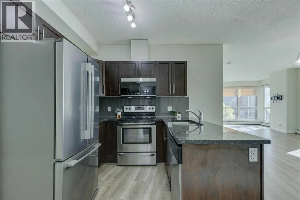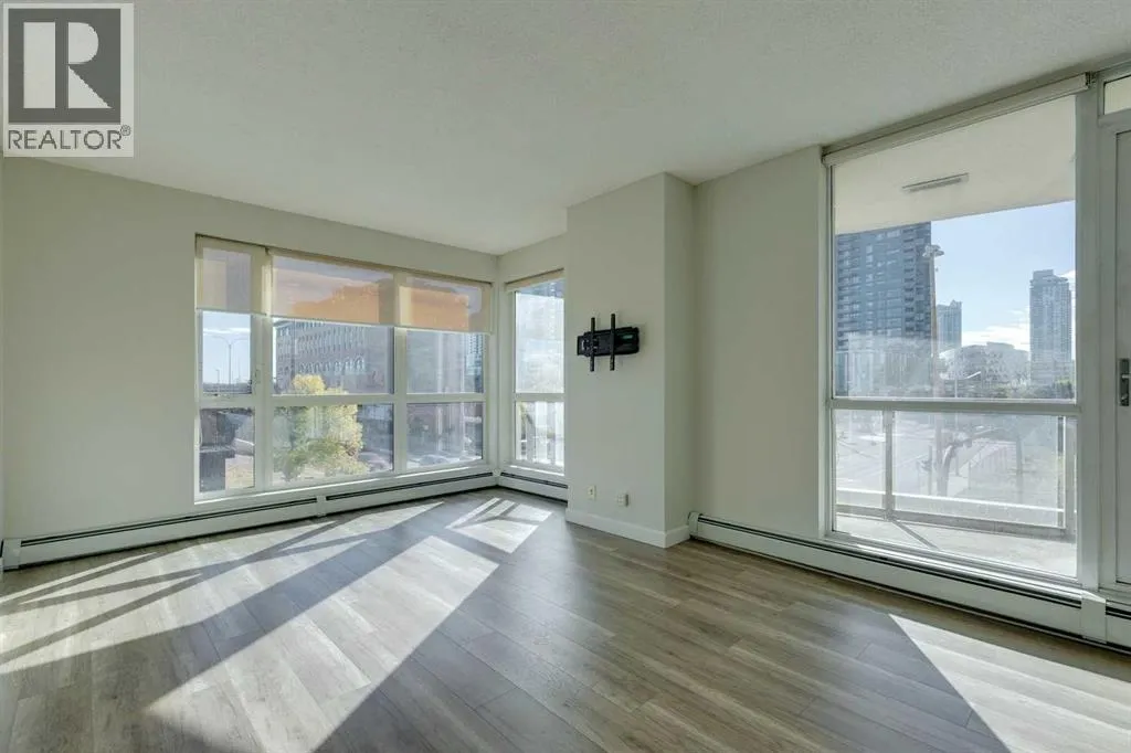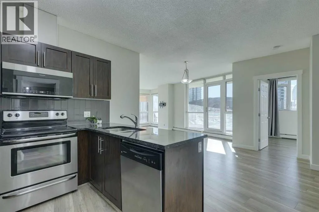 Welcome to a fantastic 2-bed, 2-bath + Den at Riverfront Pointe that actually gets how you want to live. Located in the vibrant East Village, this unit is all about space, smart design, and spontaneous adventure. With over 900 SF, this isn't your average condo box. The bedrooms are placed on opposite sides of the unitâperfect for actual privacy, whether you have a roommate, a partner, or just like your quiet space. Plus, you get an additional area that's ready to handle your home office, Peloton, or whatever passion project youâre currently obsessed with.The entire unit features newer laminate flooring with NO carpet for a modern look and easy cleaning. The central kitchen with its granite counters and updated appliances is perfectly set up for that quick bite before you hit the river path or hosting friends before going to the flames game or a concert.9' ceilings and more windows than walls in the living room keep things bright and open. Step outside and you're instantly connected to the Bow River pathways, Studio Bell, the Central Library, and all the best spots in East Village. Don't forget about the Saddledome and the NEW arena and entertainment district that is already underway. C train, Art Commons, Prince's Island and soo many other places to mention, means you can walk almost everywhere, but don't worry about your car feeling neglected. This unit comes with TWO titled parking spots that are secure and heated. You've also got a gym, concierge and 24hr security.Combine all this with immediate possession available, this unit is easy to show and ready to go! (id:27476)