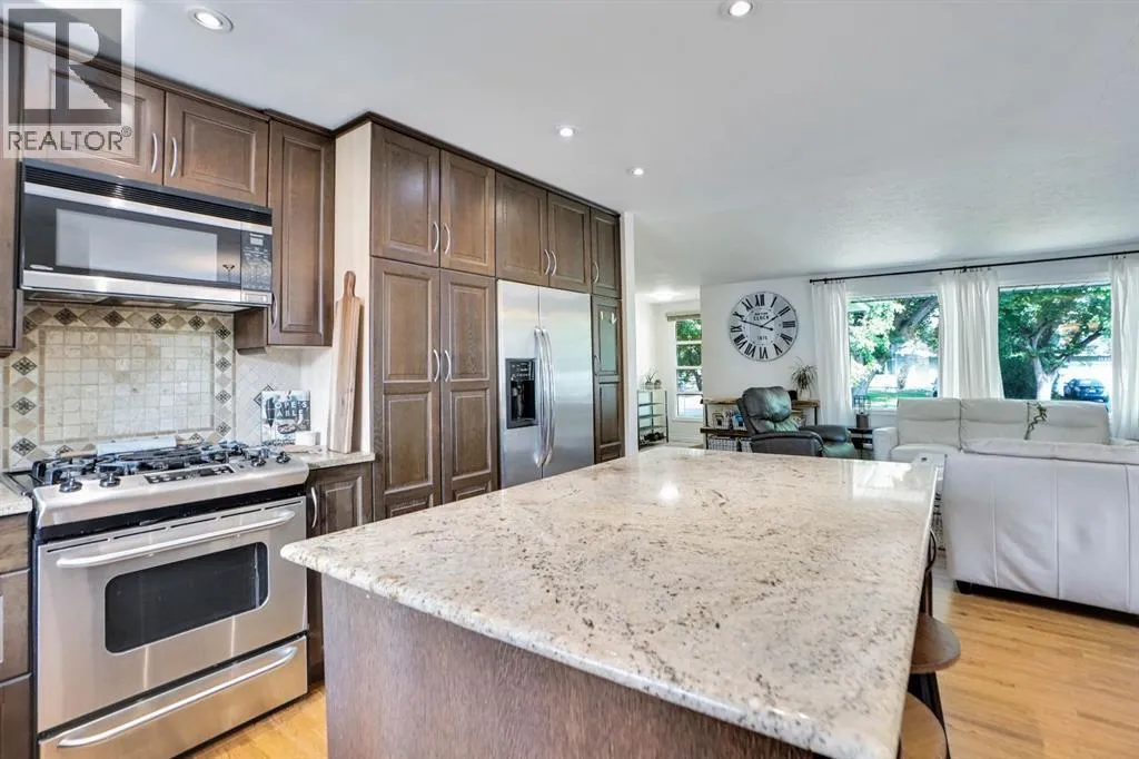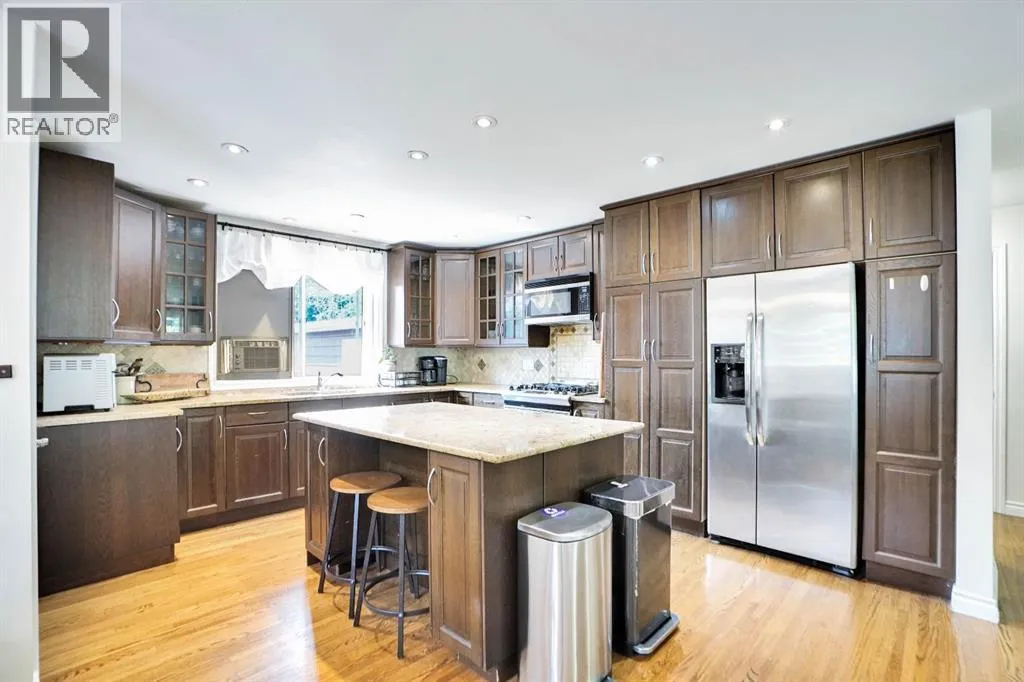 Discover the perfect balance of classic charm and modern potential in the heart of Brentwood. Offering over 2,540 sq. ft. of total living space, this bungalow is designed for both family living and future opportunity.The main floor features three comfortable bedrooms and two full bathrooms, including a main bath with a relaxing Jacuzzi tub. The bright kitchen blends function and warmth with marble counters, a gas range, stainless steel appliances, and upgraded oak cabinetry accented by soft-close glass doors. Hardwood floors flow through the living spaces, while convenient main-floor laundry rough-ins add modern practicality.The lower level extends your options with two additional bedrooms, a full bath, wet bar, and wine cooler, all accessible through a separate entrance. This space is ideal for extended family, entertaining, or future suite development (A secondary suite would be subject to approval and permitting by the city/municipality), which Brentwood is well known for.Outside, you will find an oversized double detached garage, ample street parking, and a generous south-facing backyard that enjoys plenty of sun throughout the day. A private deck connects directly to the garage, creating the perfect flow for BBQs, summer gatherings, and family fun. With ample room for swings, a trampoline, or gardens, this yard is designed for both play and relaxation.Set in Brentwood, one of Calgaryâs most desirable neighbourhoods, this home is just minutes from top-rated schools, parks, the University of Calgary, and North Hill Shopping Centre. Families will love the comfort and space, while investors will appreciate the strong rental potential and long-term value that Brentwood consistently delivers.A rare opportunity to own a property that offers space, lifestyle, and location all in one. (id:27476)