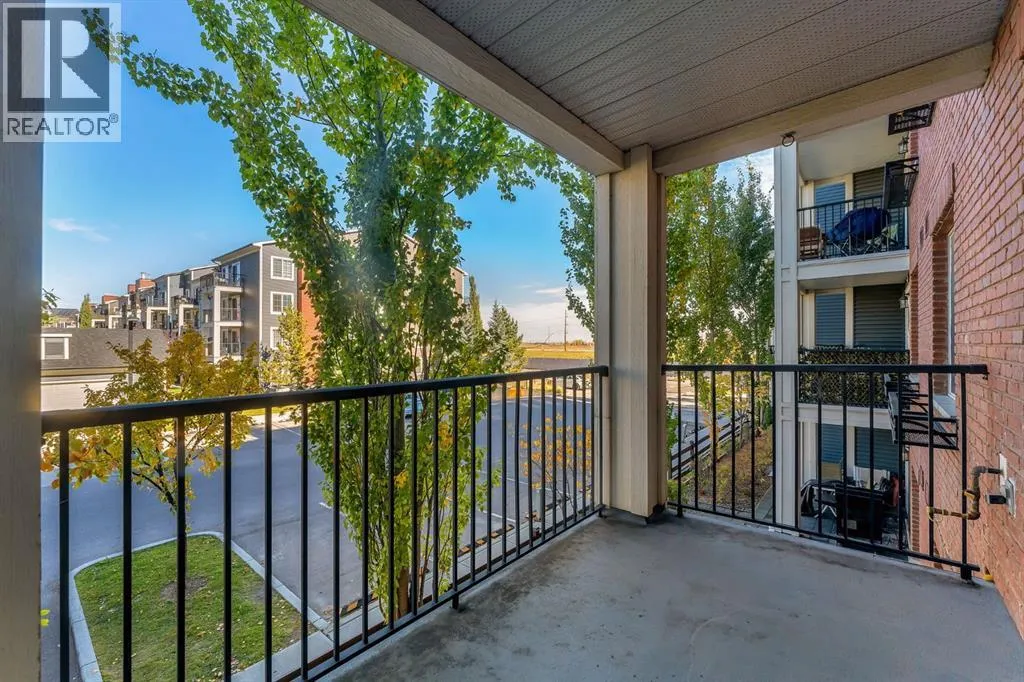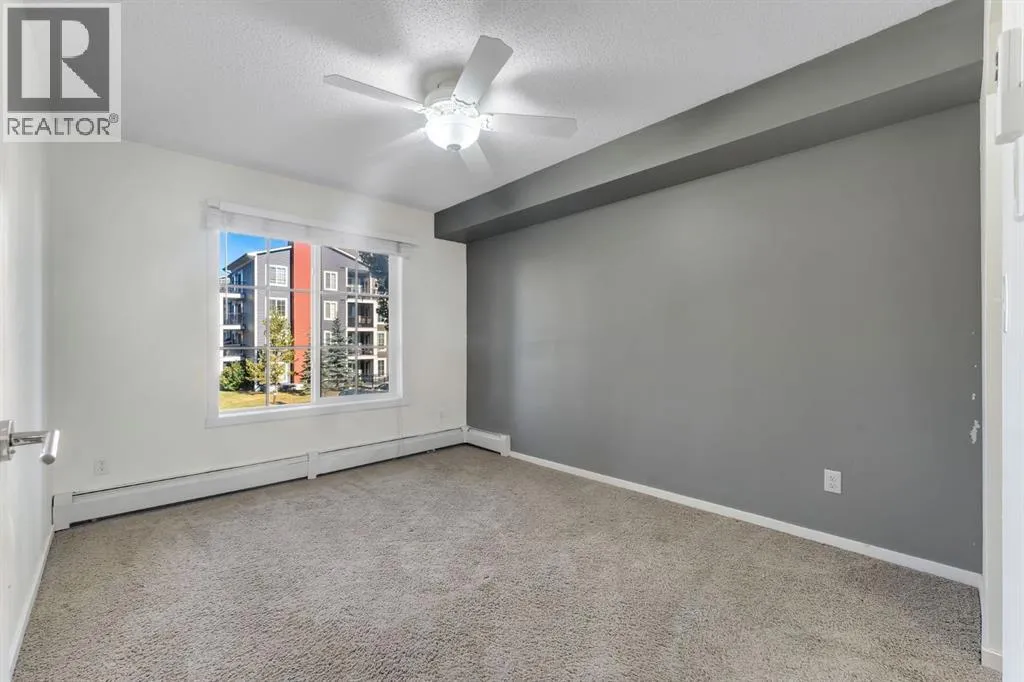 Welcome to 1211-755 Copperpond Boulevard SE. This bright condo located on the second floor, features 2 spacious bedrooms, 2 bathrooms each with its own 4-piece ensuite bath, separated by a bright living room for privacy and functionality. The open-concept layout includes a modern kitchen, dining area, and in-suite laundry with stacking washer/dryer. Includes titled, heated UNDERGROUND parking and a convenient storage locker directly infront. Located close to walking paths, a pond, grocery stores/shopping, future schools, with ample visitor parking available. Ideal for families seeking comfort and convenience in a prime location. Book your viewing today and move in next week as the unit is VACANT! (id:27476)