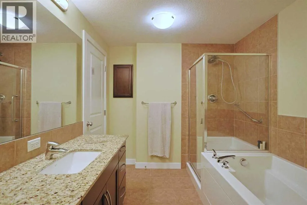 Available for quick possession is this fantastic 2 bedroom condo in Statesmanâs THE GROVES OF VARSITY, located on the 6th floor of the MONTEREY ONE tower of this exclusive concrete & steel project in Varsity. Bathed in warm & sunny natural light, this wonderful home enjoys engineered hardwood floors & high ceilings throughout, 2 full bathrooms, titled underground parking stall & dynamite residents' amenities including fitness centre & rooftop terrace. With its sunny South-facing exposure, youâll just love the open concept design with its great-sized living & dining rooms, sunroom/office with an expanse of windows & maple kitchen with granite counters & Whirlpool stainless steel appliances. The 2 bedrooms are tucked away from the rest of the condo giving you that added privacy; the primary bedroom has a walk-in closet & soaker tub ensuite with separate shower. Convenient insuite laundry/storage room with Whirlpool stacking washer & dryer. Additional features include unit-controlled heating & central air, roller blinds & assigned separate storage locker in the parkade. Monthly condo fees cover your heat & water-sewer, as well as giving you access to the world-class amenitiesâ¦fitness centre & steam rooms, meeting room & wraparound rooftop terrace with views of the mountains, Canada Olympic Park & Nose Hill Park. There is an onsite medical centre with pharmacy & walk-in clinic. The best in maintenance-free living here in this premier location in one of Northwest Calgaryâs most desirable communities, walking distance to Dalhousie Station shopping & LRT, only a few short minutes to the University of Calgary & University District, hospitals (Foothills Medical Centre, Alberta Children's & Arthur J.E. Child Cancer Centre), Bowmont Park, major retail centers, highly-rated schools & downtown. (id:27476)