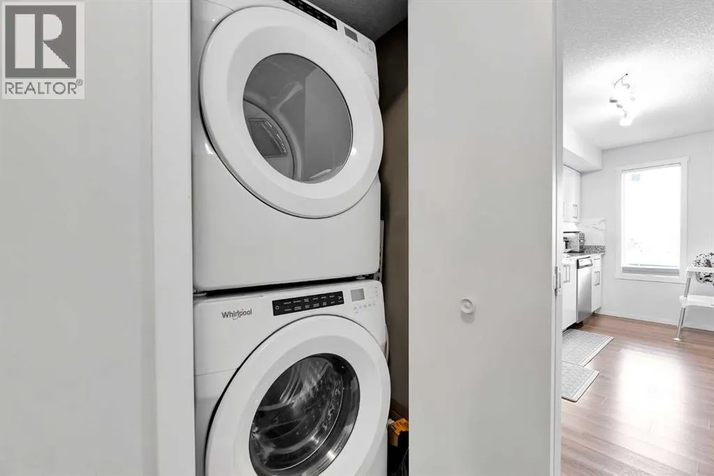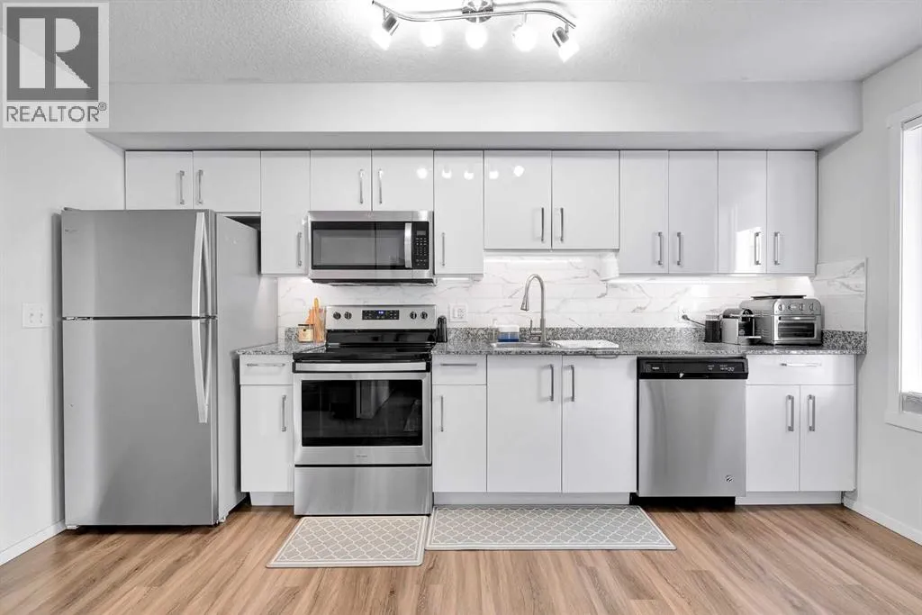 Welcome to this stylish and efficient 2-bedroom, 1-bath condo in the vibrant Skyview Ranch community. Located on the second floor, this bright unit features upgraded luxury vinyl plank floors (2023) throughout and open concept living creating an airy, flexible layout perfect for singles, couples, or investors. Enjoy your north-facing balcony, ideal for morning coffee or evening relaxation. The kitchen opens to the living area, maximizing natural light and functionality in this well-designed space. This secure building offers underground heated parking, visitor parking, and fantastic amenities â including an on-site daycare (fee-based), fitness center, and common/party room. Upgrades throughout include fresh paint and a new washer (2023), new tile backsplash and undercabinet lighting (2023), granite counter tops in kitchen and washroom, soft close cabinets, and stainless-steel appliances. Conveniently located near schools, shopping, and major routes, this move-in-ready condo is a great opportunity to own in one of Calgaryâs growing communities! (id:27476)