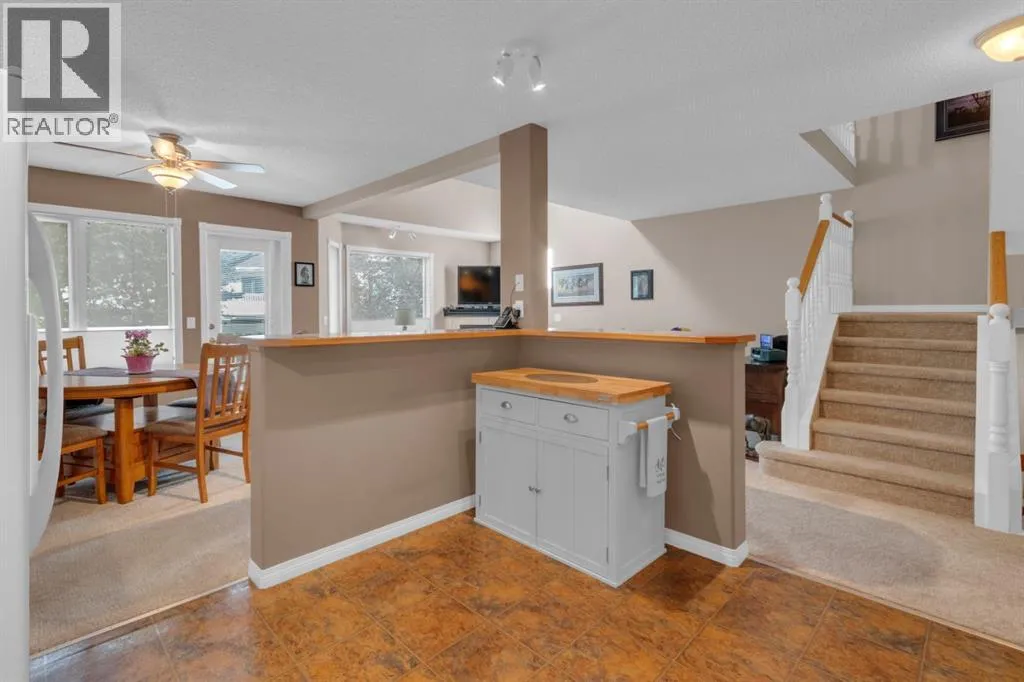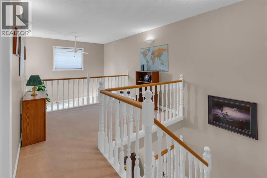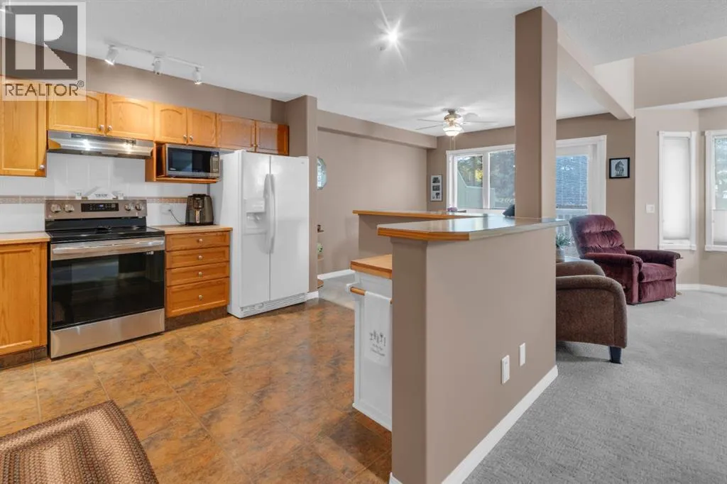 Welcome to this beautifully maintained two-bedroom condo townhome nestled on a quiet green space with a coveted double attached, insulated garage. As you approach from the front, you'll appreciate the clean curb appeal and the convenience of direct garage access into your home. Step through the front entry and into a bright, open-concept main level where upgraded carpet and underlay flow throughout, adding comfort and quality. The spacious living room is truly impressive with soaring 20-foot vaulted ceilings, a cozy gas fireplace, and large windows that flood the space with natural light. The kitchen has been thoughtfully updated with new cabinet doors and drawers, a convenient pantry for extra storage, and plenty of counter space, while the adjacent dining area overlooks the private green space beyond. The main-floor laundry and two-piece bathroom provide excellent convenience. Step outside through the patio doors onto your extended and permitted 12' x 9' back deck, complete with a gas line for your BBQâan ideal spot for entertaining or unwinding while enjoying the serene, treed backdrop.Upstairs, the home opens to a bright loft area with white spindle railings and warm wood accentsâa perfect reading nook or secondary workspace. Both generously sized bedrooms are located on this level, each with its own full en suite bathroom. The primary bedroom features beautiful vaulted ceilings and a luxurious five-piece en suite with double vanity, separate shower, and soaking tub. The second bedroom offers a well-appointed four-piece en suite. Hunter Douglas blinds dress most windows throughout the home, and nearly all windows have been replaced for improved efficiency (except the rear upstairs). Central air conditioning keeps you comfortable year-round. Below, the unfinished basement offers a blank canvas ready for your visionârec room, bedroom, bathroom, and plenty of room for storage. The well-maintained features new asphalt shingles, and the double attached, insulated garage includes a hose bib for added utility. As an extra, a water softener adds to the home's functionality. This turnkey, move-in ready home with its prime green-space location and thoughtful updates truly needs to be seen to be fully appreciated. Be sure to check out the virtual tour! (id:27476)