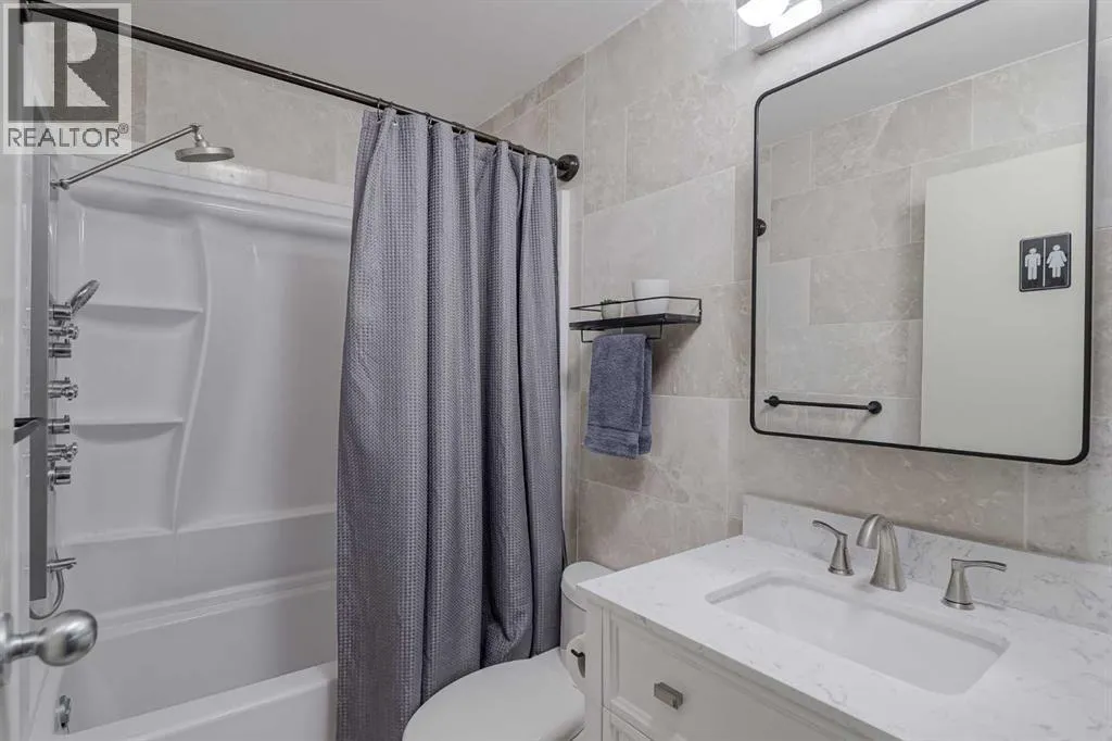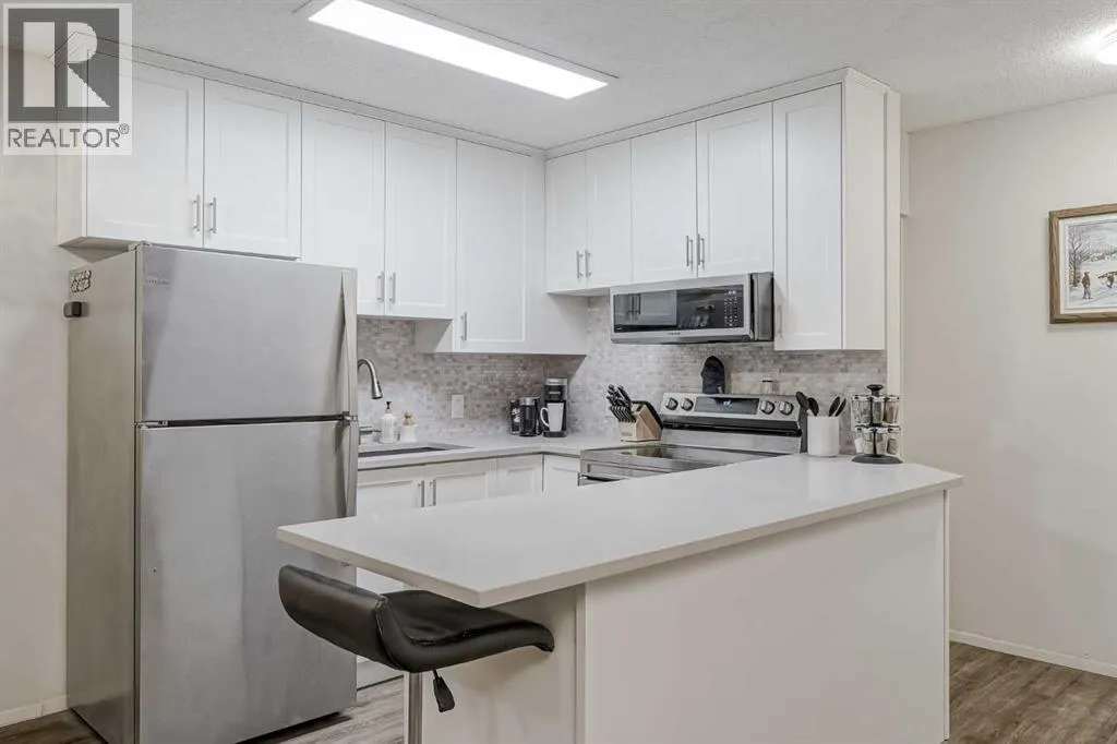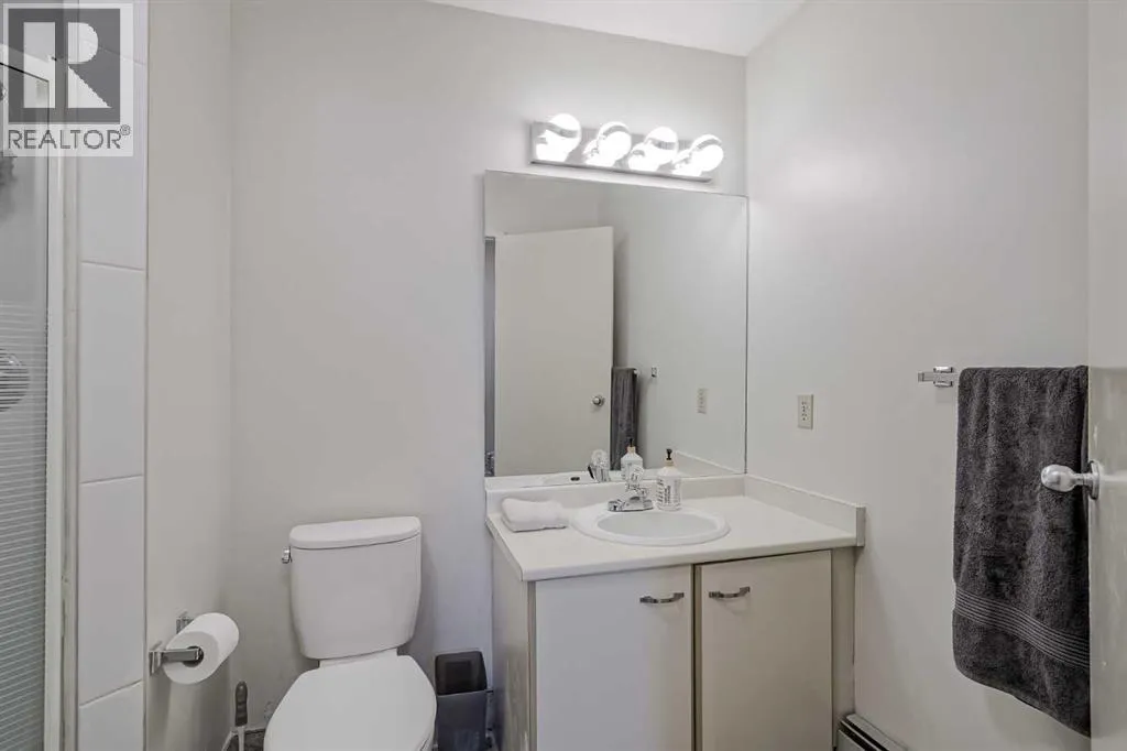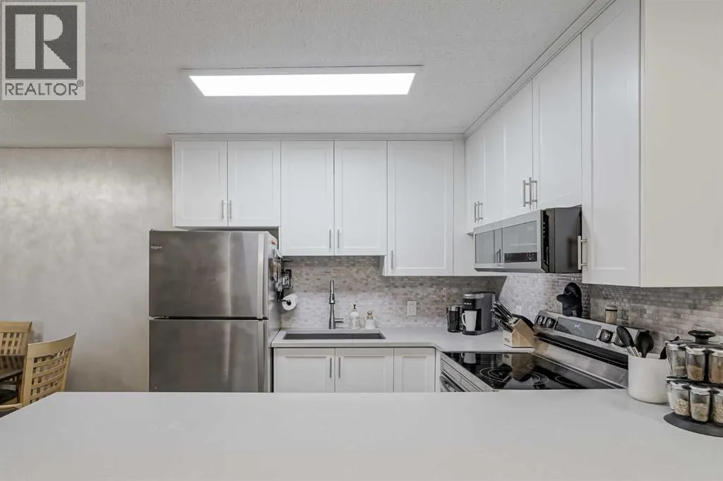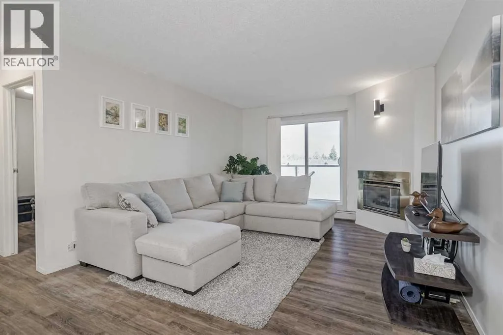 Welcome to Edgecliffe Estates. This TOP FLOOR , CORNER UNIT is 2 bedroom, 2 bathroom, wonderfully updated and makes for a perfect home in one of Calgary's most sought after complexes. As you enter you are greeted with gorgeous laminate floors that lead you into your open floor plan living space. At over 880 square feet this home feels large and includes a fully updated kitchen with ample amount of cabinets, beautiful quartz counter tops and newer appliances. Adjacent to your kitchen is your dining space and your living room equipped with a gas fire place and north facing balcony overlooking a green space. This home is great for entertaining or for quiet nights at home with the family. Your primary bedroom is large enough for a king size bed, additional bedroom furniture and features it's own ensuite bathroom with a walk-in shower. The second bedroom is very large as well and is just next to the newly renovated second bathroom. The home has ample storage and in-suite washer and dryer. Edgecliffe Estates has some of the most amazing amenities included with your condo fees starting with a large indoor pool, fitness centre, party room and additional guest parking. You are steps to nose hill and some of the most amazing biking and hiking trails as well as quick access to downtown, market mall, northland mall, great schools and the airport. Edgemont is truly one of Calgary's premier communities, do not miss out on this opportunity to own this amazing home! (id:27476)