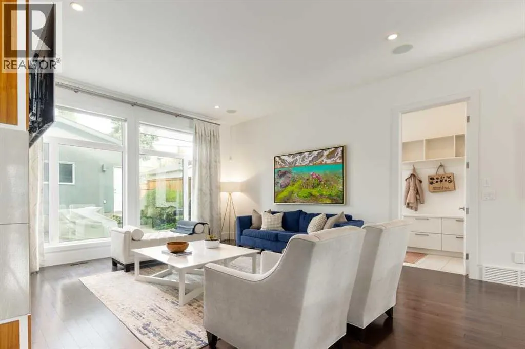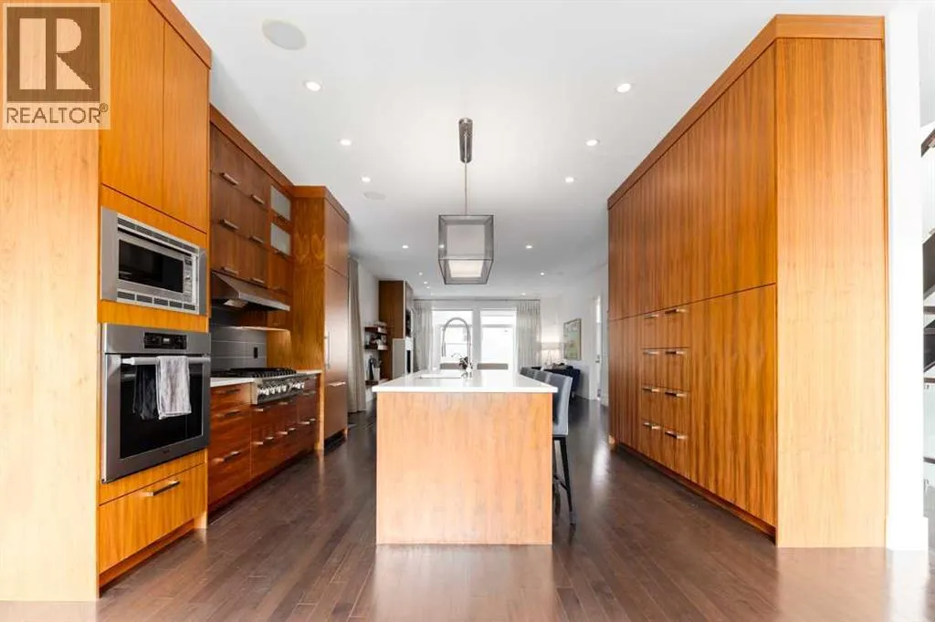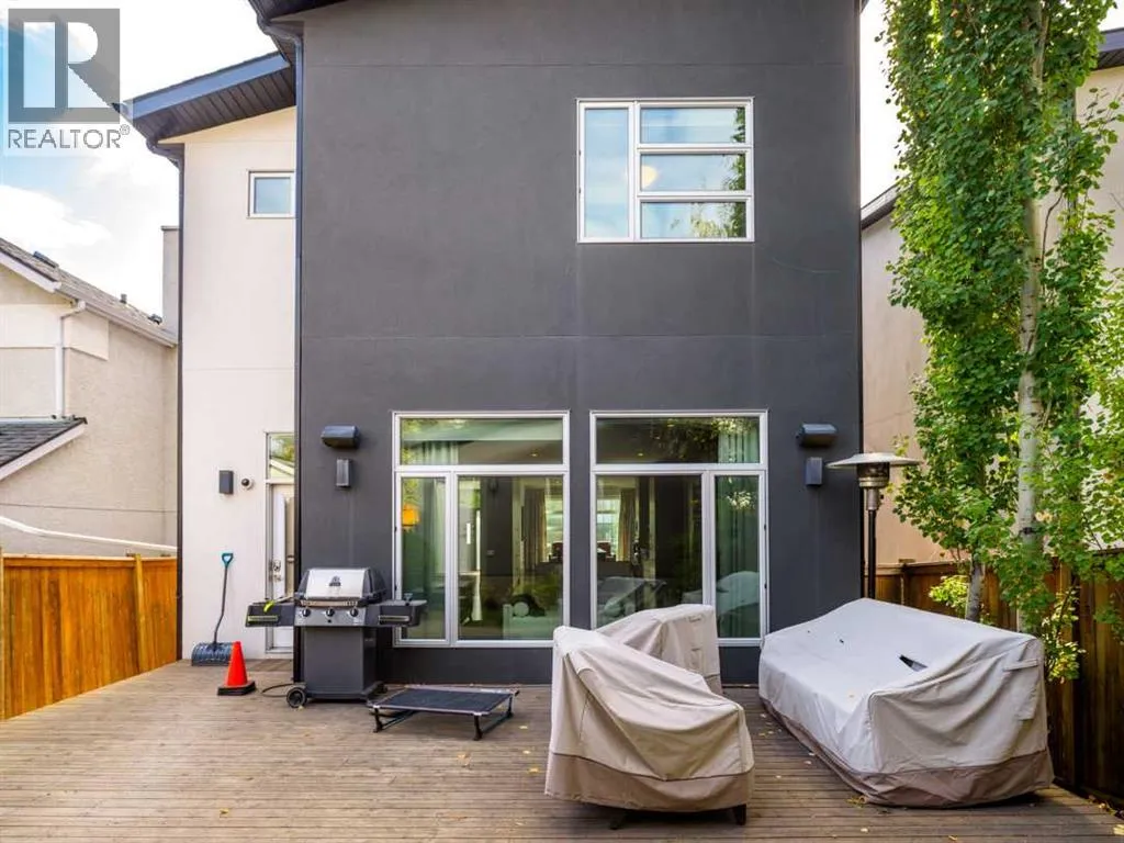 **OPEN HOUSE - Sunday, Nov 16 (12-2pm)**Set on a quiet, tree-lined, pedestrian-friendly street in the heart of Marda Loop, this south-facing detached home blends refined design with everyday comfort â and sits on a mature 33â lot with no remaining development sites nearby. Built by Maillot Homes, one of Calgaryâs most respected builders, the home showcases timeless craftsmanship and understated luxury throughout.Built by Maillot Homes, one of Calgaryâs most respected builders, the home showcases timeless craftsmanship and understated luxury throughout. The open main floor is anchored by a stunning walnut kitchen with quartz countertops, Miele and Viking appliances, and a generous quartz island that invites conversation. Natural light pours into the connected dining and family rooms, creating a space that feels both polished and relaxed â perfect for everything from casual mornings to dinner parties with friends.A separate front living room offers flexibility for work or entertaining, while a large mudroom with built-ins keeps daily life organized. Out back, enjoy a north-facing yard with a private deck and a heated, oversized detached garage that provides ample space for vehicles and storage as well as 240V outlet for Level 2 charging. Upstairs, the layout is both practical and beautiful. The primary suite is a true retreat, featuring a soaker tub, steam shower with heated floors, and walk-in closet. Two additional bedrooms, each with their own walk-in closets, share a stylish Jack-and-Jill bathroom with a second tub. A convenient upstairs laundry room completes the level.Downstairs, the lower level delivers versatile living space â featuring a wet bar, theatre with projector screen, and a bonus room that can flex as a gym, office, or fourth bedroom.Custom drapery is included throughout, along with central A/C, in-floor heating, and the signature attention to detail that Maillot Homes is known for.Located just a short walk to the shops, cafes, and restau rants of Marda Loop and Garrison, this home captures the best of inner-city living â sophisticated, comfortable, and perfectly connected. (id:27476)