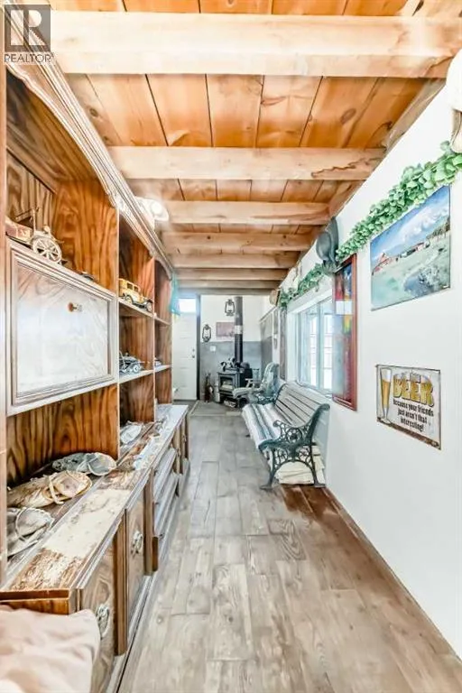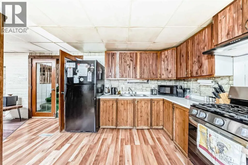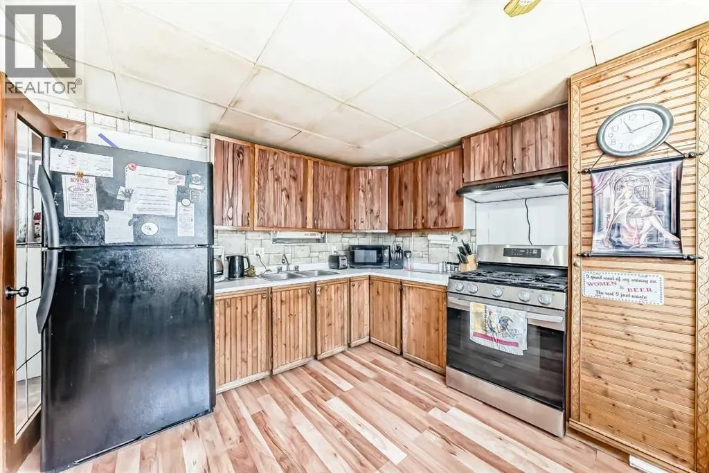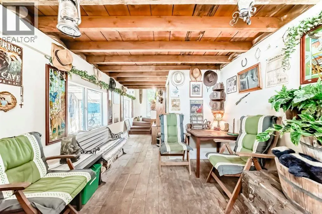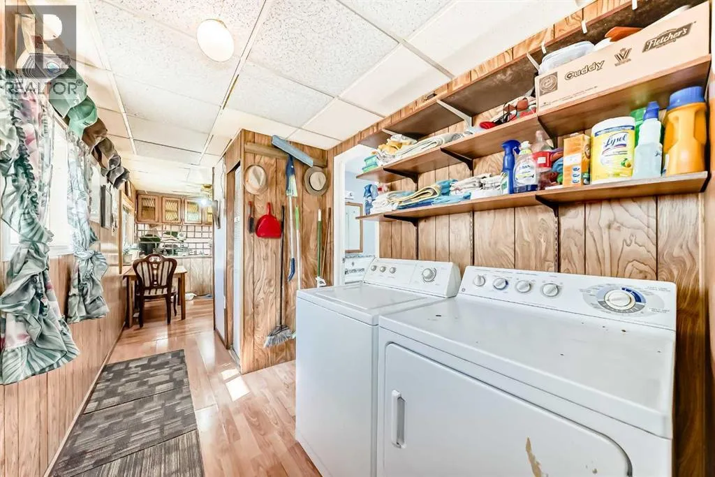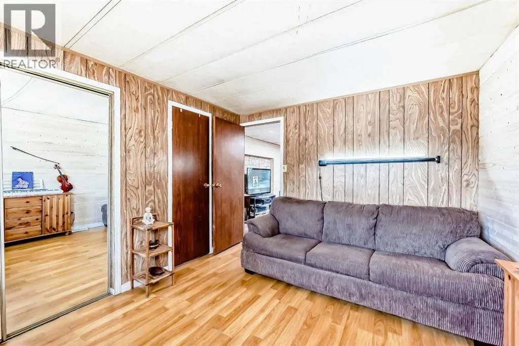 Welcome to this charming well maintained 2-bedroom, 1.5-bathroom mobile home, nestled on far end of the park, with views that are jaw dropping in, Greenwood Village Mobile Home Park. This older mobile home has been lovingly cared for and offers a bright and welcoming living space, perfect for those seeking comfort and tranquility in a family-friendly neighborhood. Step inside and be greeted by an abundance of natural light streaming through the skylights and numerous windows. The living space features a thoughtful layout, ideal for both relaxing and entertaining. The kitchen is equipped with 3 appliances ( refrigerator, stove, hood fan), offering a modern touch, and provides ample storage and counter space for all your culinary needs. The bedrooms are cozy and comfortable, the primary bedroom providing plenty of room for relaxation. The well-maintained 4 pc bathroom serves the home with style and functionality, there is a 2 pc bathroom in the front bedroom. Recent updates include a newer hot water tank, newer furnace, and a older washer/dryer. Outside, you'll find a lovely roof top deck and patio ( with a hottub that has never been used by this owner), perfect for enjoying your morning coffee or hosting outdoor gatherings, there is a large greenhouse, also a workshop (with access to under the mobile (this is well kept and lighted). The driveway adds extra convenience for parking and accessibility, rare find in this park is a garage that opens on both ends) . Located on a quiet street with excellent neighbors, this home offers a peaceful retreat from the hustle and bustle of city life. Greenwood Village is ideally located near shopping, parks, the new farmers market in Northwest Calgary, and Stoney Trail, making commuting and daily errands a breeze. Plus, pet owners will love being steps away from a dog park, perfect for giving your furry friends plenty of space to run and play. Don't miss this rare opportunity to own a well-maintained mobile home with some the upgr ades you need. Schedule a viewing today with your favourite Realtor and make this delightful property your new home! (id:27476)