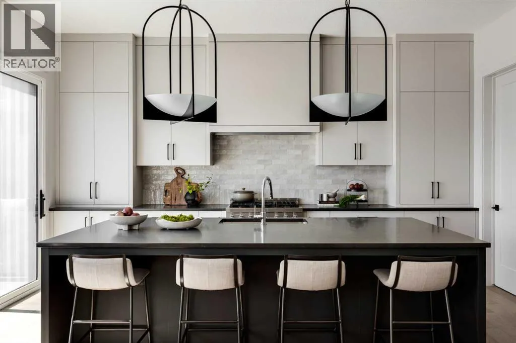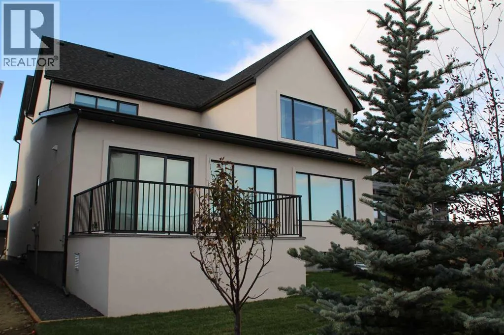 Welcome Home to Lupi Luxury Homes 8 Rockcliff Hill NW, this distinguished residence epitomizes the pinnacle of luxurious living. 4 oversized bedrooms each with their own ensuites and walk-in closets. This lovely home seamlessly integrates with its surroundings through a thoughtfully designed layout, boasting 6 bedrooms and 6 bathrooms. A standout feature is the 3-car garage with ceiling heights to accommodate a car lift. As you step inside, a wealth of high-end amenities unfolds, illuminated by natural light streaming through triple-pane Loe2 windows. The gourmet kitchen, with rich white cabinetry to the 10â ceiling and darker oversized island, showcases a built-in stainless steel, double fridge / freezer and upgraded gas range, dishwasher, microwave, hood fan, bar fridge, creating a culinary haven for residents and guests. Elevating the living experience, the residence boasts large deck off the professionally landscaped oversized back yard. A captivating stone fireplace becomes a central focus, infusing the space with warmth and inviting ambiance. The master ensuite is a true retreat, featuring a curb less walk in shower, soaker tub and his and hers vanity sinks and a large walk-in closet. Technological sophistication with a security system includes, and various powered window coverings. The home is adorned with exposed aggregate concrete, a high-end double furnace system with two air conditioning units included, ensures year-round comfort. Elegance permeates every corner, from an exquisitebutler's pantry to wide plank hardwood flooring, custom-built lockers. Main floor bedroom or den indulges with bulkhead ceiling detail adding a touch of opulence, while having private access to the 3-piece main floor bathroom. The lower development reveals a 6th bedroom, 6th bathroom and a large rec room and media area. Plenty of storage in utility and storage rooms. An elegant open staircase at the foyer, adorned with oakl spindles and an oak rail, warmly welcomes residents an d guestsinto this exceptional residence. Don't miss the opportunity to make this dream home yours. Schedule a showing today and immerseyourself in the unparalleled experience of refined living at 8 Rockcliff Hill NW (id:27476)