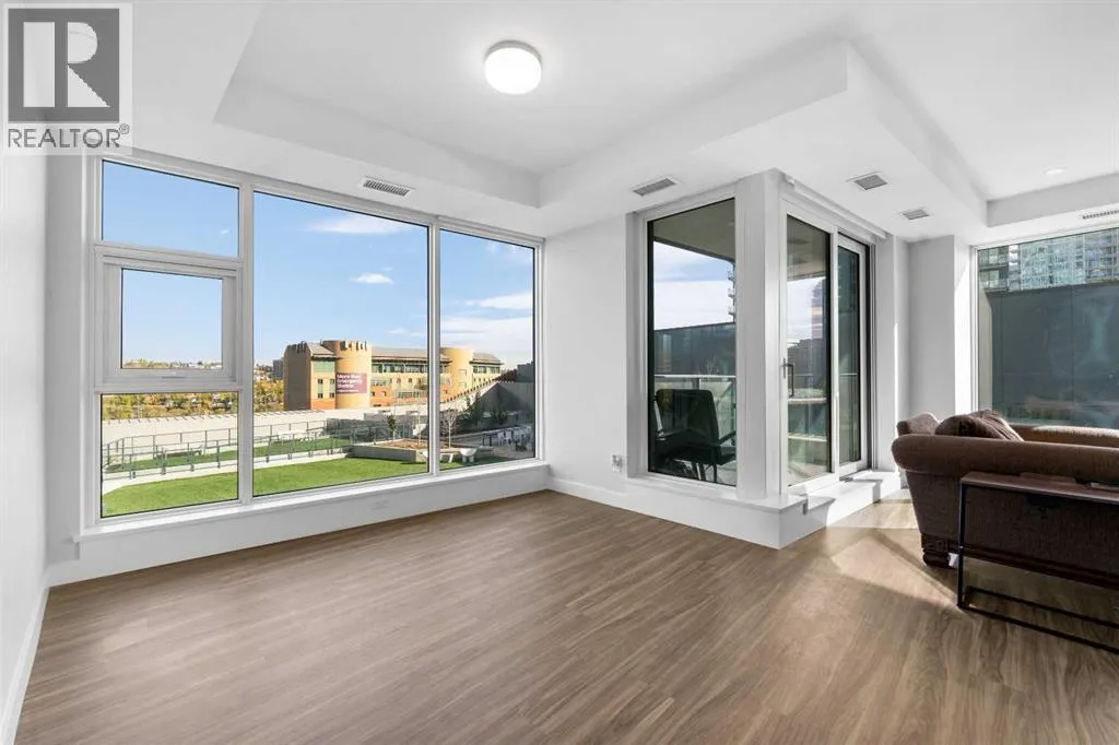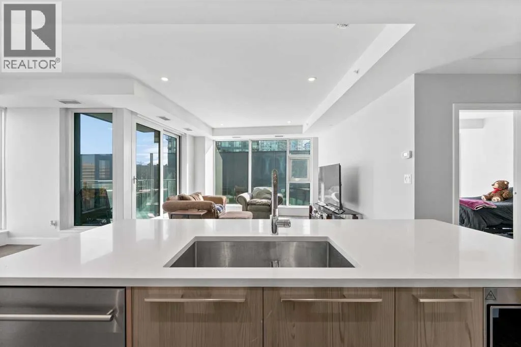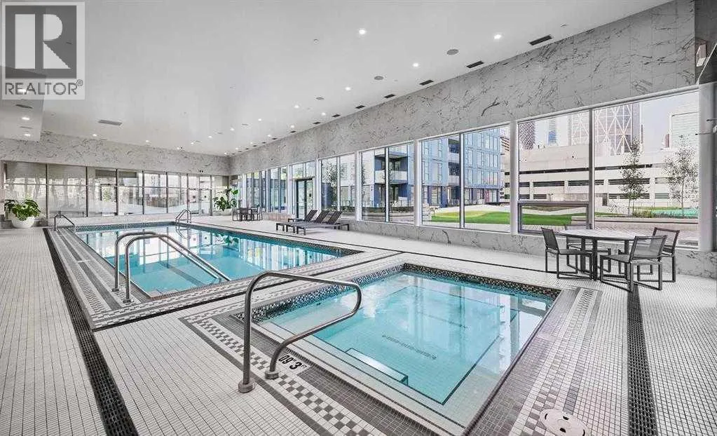 Priced to sell! First 3 months of condo fees covered by seller! Calling all dog lovers!!! This is the one youâve been waiting for. Overlooking the private residentsâ dog park, this stunning 2-bed, 2 bath luxury condo in East Village offers a rare blend of sophistication and lifestyle. Perched on the 4th floor, the unit still has amazing views to the north! This 1,100+ sq. ft. residence is incredibly well built with high-end appliances (with longer then normal warranties!) and secondary fail systems on all water systems and a secondary fire safety system on the dryer for ultimate peace of mind. Indulge in resort-style amenities including a pool, hot tub, sauna, fitness centre, elegant common areas(perfect for date nights or group hangouts), and the exclusive dog park just steps from your balcony. Complete with a transferable new home warranty and offered as the best-priced 2 bed, 2-bath unit in the building, this home defines elevated urban living in one of Calgaryâs most dynamic communities. (id:27476)