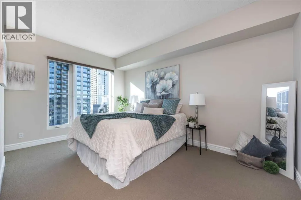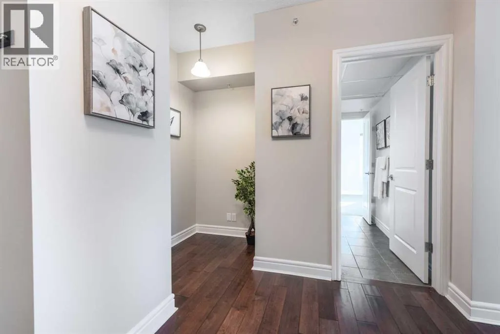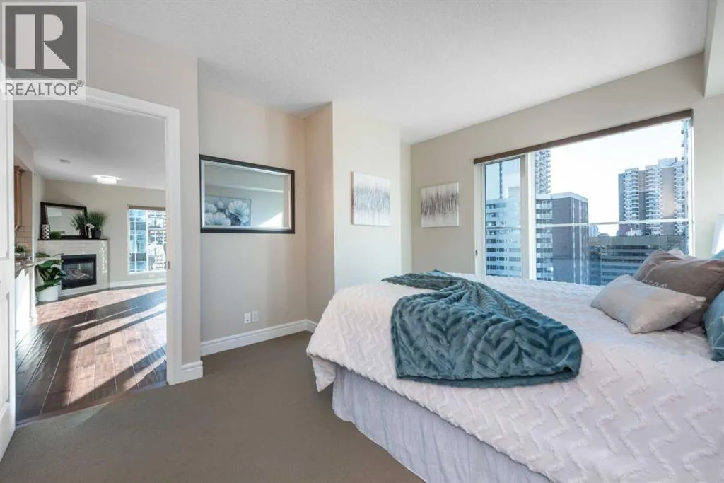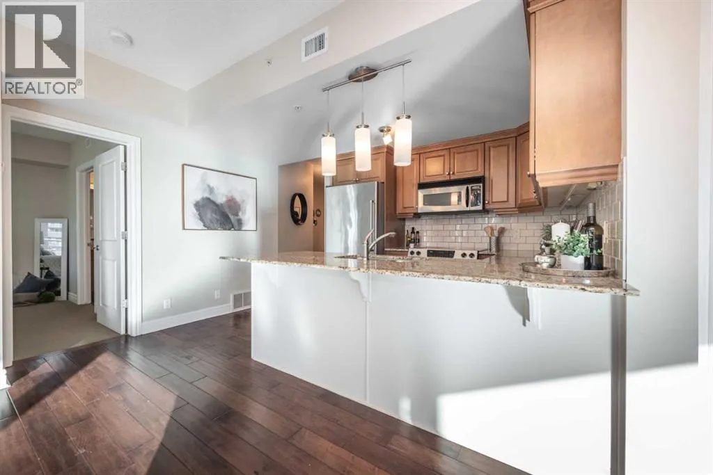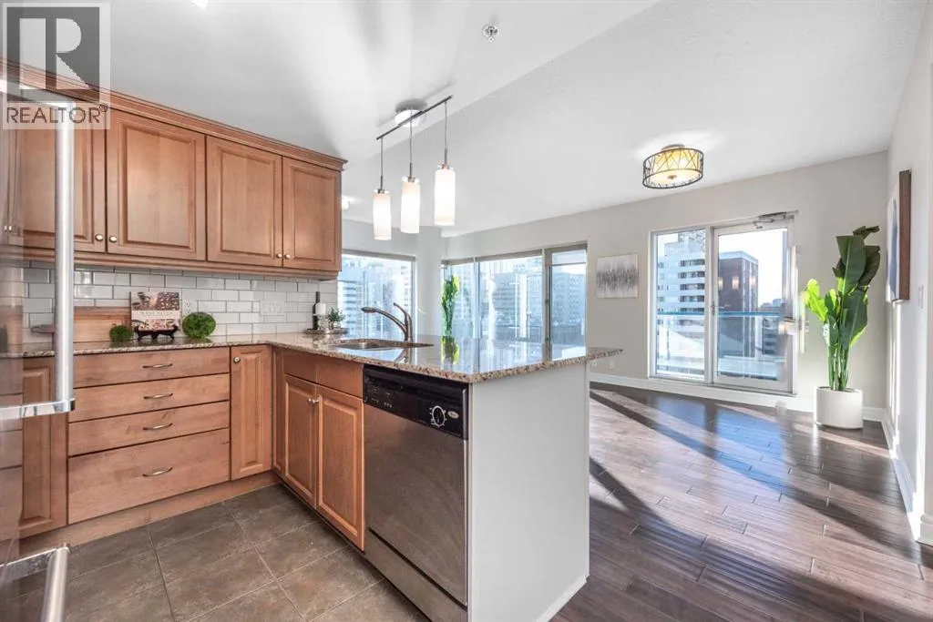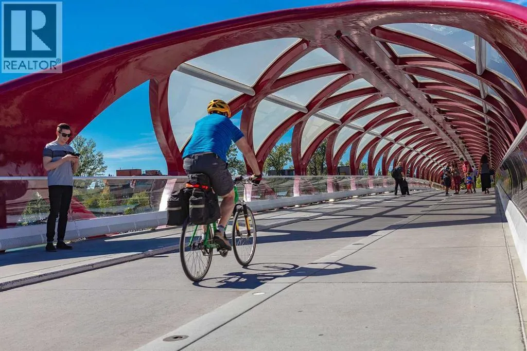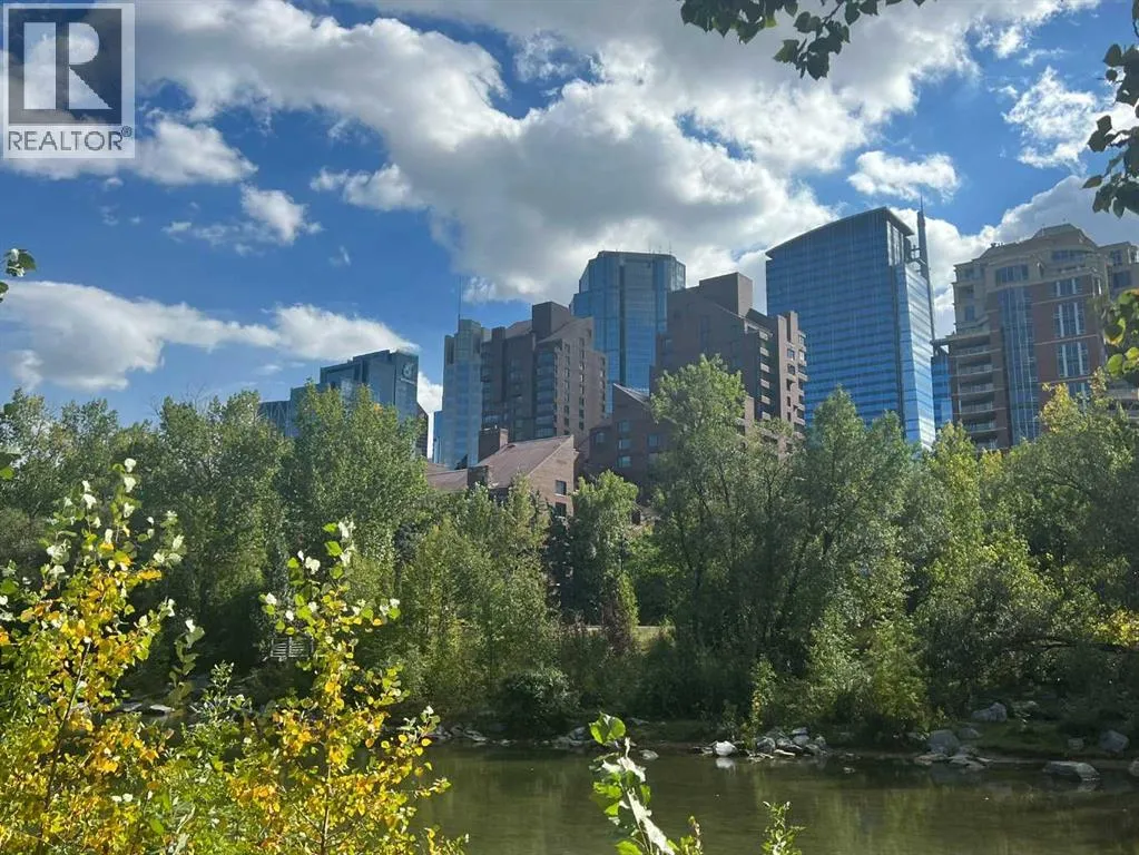 Sophisticated urban condo living is yours in this freshly painted, bright & stylish, very desirable, 2 bdrm + den/2 full bath, south east CORNER, CITY VIEW suite, wrapped in windows, at Five West â one of Calgaryâs PREMIER executive condo buildings. Youâll be impressed with the hardwood floors throughout the main living areas and the efficient floor plan as soon as you walk in â spacious front entry with den space, great sized kitchen with luxurious granite counters, sleek stainless steel appliances and lots of cabinets, dining area with glass door to the south facing balcony with gas BBQ line, cozy corner gas fireplace in the living room all surrounded in windows! Primary bedroom offers lots of space to easily accommodate a king-sized bedroom, walk in closet and 4 pc main ensuite. Second bedroom, set apart from the primary, offers a cheater ensuite bath - so convenient for a room mate or guests. The abundance of natural light throughout the suite is truly memorable! There is of course central air conditioning, an in-suite laundry room with extra storage area, extra storage locker and one titled parking stall is included. Five West building amenities incl. concierge service (so nice!), owners lounge, car wash bay & indoor visitor parking for when friends stop by for a drink or dinner. The location is superb, an easy walk to your DT work, restaurants & coffee shops, 2 blocks from the LRT free downtown zone. The river pathway is a block away for a walk, jog or bike ride at the end of the day or to enjoy your weekend, and just across the bridge is the vibrancy of all Kensington has to offer. This suite is move in ready - Call to view today! (id:27476)