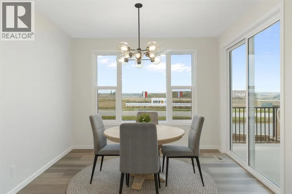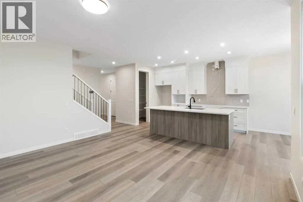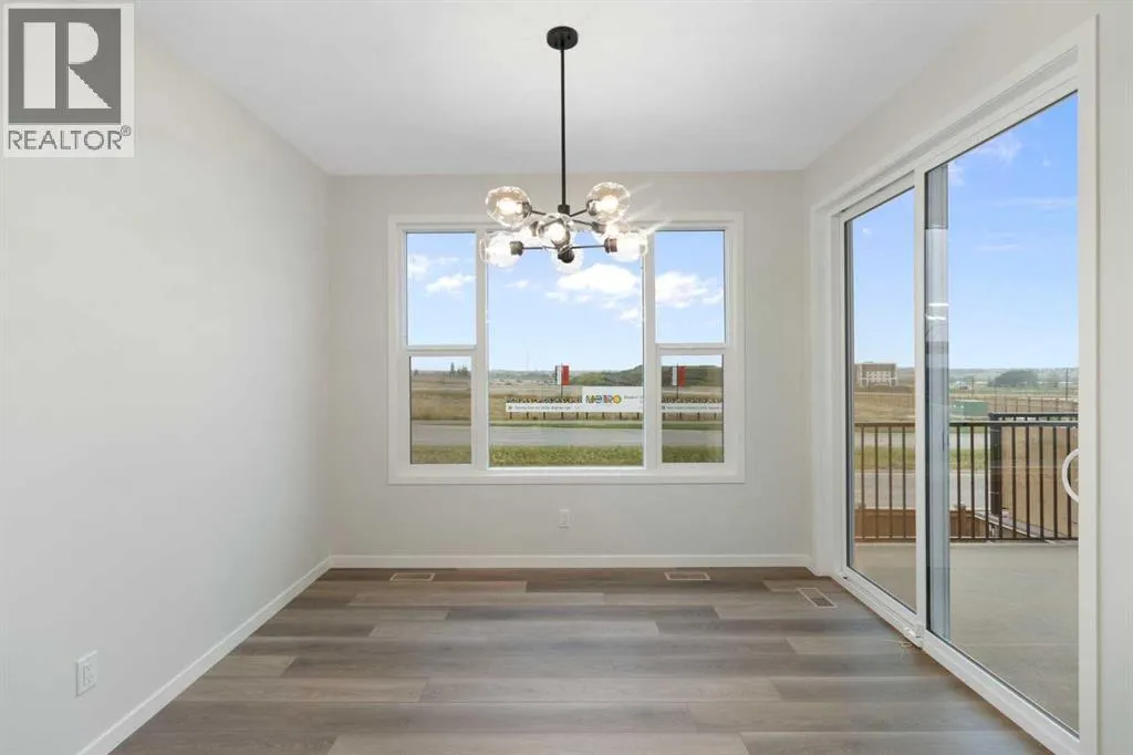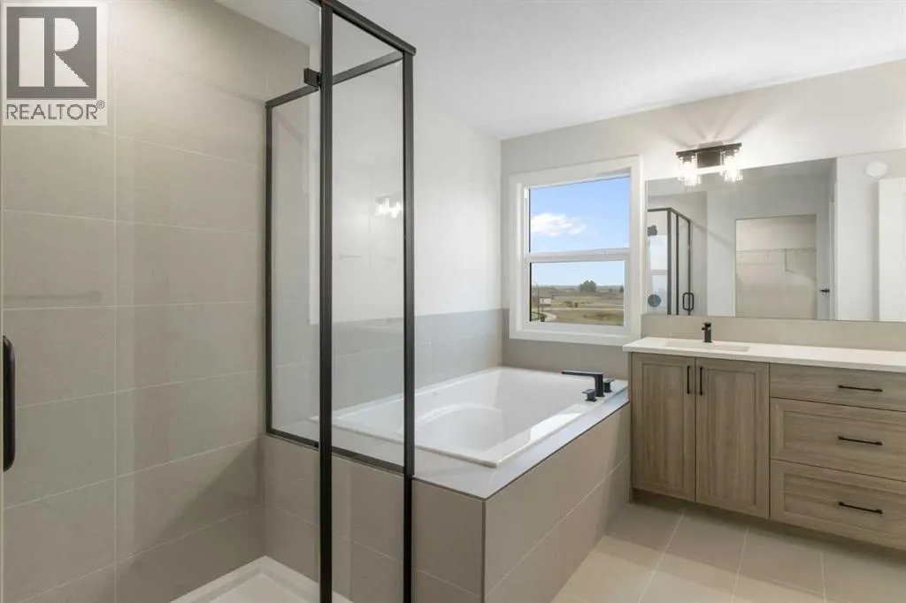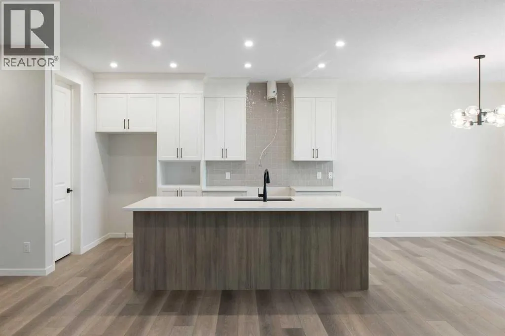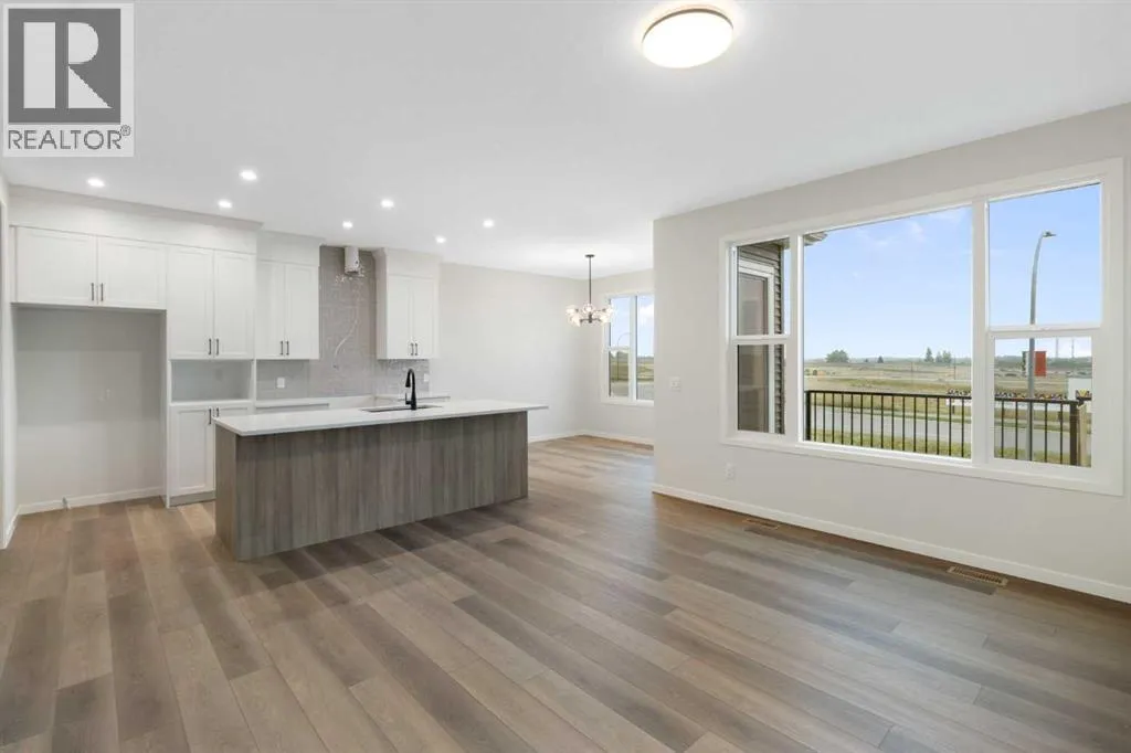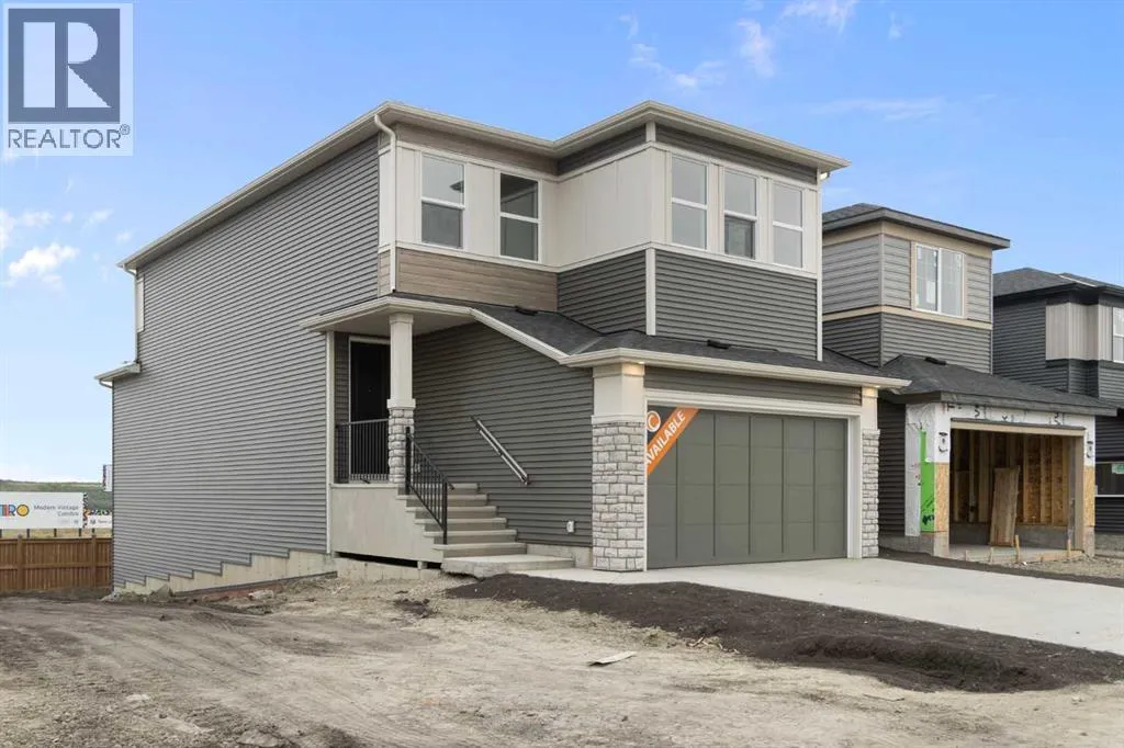 Welcome to your next chapter in the vibrant and growing community of Belmont in SW Calgary. This is a neighbourhood known for its family-friendly atmosphere, scenic pathways, and quick access to shopping, schools, and major routes like Macleod Trail and Stoney Trail. Whether you're a growing family or looking for multigenerational flexibility, this 5-bedroom home checks all the boxes. Step inside and be greeted by light brown luxury vinyl plank flooring that flows seamlessly throughout the open-concept main floor. A versatile main floor bedroom perfect for guests, a home office, or family members, sits beside a full 3-piece bathroom for added convenience. The heart of the home is the upgraded chef-inspired kitchen, where bright white perimeter cabinets are beautifully balanced by a warm wood-toned island, upgraded designer backsplash tile, sleek quartz countertops, and striking black hardware throughout. Youâll get to choose your own appliances with an allowance of $7000 from the builderâs supplier. The kitchen overlooks both the spacious great room featuring a beautiful electric fireplace and sunny dining nook, creating an effortless flow for entertaining and everyday living. Off the dining area, step out to your rear-facing deck, perfect for summer BBQs and outdoor relaxation. Upstairs, cozy carpet welcomes you to a thoughtfully laid-out second level featuring a central bonus room ideal for movie nights or a kidsâ play zone. The primary bedroom is a true retreat, complete with a spa-inspired ensuite (double vanities and a walk-in shower) and a generous walk-in closet. Three more bedrooms, a full bathroom, and an upper-floor laundry room round out this functional upper level. An attached garage adds convenience, and the unfinished walkout basement offers room to grow or customize to your lifestyle. Bonus: the basement is roughed in for a future legal suite (subject to permitting and approval by the city)! Create your backyard oasis with a $2,000 landscaping allowan ce to be provided to the buyer upon completion of landscaping. Whether you're looking for more space, smart design, or a modern aesthetic, this Belmont beauty offers it all, set in a community that blends nature, accessibility, and a strong sense of connection. Don't miss your chance to own in one of Calgary's most exciting new neighbourhoods - book your showing today! *Some photos are Virtually Staged.* (id:27476)