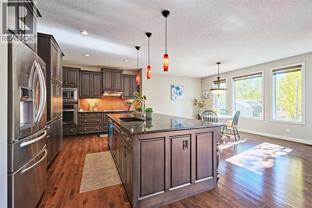 If youâve been searching for the perfect family home in the highly sought-after community of West Springs â this is it! Nestled on a quiet street right beside a lush green space, 2513sqft above ground, this beautifully maintained home offers the perfect blend of functionality, style, and serenity. Step inside to a spacious foyer that sets the tone for the rest of the home. To your right, a bright office makes for the ideal work-from-home setup. The stunning living room features soaring ceilings and a breathtaking two-storey bay window that floods the space with natural light. Designed with entertaining and family living in mind, the open-concept kitchen and living area were thoughtfully expanded during construction to accommodate a chef-inspired oversized island, additional counter space, and a generously sized dining area. From here, step out onto the large south-facing backyard and deck, complete with a gas lineâready for your summer BBQs and sunset lounging. Main floor is finished with rich hardwood flooring, adding warmth and elegance throughout. A convenient mudroom/laundry area and a powder room complete the main floor. Upstairs, the open staircase and high ceilings continue to impress. A spacious vaulted bonus room is perfect for movie nights, a kids' playroom, or a second lounge area. The primary suite is a true retreat, featuring a spa-like ensuite with a walk-in glass shower, corner soaking tub, and walk-in closet. Two additional bedrooms provide comfort and flexibilityâone of them includes a charming bay window with a built-in storage bench. The oversized double garage was custom-built with an extended width of 24.4 feet and an added height of 3 inches, easily accommodating larger vehicles like a pickup truck. The basement has been partially finished and boasts an efficient layout that offers endless possibilities for future developmentâcreate a home gym, media room, or guest suite tailored to your lifestyle. Recent updates include a brand new dishwasher (June 2025) and newer washer and dryer (2023). This home is ideally located close to consistently well-ranked public schools for elementary, junior high, and high school, and is within short distance to some of Calgaryâs most prestigious private schools, making it a smart choice for families who value excellent education. Enjoy the peace and quiet of this tranquil location while staying just minutes from top-rated schools, shopping centers, restaurants, and recreation. With easy access to the Rocky Mountains and downtown Calgary, this exceptional property truly offers the best of both worlds. Dont miss your chance to make this amazing home your own! (id:27476)