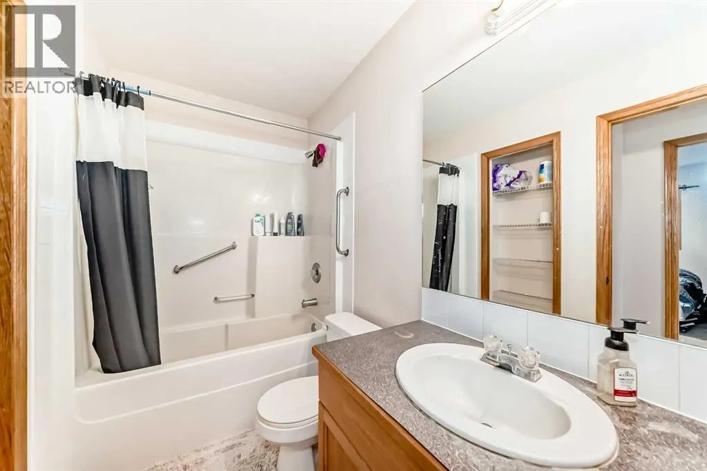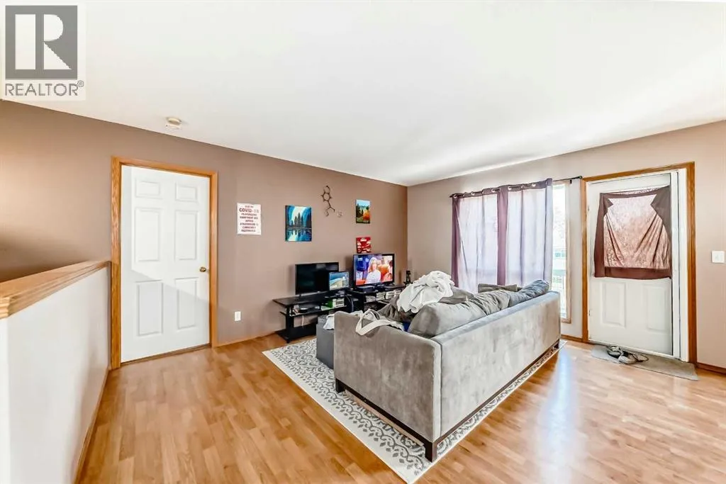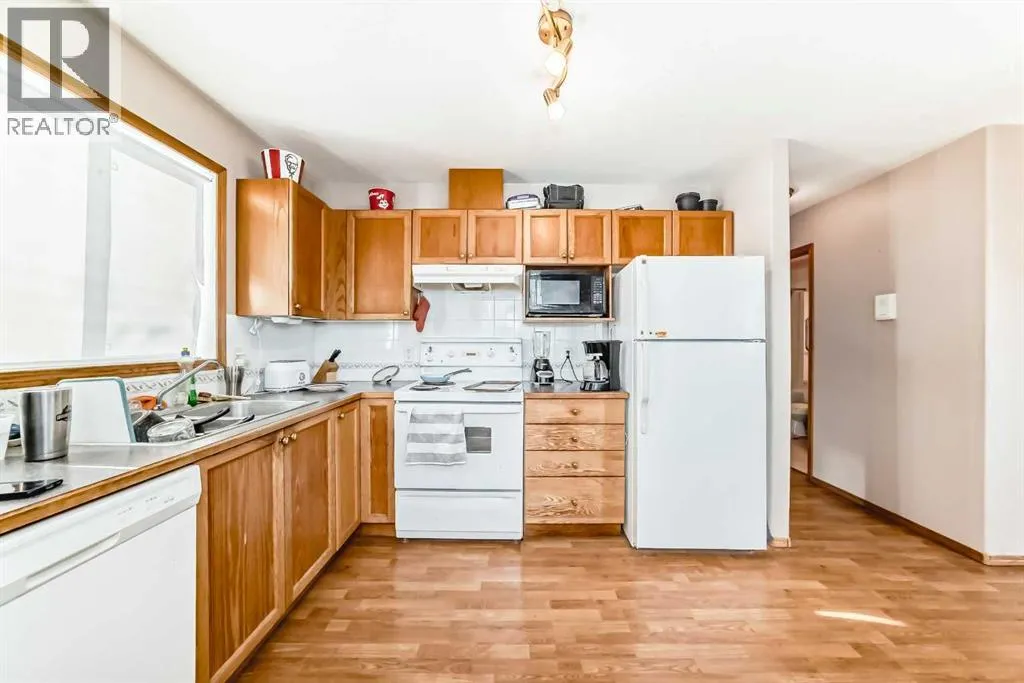 A budget-friendly townhome featuring 2 bedrooms and 2 full bathrooms is available for sale in the Pineridge community. This presents an excellent opportunity for first-time homebuyers or investors to acquire a well-maintained property. The ground level includes a single attached garage and a spacious foyer that provides access to the upper level. The upper/main level consists of two generously sized bedrooms and two full 4-piece bathrooms. The main level boasts an open concept design, incorporating a roomy living area and a kitchen. The main floor is finished with laminate flooring, while the bedrooms are carpeted. Laundry facilities are conveniently located on the main floor. The balcony, which extends from the main floor, is situated at the rear of the townhouse, overlooking a green space. This tranquil complex offers a serene environment, perfect for unwinding after long workdays. Additionally, the ground floor provides ample storage space, allowing for a more organized main floor. (id:27476)
