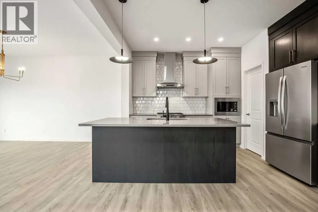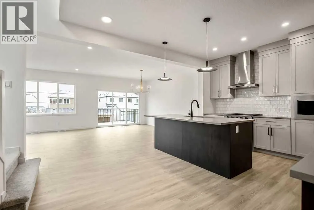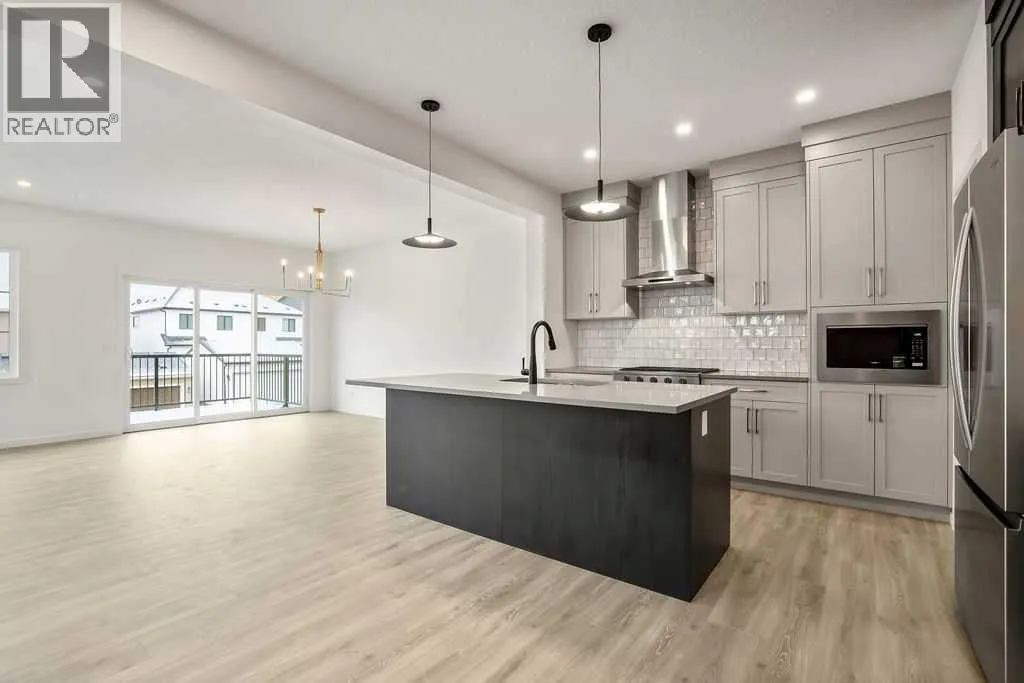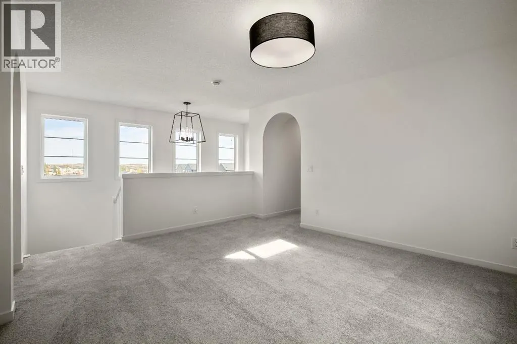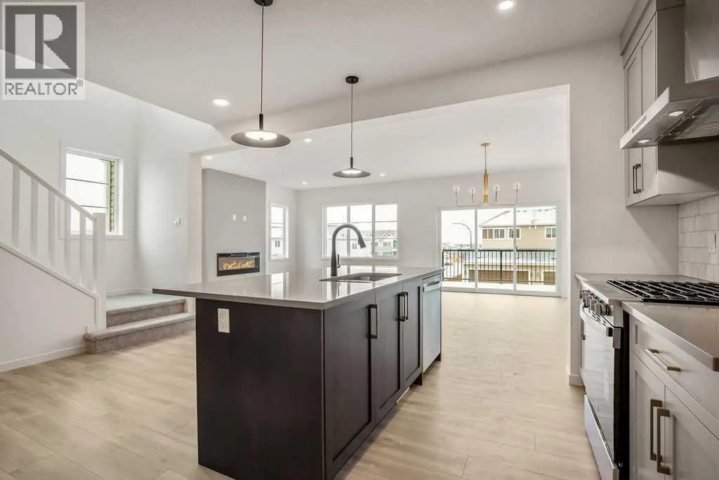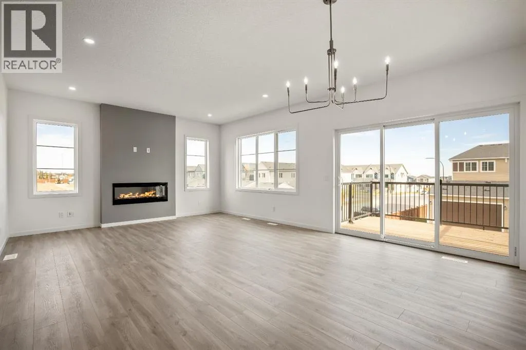 OPEN HOUSE SUNDAY 2pm-4pm. Your dream home and opportunity await! This BRAND NEW gorgeous property is situated on a traditional extra large corner lot! Offering over 2,200 sq ft above grade. As you approach you will notice the great curb appeal and stone detail. This well thought out design offers comfort and practicality. The bright main floor has hard surface flooring throughout, soaring 9' knockdown ceilings, a convenient attached garage and mudroom. The focal point of this home is the chef inspired two tone kitchen, with stunning quartz counters, timeless tile backsplash, custom slow close cabinets that reach to the ceiling, upgraded stainless steel appliances including a chimney style hood fan and a gas range. Adjacent to the kitchen is the bright dining room with extra large patio doors that open to your own private deck with a gas line and VIEWS! The dining room seamlessly connects to the living room making it ideal for entertaining. This room is flooded with natural light and showcases a fireplace centered between two windows. Completing the main floor is a private powder room by the front entrance and a well sized office for those who work from home, or as a homework zone, or a potential play room. When you head upstairs you will notice the elegant railing, more windows drawing in that natural light, and an open to below creating an airy feel. You are then greeted by a central bonus room with arch details on each side adding sophistication to the space. Two well sized bedrooms and a nicely appointed 4 piece bath with quartz counters are on the one side. Where the spacious primary retreat is on the opposite side. Offering a substantial room with a walk in closet and a spa inspired ensuite including dual sinks, quartz counters, a large soaker tub, separate tiled shower and a private water closet. A convenient upper laundry room completes this level. The WALK OUT basement with additional side entrance is a blank canvas and has plenty of potential. It is comple te with all the rough ins needed for a basement suited (subject to approval and permitting by the city), including a bathroom rough in at the back, a laundry rough in for stacked laundry under the stairs, and the rough ins for a galley style kitchen on the opposite side of the stairs. This home also has two additional parking stalls at the rear of the home making it possible to have an additional double detached garage(subject to approval and permitting by the city). This home has designer lights throughout, upgraded plumbing, and the quality and craftsmanship Calbridge Homes is known for. Enjoy peace of mind with New Home Warranty as well as front and side landscaping included! Sage Hill has plenty of walking paths, scenic ravine, open greenspaces, shopping, restaurants, and easy access to major roads like Shaganappi Trail, 144 Avenue, and Stoney Trail. Schedule your private tour today! (id:27476)