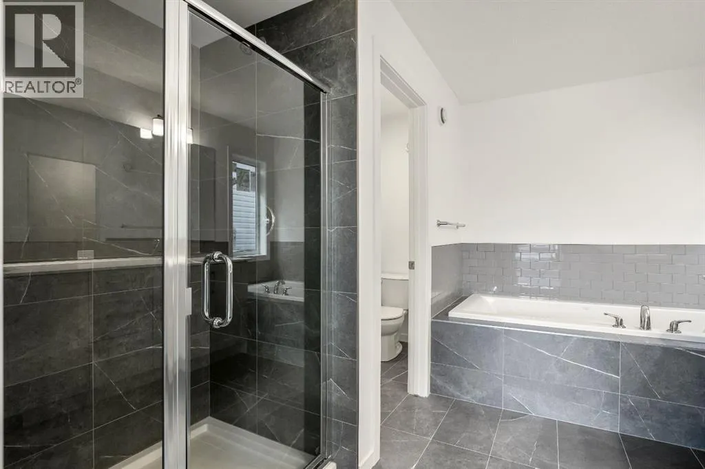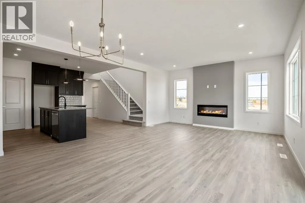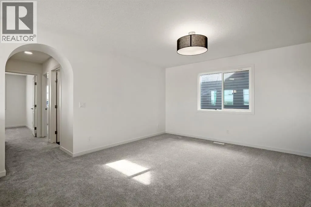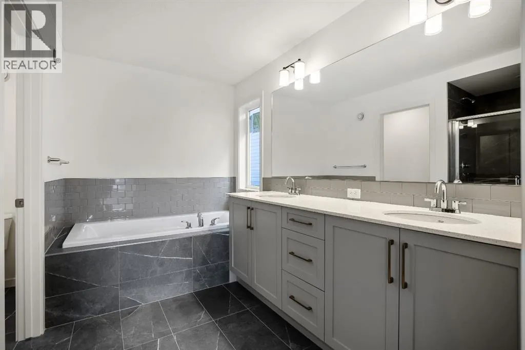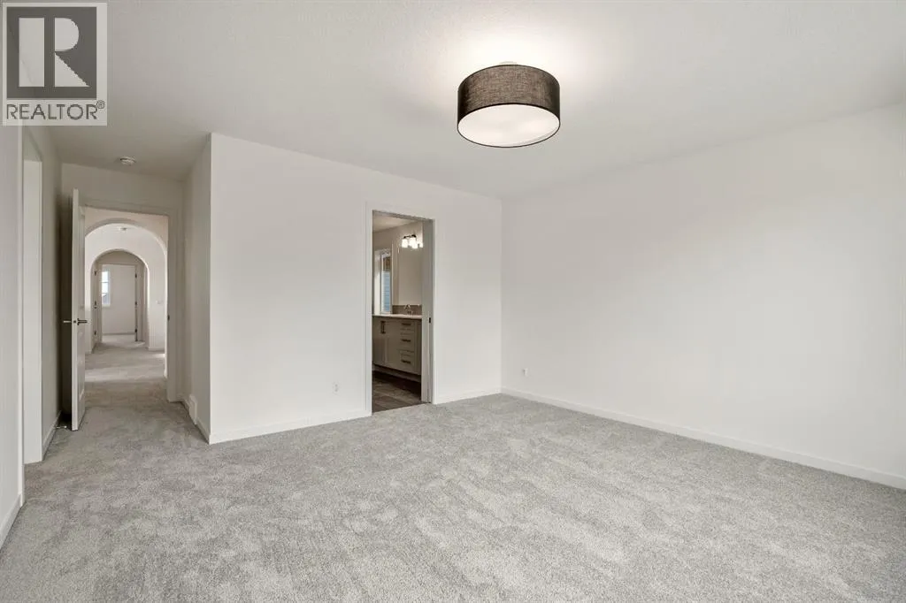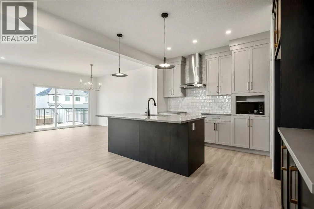 OPEN HOUSE SUNDAY 2pm-4pm. Your dream home and opportunity await! This BRAND NEW gorgeous property is situated on a traditional extra large corner lot! Offering over 2,200 sq ft above grade. As you approach you will notice the great curb appeal and stone detail. This well thought out design offers comfort and practicality. The bright main floor has hard surface flooring throughout, soaring 9' knockdown ceilings, a convenient attached garage and mudroom. The focal point of this home is the chef inspired two tone kitchen, with stunning quartz counters, timeless tile backsplash, custom slow close cabinets that reach to the ceiling, upgraded stainless steel appliances including a chimney style hood fan and a gas range. Adjacent to the kitchen is the bright dining room with extra large patio doors that open to your own private deck with a gas line and VIEWS! The dining room seamlessly connects to the living room making it ideal for entertaining. This room is flooded with natural light and showcases a fireplace centered between two windows. Completing the main floor is a private powder room by the front entrance and a well sized office for those who work from home, or as a homework zone, or a potential play room. When you head upstairs you will notice the elegant railing, more windows drawing in that natural light, and an open to below creating an airy feel. You are then greeted by a central bonus room with arch details on each side adding sophistication to the space. Two well sized bedrooms and a nicely appointed 4 piece bath with quartz counters are on the one side. Where the spacious primary retreat is on the opposite side. Offering a substantial room with a walk in closet and a spa inspired ensuite including dual sinks, quartz counters, a large soaker tub, separate tiled shower and a private water closet. A convenient upper laundry room completes this level. The WALK OUT basement with additional side entrance is a blank canvas and has plenty of potential. It is comple te with all the rough ins needed for a basement suited (subject to approval and permitting by the city), including a bathroom rough in at the back, a laundry rough in for stacked laundry under the stairs, and the rough ins for a galley style kitchen on the opposite side of the stairs. This home also has two additional parking stalls at the rear of the home making it possible to have an additional double detached garage(subject to approval and permitting by the city). This home has designer lights throughout, upgraded plumbing, and the quality and craftsmanship Calbridge Homes is known for. Enjoy peace of mind with New Home Warranty as well as front and side landscaping included! Sage Hill has plenty of walking paths, scenic ravine, open greenspaces, shopping, restaurants, and easy access to major roads like Shaganappi Trail, 144 Avenue, and Stoney Trail. Schedule your private tour today! (id:27476)