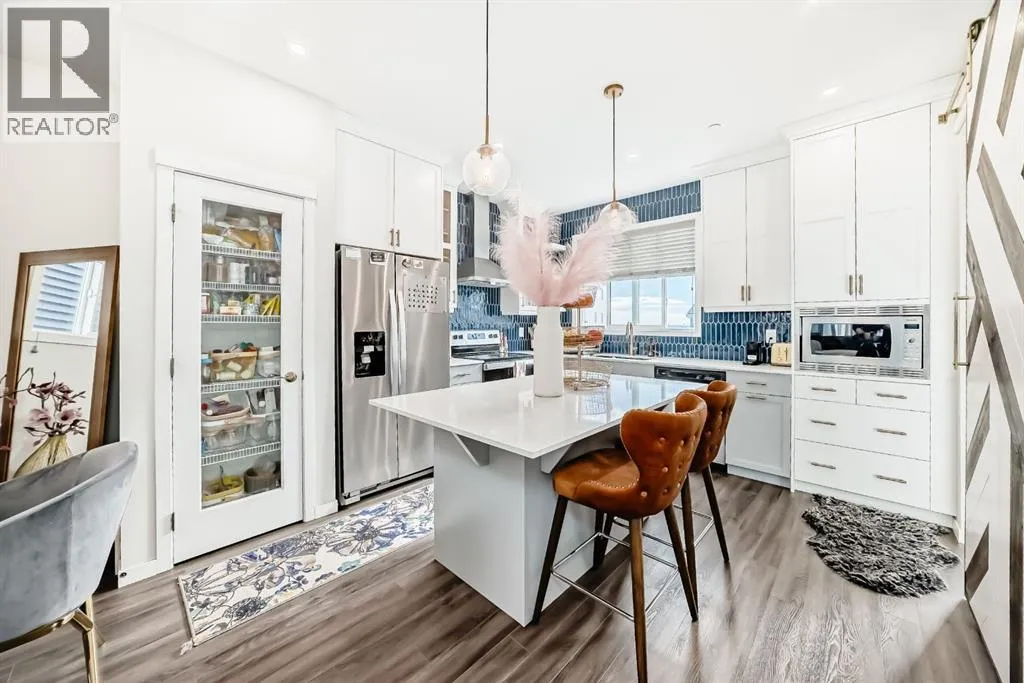 WELCOME HOME! From the moment you step inside, youâll notice the PRIDE OF OWNERSHIP in this FULLY UPGRADED and meticulously maintained property. Located in the highly sought after community of Livingston, this IMMACULATE 3-bedroom, 2.5-bathroom OPEN CONCEPT home offers both style and functionality. The main level features luxury vinyl plank flooring throughout and an OPEN CONCEPT layout that seamlessly connects the living room, dining area, and kitchen creating a bright and inviting atmosphere perfect for both everyday living and entertaining. At the heart of the home is a MODERN KITCHEN showcasing sleek white cabinetry, GRANITE COUNTERTOPS and a LARGE ISLAND with stylish pendant lighting. Adding to the ambiance, UNDER CABINET LIGHTING enhances both the aesthetics and practicality of the space, making meal prep a breeze. The kitchen is fully equipped with STAINLESS STEEL appliances, a built-in microwave, chimney-style hood fan, ceiling height cabinets, and a convenient pantry. A 2-piece powder room completes the main floor. Upstairs, the spacious primary bedroom features a walk-in closet and a luxurious 4-piece ensuite with a relaxing SOAKER TUB. Two additional generously sized bedrooms, a 4-piece main bathroom, and a convenient laundry room complete the upper level. The unfinished basement is A BLANK CANVAS awaiting your CREATIVE TOUCH, boasting two large windows and roughed-in plumbing, offering endless possibilities for future development. Step outside into the fully landscaped, SOUTH FACING backyard, perfect for entertaining or soaking up the sun. A LARGE DECK provides ample space for hosting family and friends. The home also includes a DOUBLE DETACHED GARAGE offering plenty of room for parking and storage. Ideally located just minutes from Stoney Trail and Deerfoot, this home provides quick access to downtown, shopping centres, entertainment, and more. Donât miss out! Call your favourite REALTOR® to book a private showing today! (id:27476)